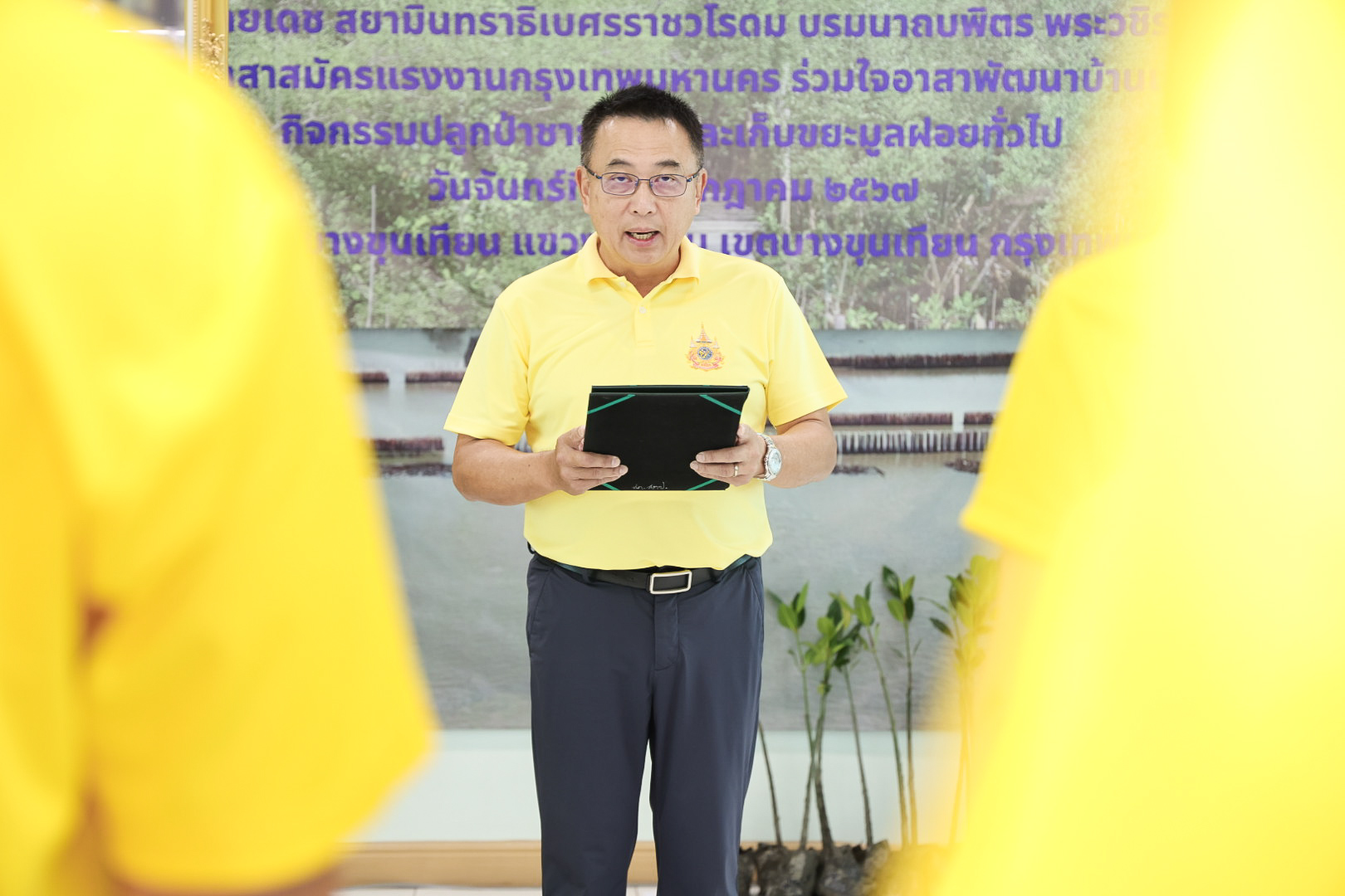 Mr. Decha said that he was delighted and honoured to chair the opening ceremony of the project in honour of His Majesty the King, with Bangkok labour volunteers joining in volunteering to develop their hometown. Today, we hosted a mangrove planting activity and the collection of general waste. The said project is based on the royal philosophies, aspirations, and policies regarding environmental development, which have been adapted as a conceptual framework for determining activities. It focuses on civil servants, officials, and volunteer workers in Bangkok. It is a public sector network participating in activities to create awareness of doing good deeds, offered as a royal merit to His Majesty the King on the occasion of His Majesty’s 72nd birthday on July 28, 2024. This year is considered a special auspicious year. The activities are a demonstration of loyalty, honouring the Thai monarchy, loving and cherishing one’s hometown, including creating knowledge of love and unity.