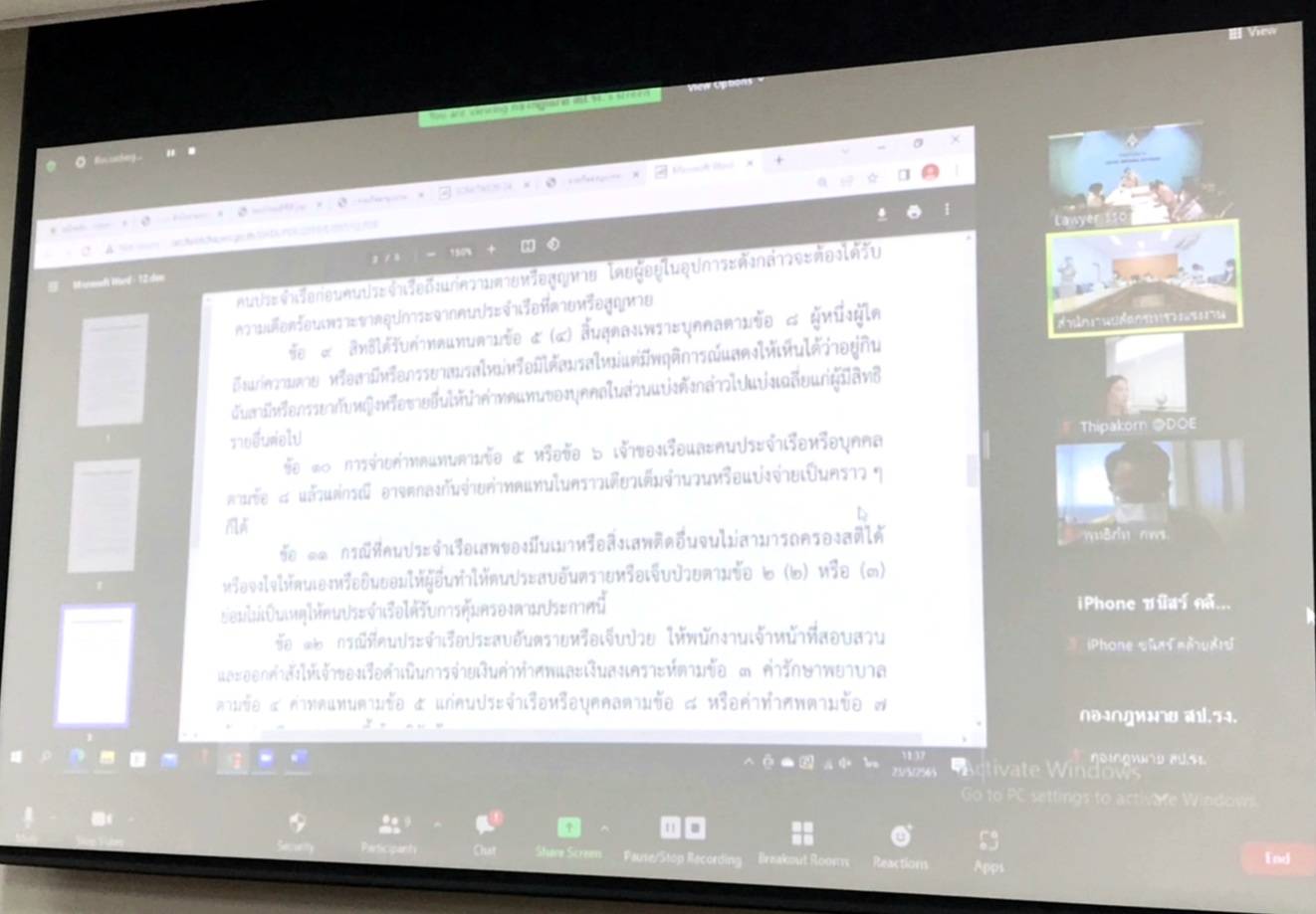 On May 23, 2022, Deputy Permanent Secretary of Labour, Mrs. Bubpha Phanpeng, chaired the Ministry of Labour’s Legislation Drafting Committee Meeting No. 3/2022. The meeting considered the draft notification of the Ministry of Labour on rules, procedures, and conditions for social security protection and seafarer compensation (No.…) B.E.…. The Ministry of Labour’s Inspector-General, Mrs. Sopa Kieatnircha, and representatives from relevant agencies attended the meeting at the Legal Division meeting room, 11th floor, Ministry of Labour.