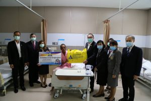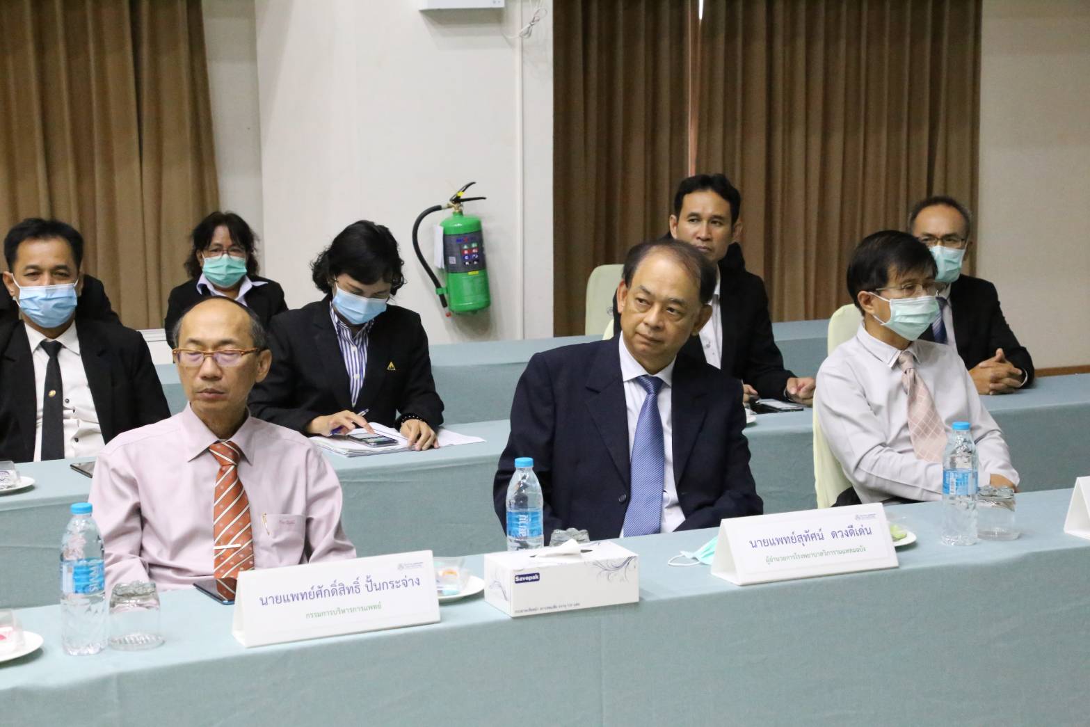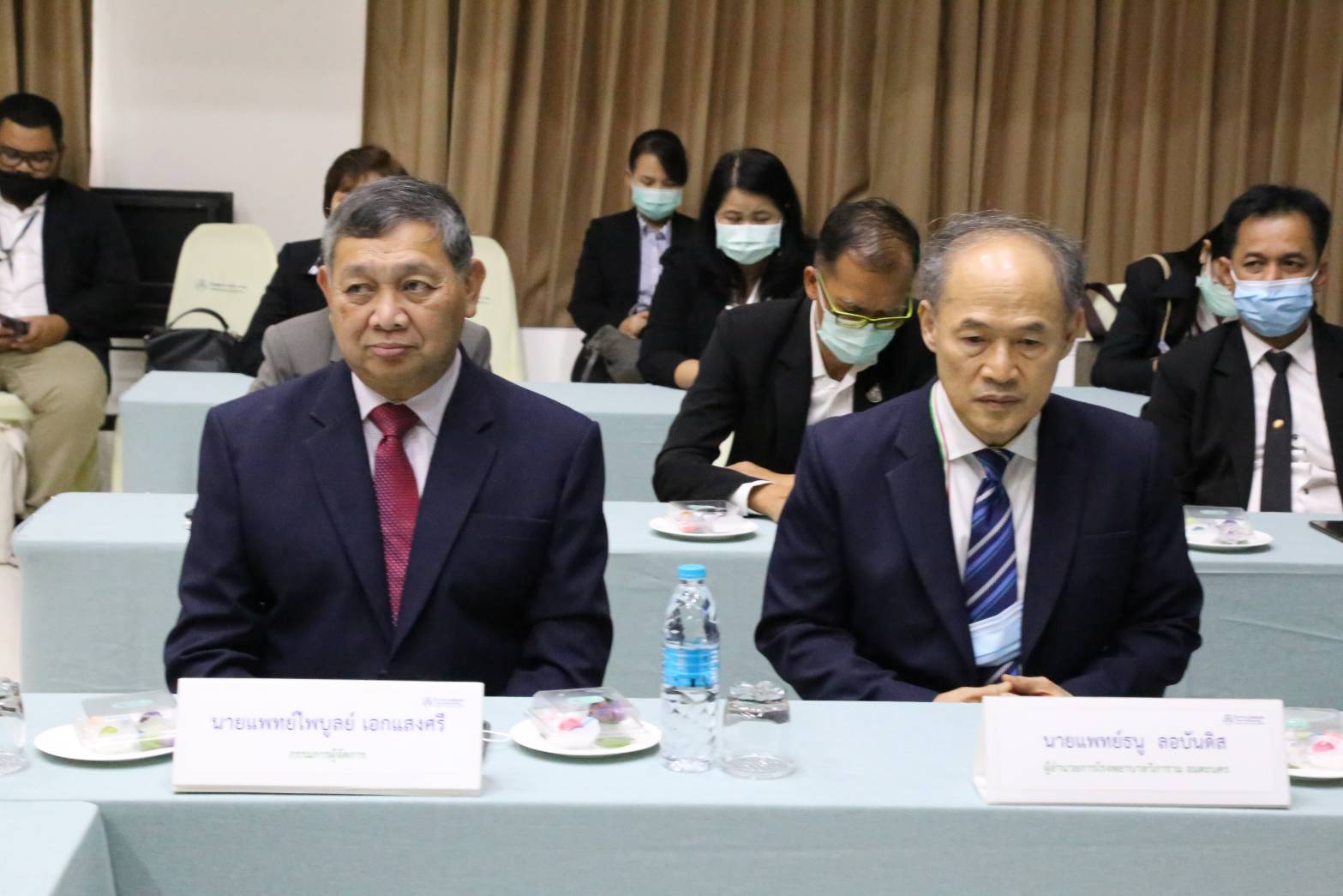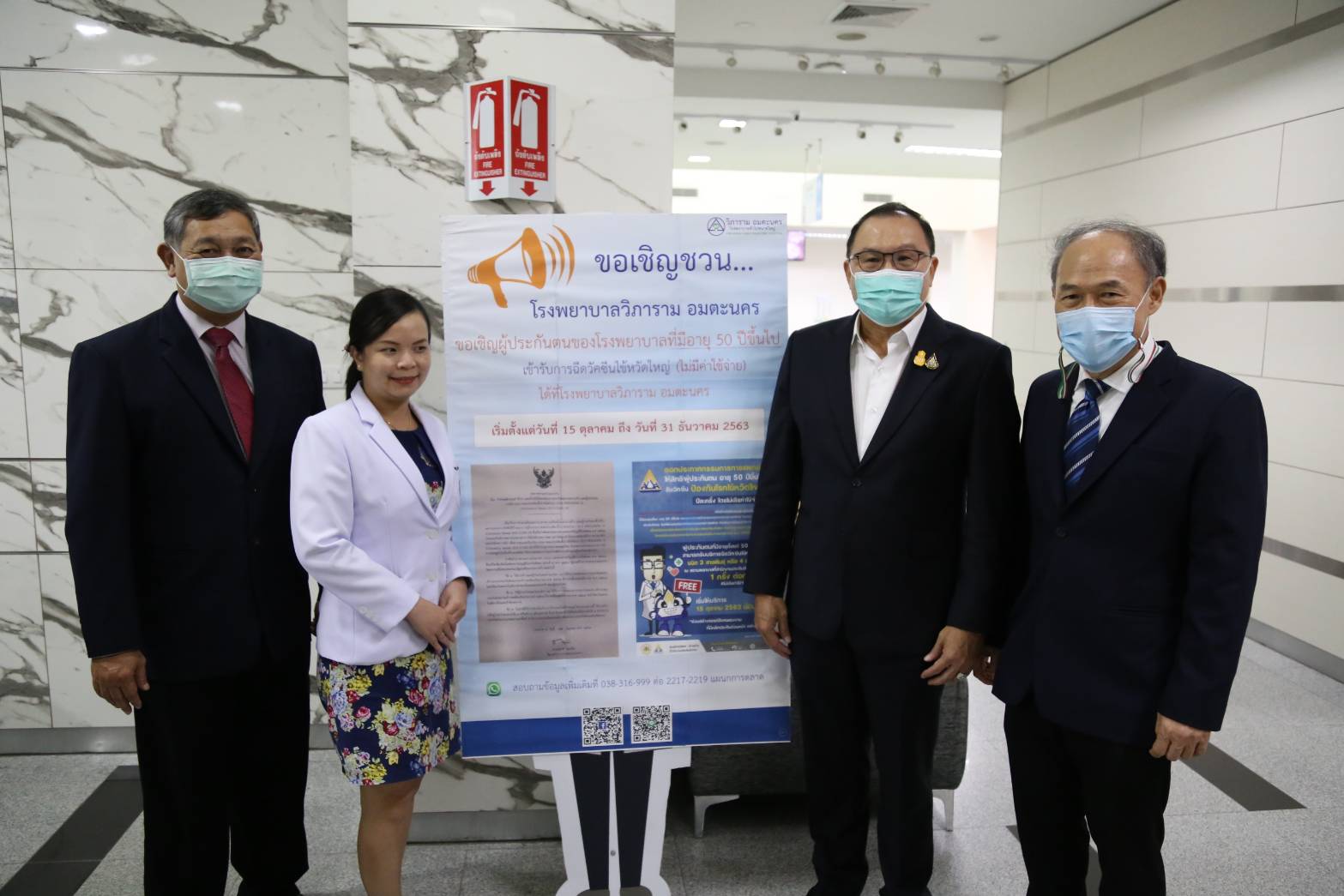 On October 6, 2020, at 13.30 hours, Labour Minister Mr. Suchart Chomklin assigned Assistant to the Labour Minister Mr. Surachai Chaitrakulthong to listen to the flu vaccination plan for insured persons from the management of Vibharam Amata Nakorn Hospital. Before starting the vaccinations, there will be a preliminary screening. After the vaccinations, patients will wait 30 minutes to observe any symptoms to prevent potential dangers from vaccine allergies. He also visited and gave words of encouragement to insured persons under Section 33 and Section 39, with 25 cases who received treatment in Vibharam Amata Nakorn Hospital, Chonburi.