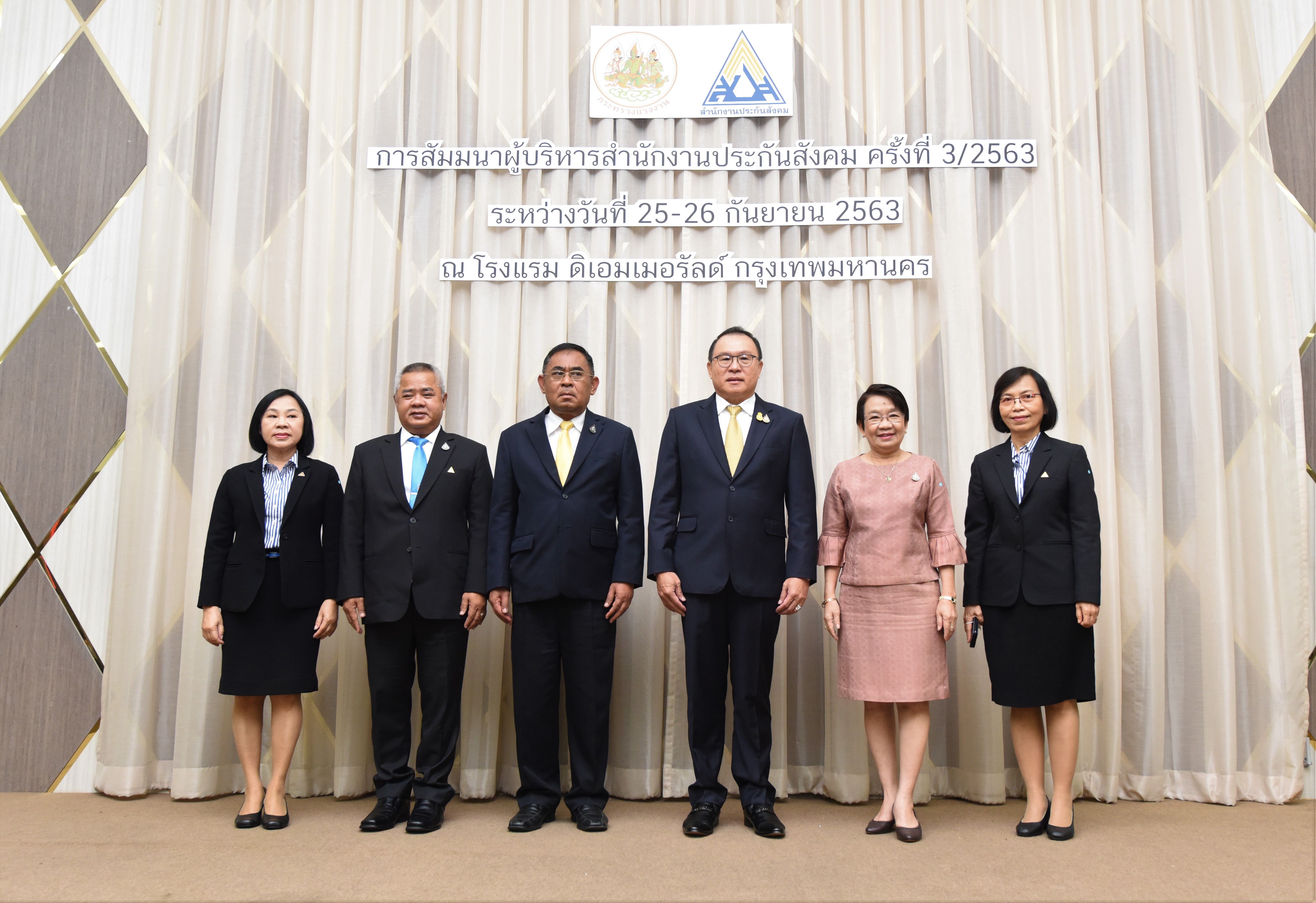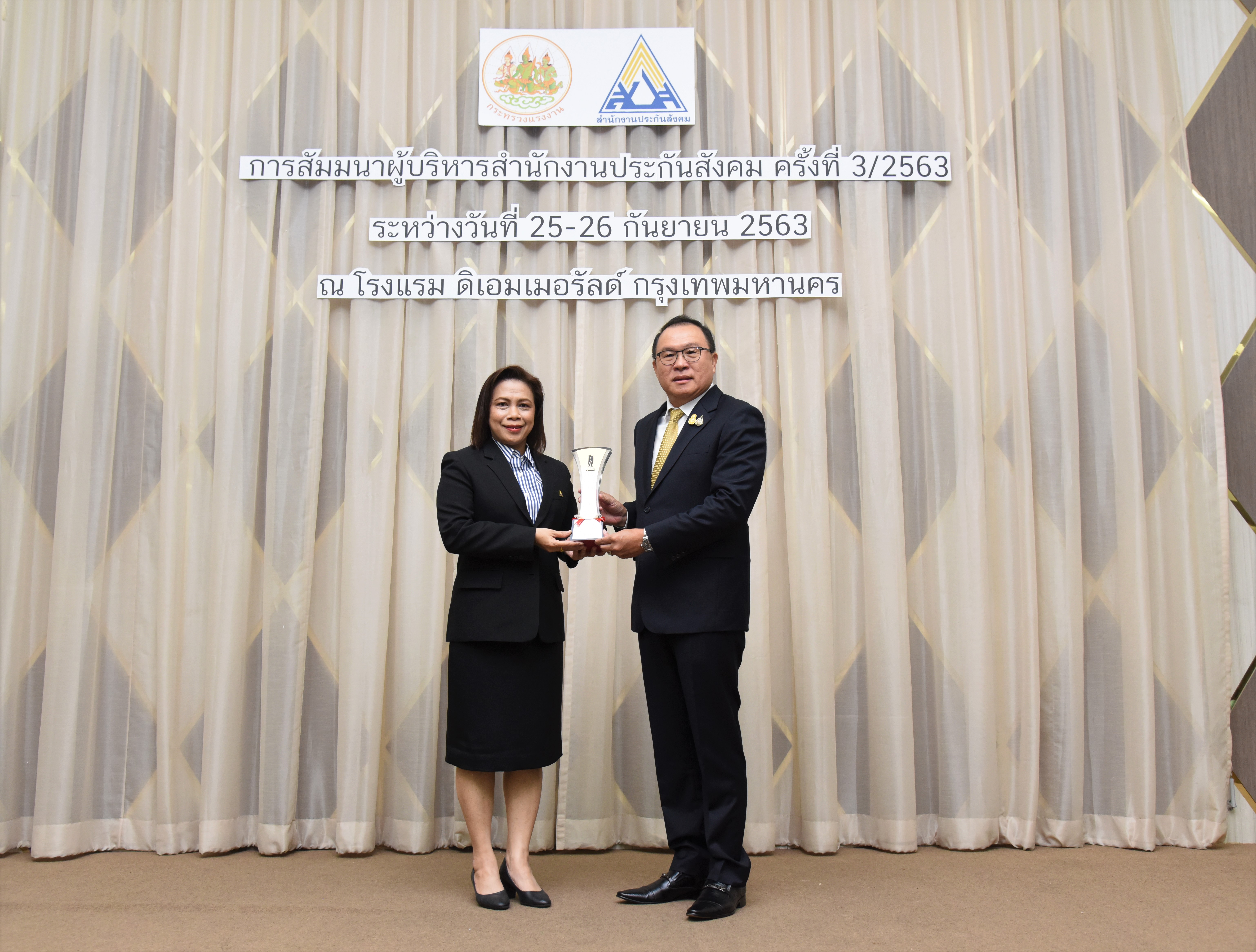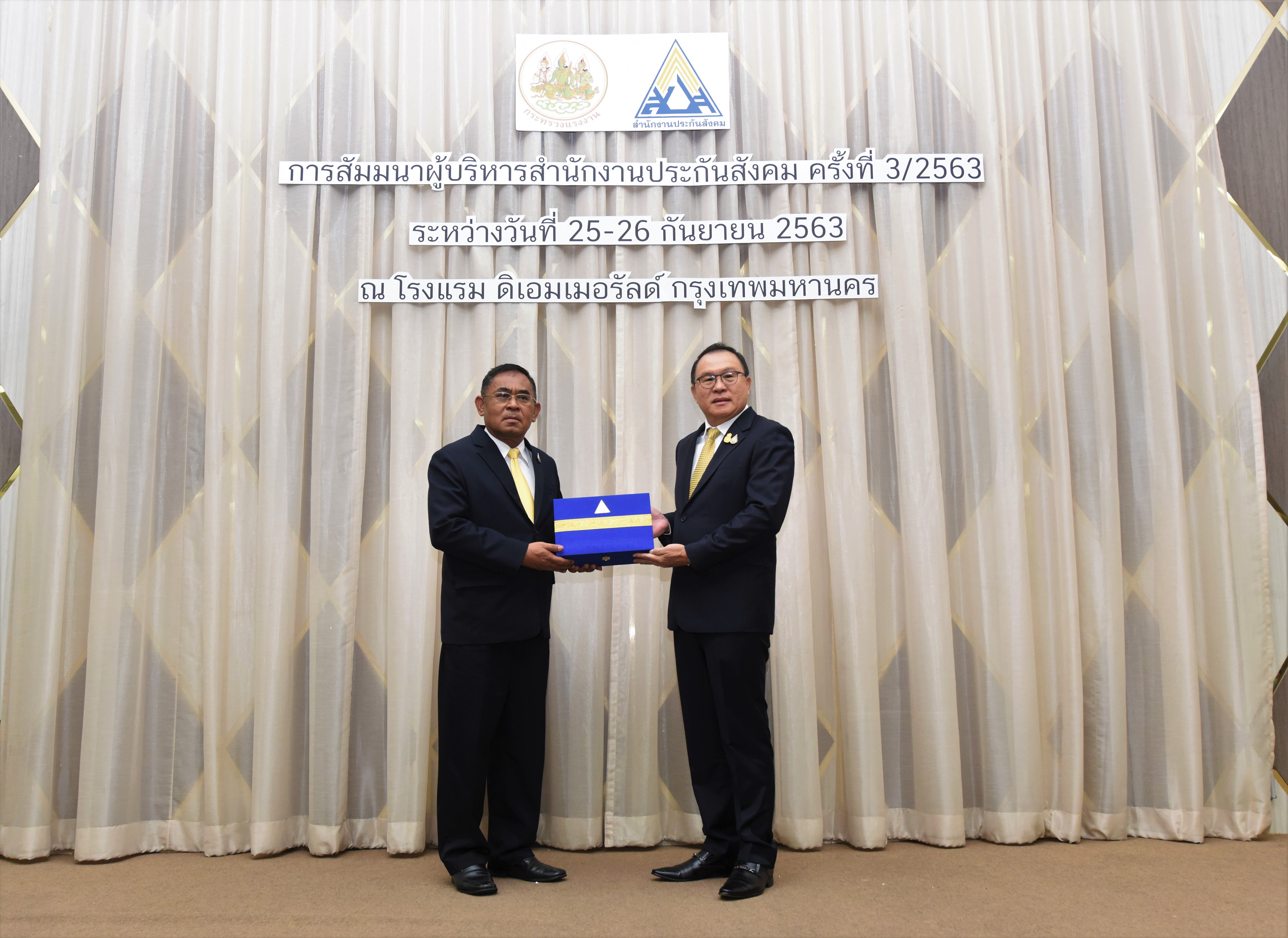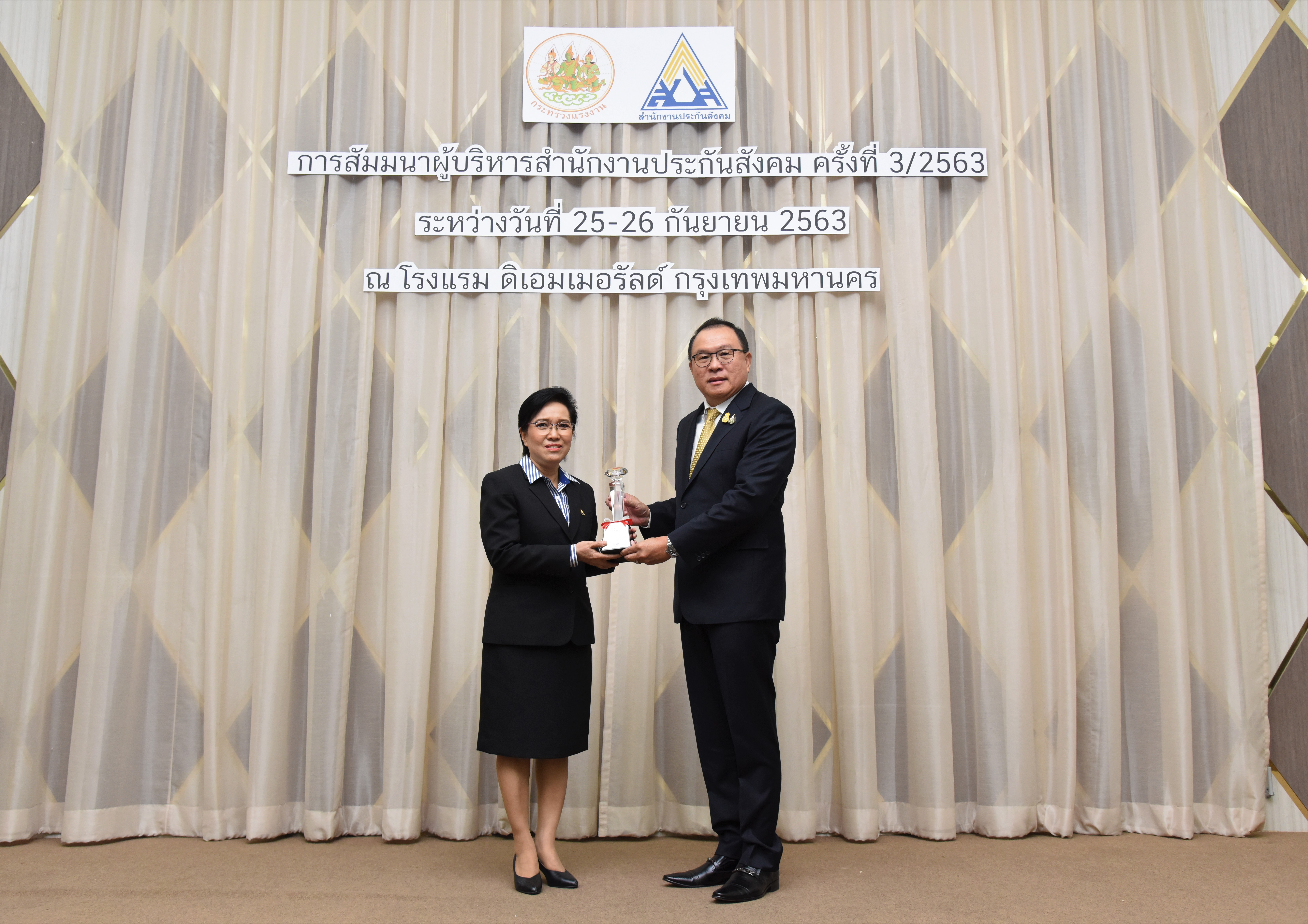 On September 25, 2020, at 09.00 hours, Labour Minister Mr. Suchart Chomklin assigned Assistant to the Labour Minister Mr. Surachai Chaitrakulthong, to chair the opening ceremony of the Social Security Office Executive Seminar No. 3/2020. He also awarded agencies with excellent performance in improving government services’ efficiency and the development of management quality within the organization. Deputy Permanent Secretary of Labour Mrs. Theanrat Nawamawat also attended the event at the Grand Palazzo Meeting Room, 7th floor, Grand Palazzo Building, The Emerald Hotel, Bangkok.