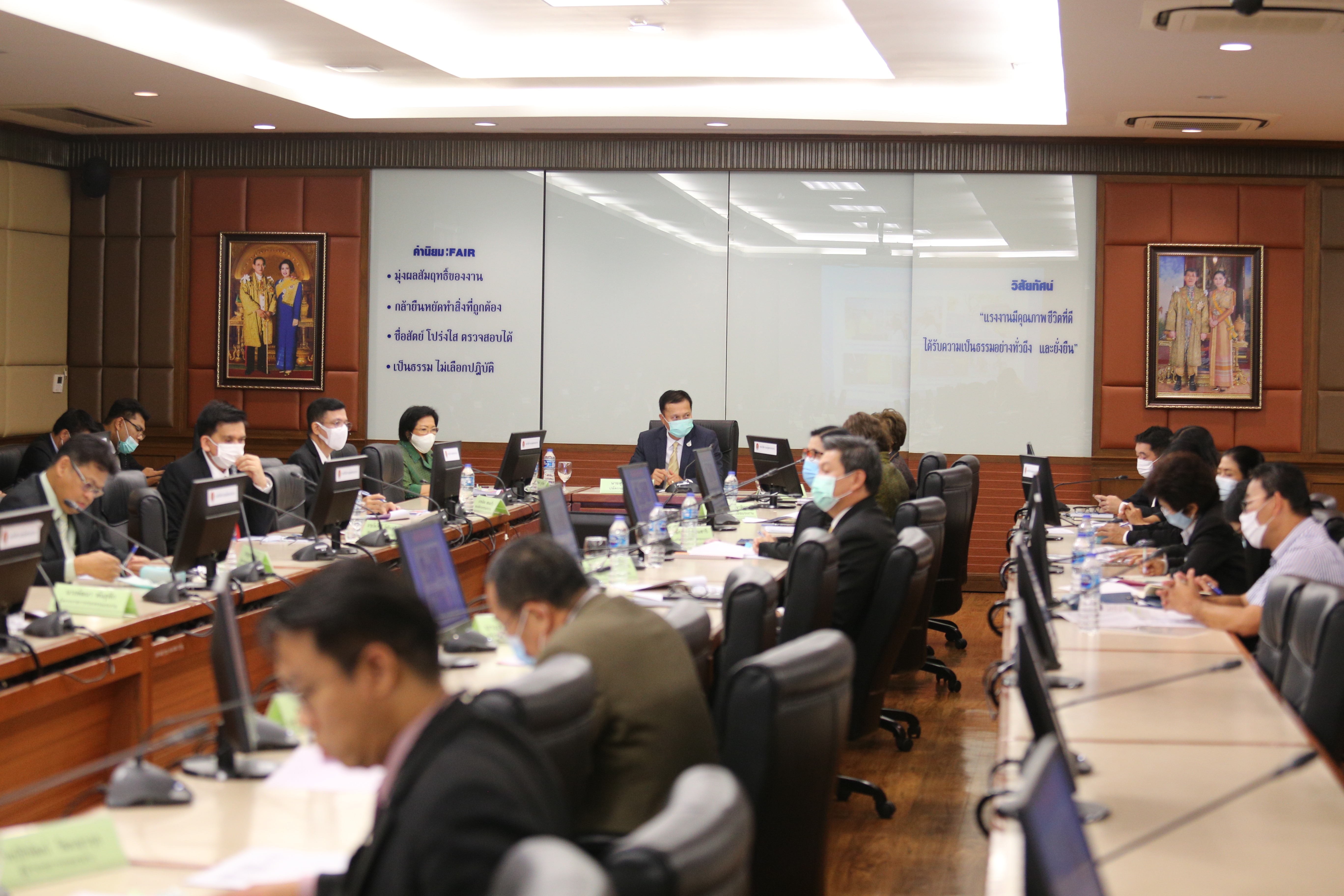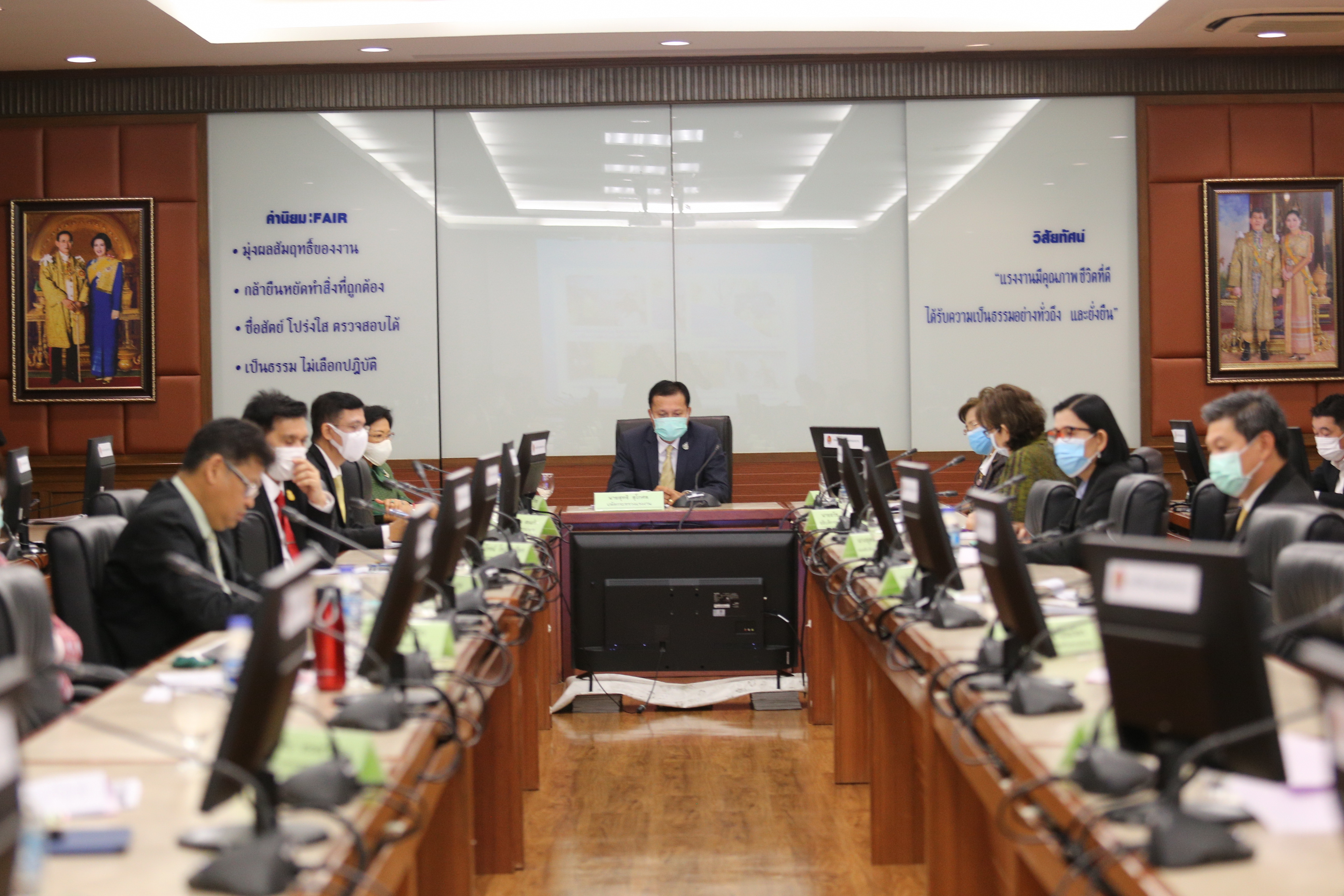 On January 27, 2021, at 13.30 hours, Permanent Secretary of Labour Mr. Suthi Sukosol chaired the meeting of the subcommittee on volunteer development for quality of life improvements for the happiness of the people no. 1/2021, which took place at the Prof. Nikom Chandravithu meeting room, 5th floor, Department of Labour Protection and Welfare, Ministry of Labour. The meeting considered projects/activities to be implemented in 2021, totaling five projects, to support volunteers’ development to improve the quality of life and create happiness for people in the communities, in areas of agencies under the Ministry of Labour.