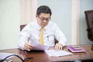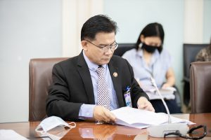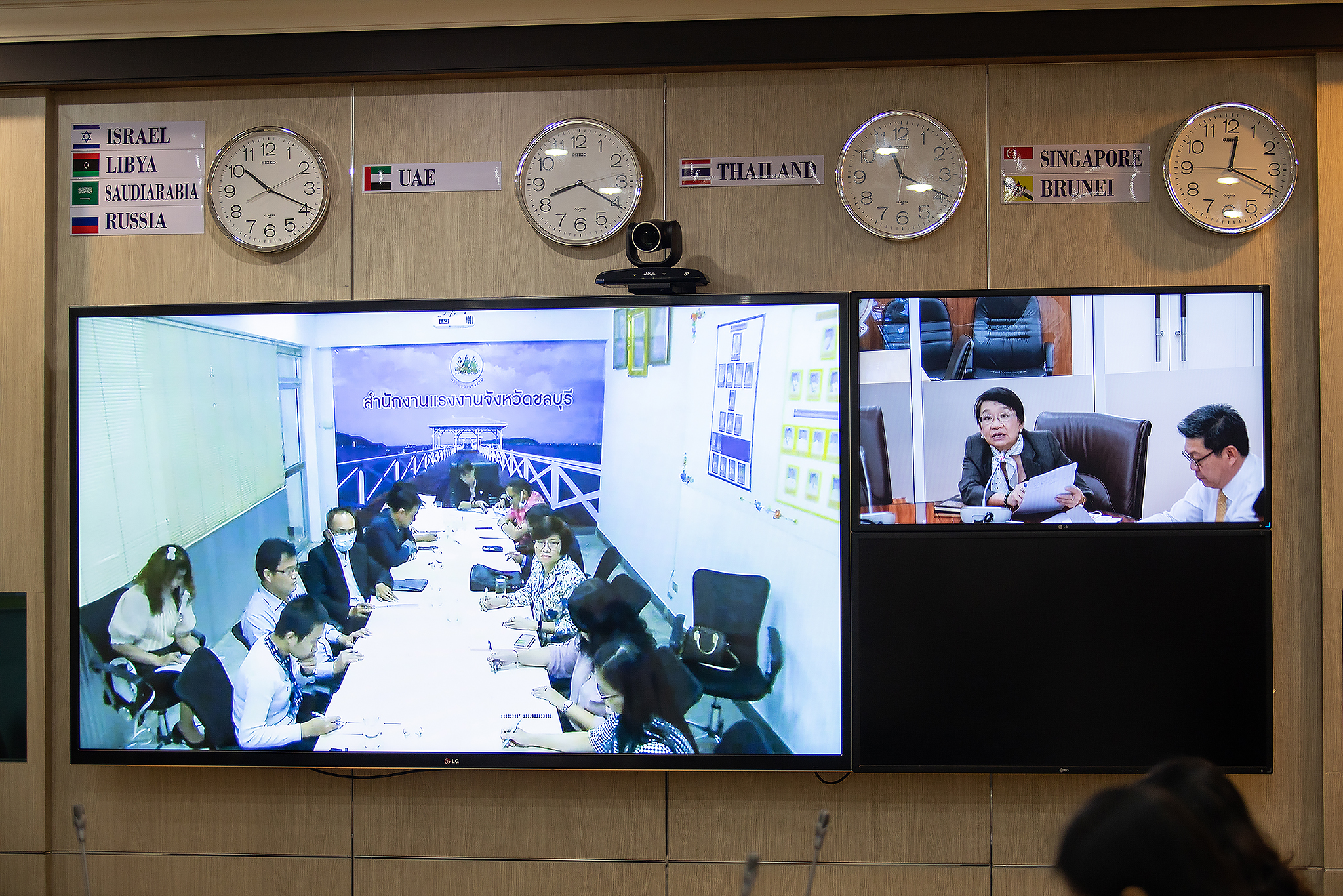 Today, November 5, 2020, at 11.00 hours, Labour Minister Mr. Suchart Chomklin assigned Advisory Board Members to the Labour Minister Police Major General Nantachat Supamongkol and Mrs. Theanrat Nawamawat, to preside over the meeting to discuss the Labour Minister and the Ministry of Labour’s executives’ official trip to Chonburi. Relevant departments from the central region and heads of government from Chonburi province also attended the meeting at the Saengsingkaew meeting room, 5th floor, Ministry of Labour.
