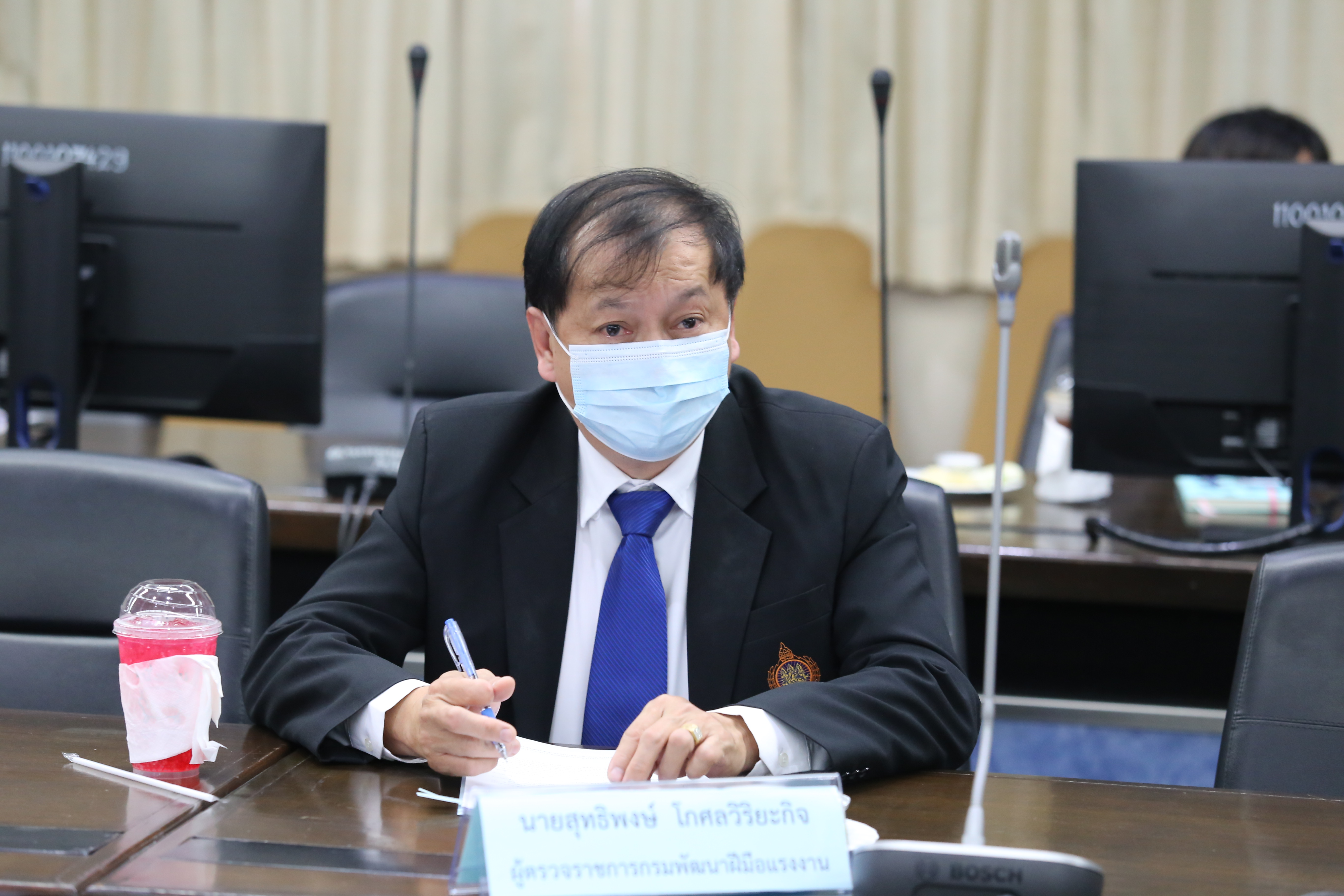 On December 16, 2020, at 09.30 hours, the Labour Minister’s Secretariat Mr. Suthep Chitayavong chaired the meeting to discuss the cooperation on the development of border patrol police skills. The meeting considered organizing additional skills training for border patrol personnel to be a model speaker in various fields and skills training in community services, such as support for disaster events in the community to repair damaged houses and repair vehicles for traveling or tools for the occupation. The meeting also discussed vocational skills training for unemployed alumni or students of the Border Patrol Police School following the area’s needs. The meeting took place at the Pakorn Angsusingh Meeting Room, 10th floor, Department of Skill Development, Ministry of Labour.