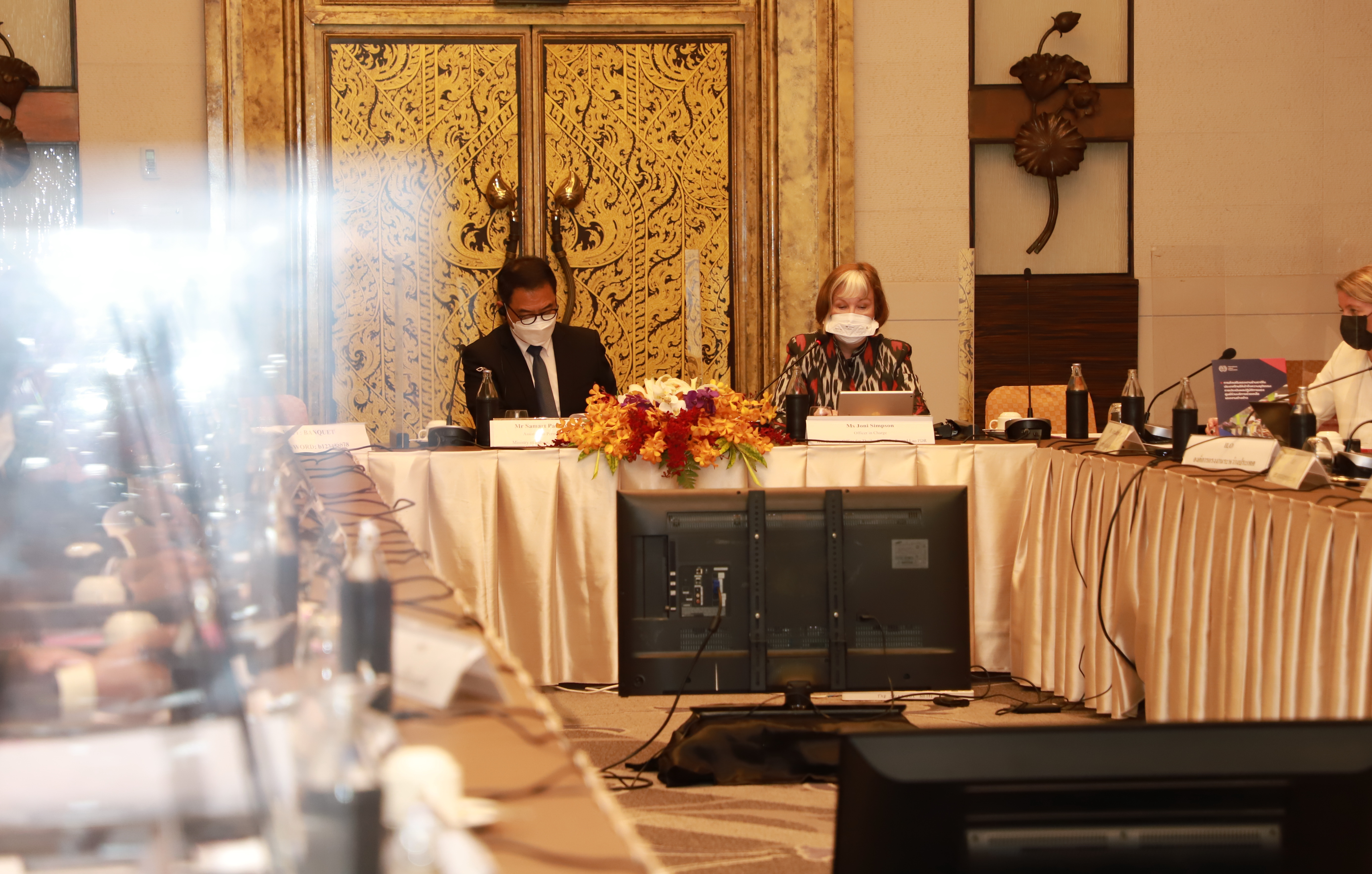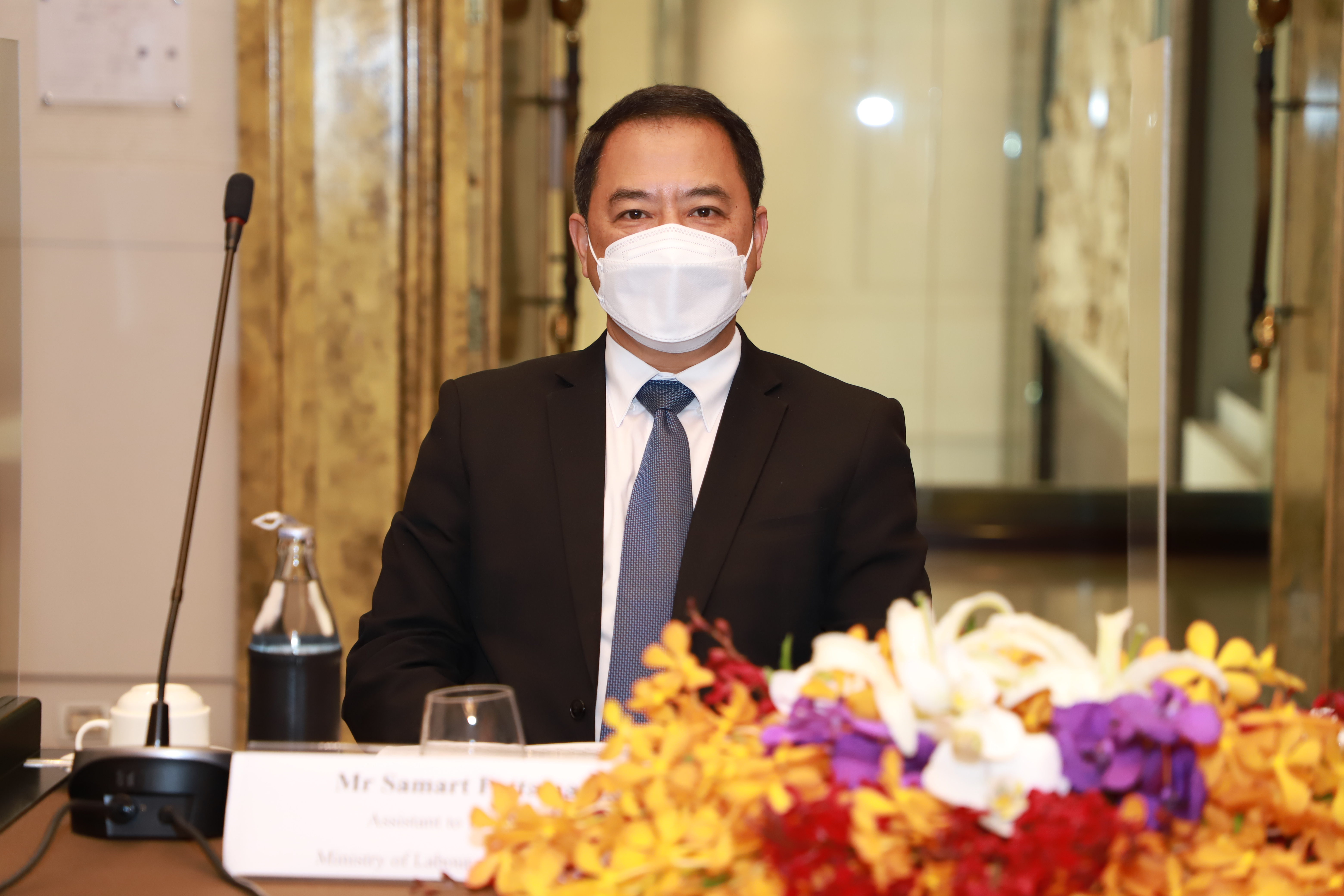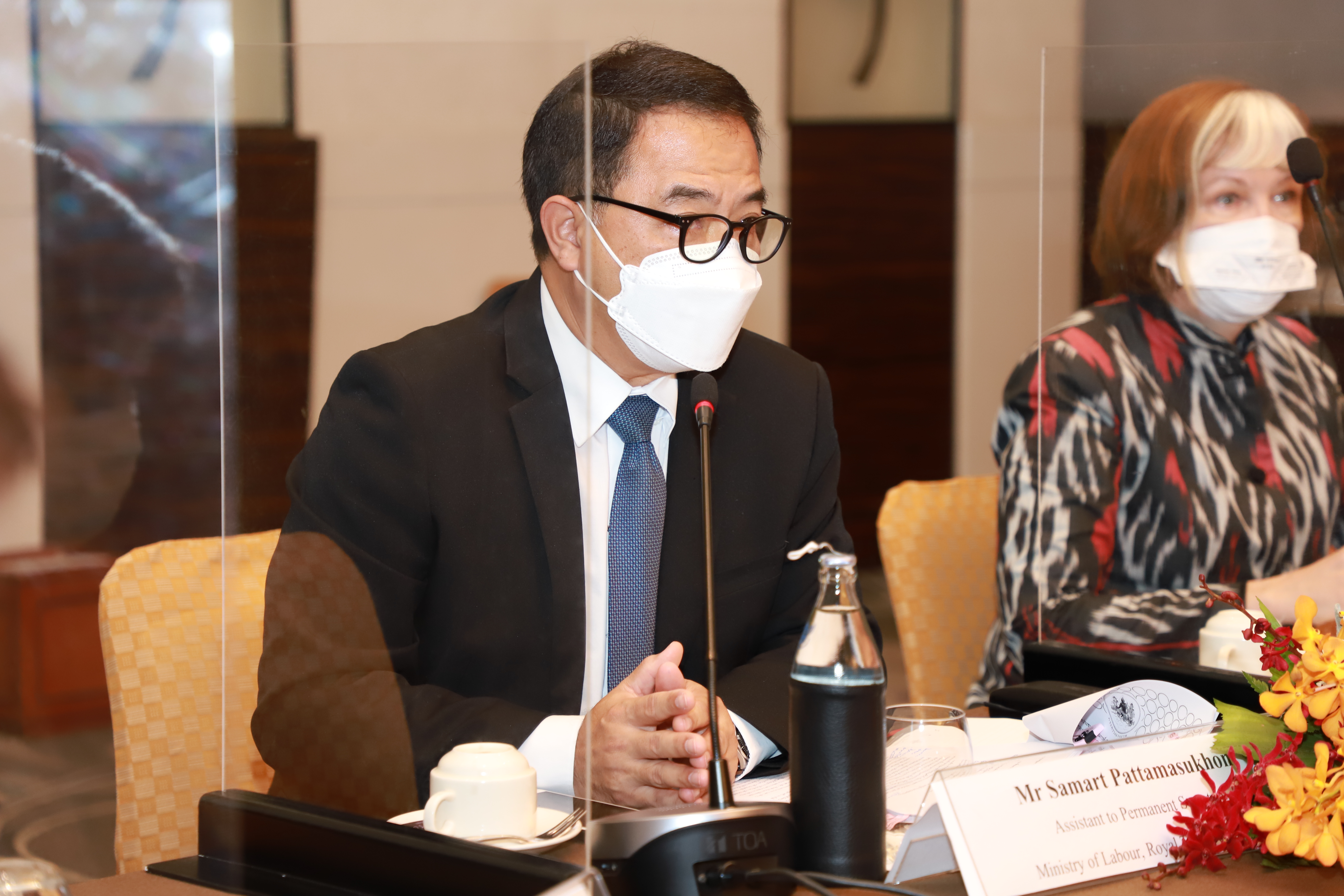 On April 1, 2022, Permanent Secretary of Labour, Mr. Boonchob Suttamanaswong, assigned Assistant to the Permanent Secretary of Labour, Mr. Samat Pattamasukon, to preside over the Migrant Workers’ Promotion and Protection Programme Advisory Committee (PAC) Meeting No. 1/2022, at the Kamonthip Meeting Room, 2nd floor, The Sukosol Hotel. The meeting discussed the progress according to the 2020-2021 work plan and presented, discussed, and certified the 2022 work plan.