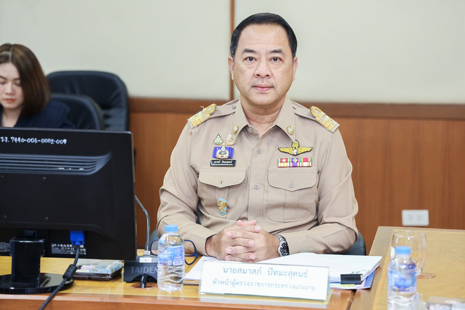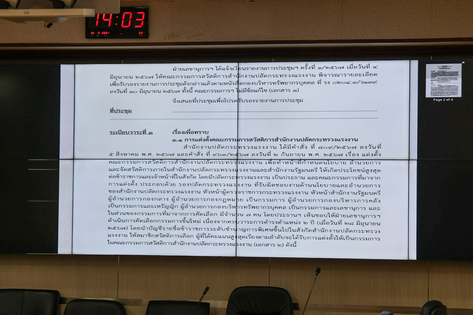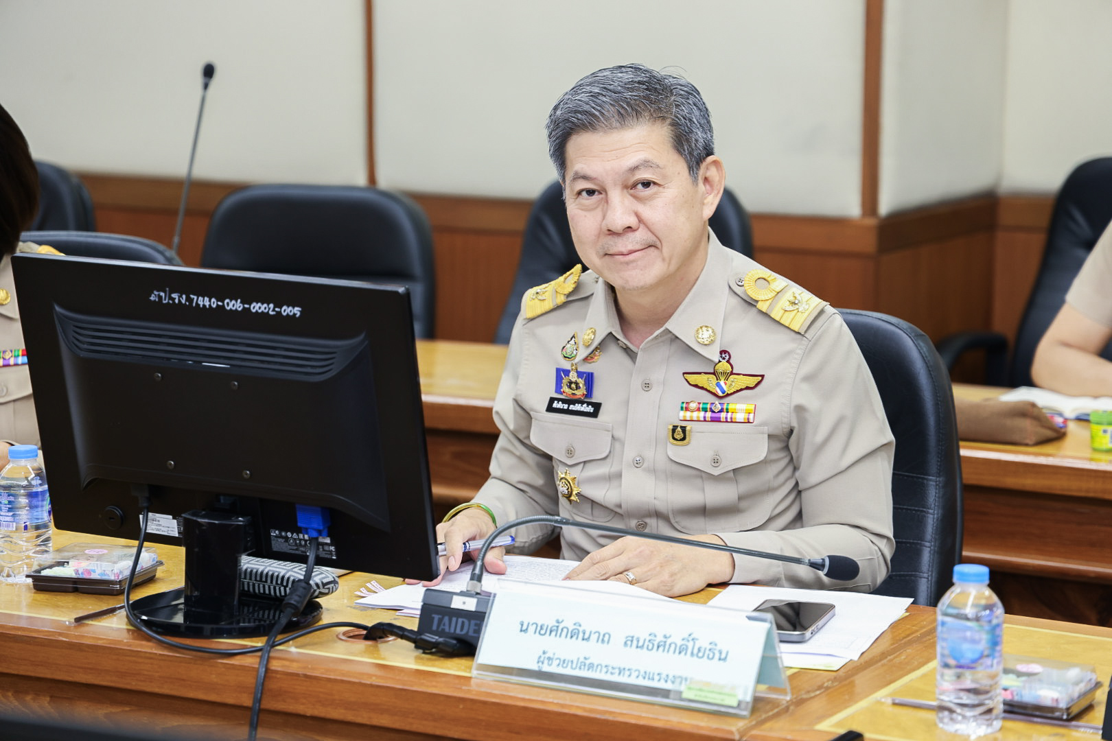 On September 10, 2024, at 14.00 hours, the Permanent Secretary of Labour, Mr. Pairoj Chotikasathien, assigned the Deputy Permanent Secretary of Labour, Lieutenant Saroj Komkhai, to chair the Office of the Permanent Secretary of Labour’s Welfare Committee Meeting No. 2/2024. The Ministry of Labour’s Inspector-Generals, Mr. Samat Pattamasukon, Ms. Bunyawee Khaipan, Mrs. Marasri Jairangsi, and Mr. Santi Nantasuwan, the Assistants to the Permanent Secretary of Labour, Ms. Kornjirat Phongchansathorn, and Mr. Sakdinart Sonthisakyotin, and relevant agencies joined the meeting. The meeting considered organizing a show of appreciation for retirees of the Ministry of Labour and took place at the Prasong Rananant Meeting Room, 5th floor, Ministry of Labour.