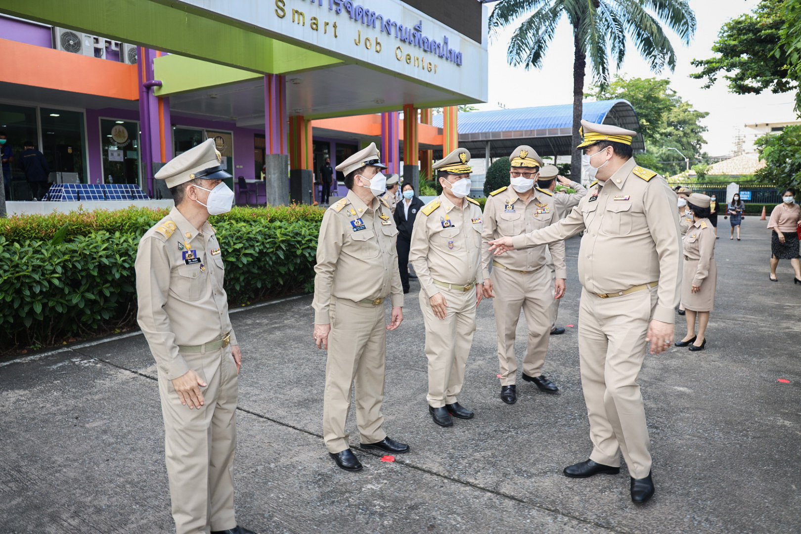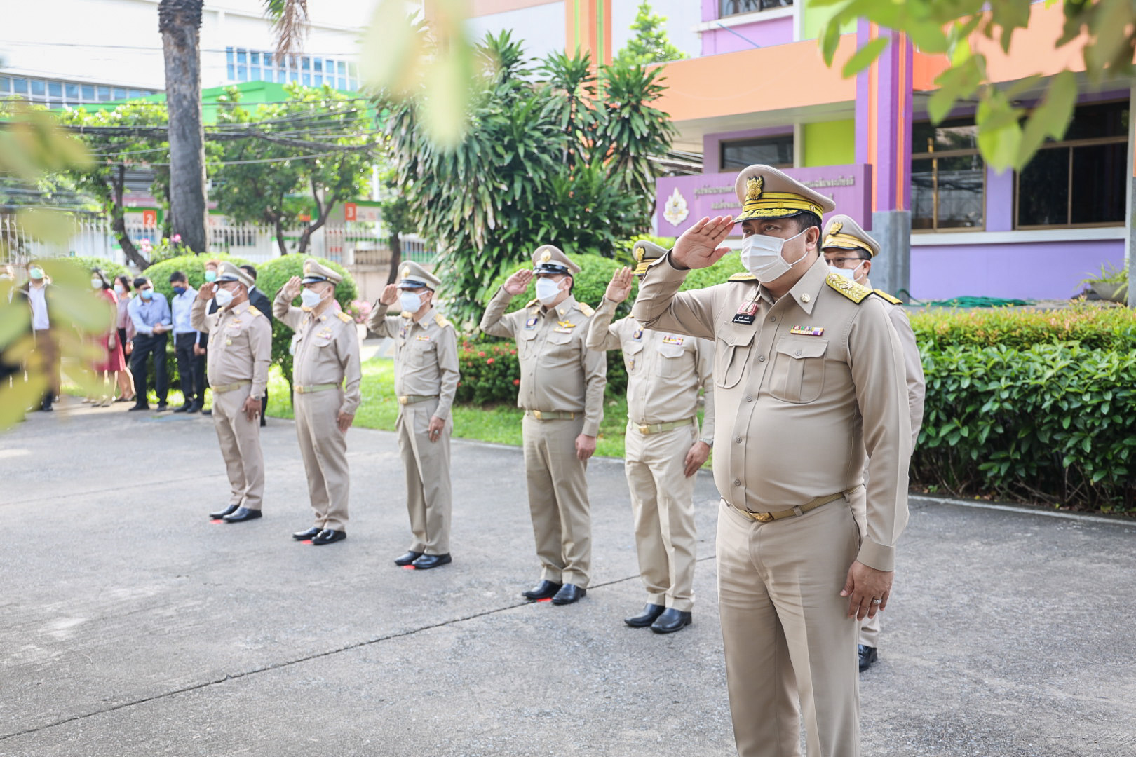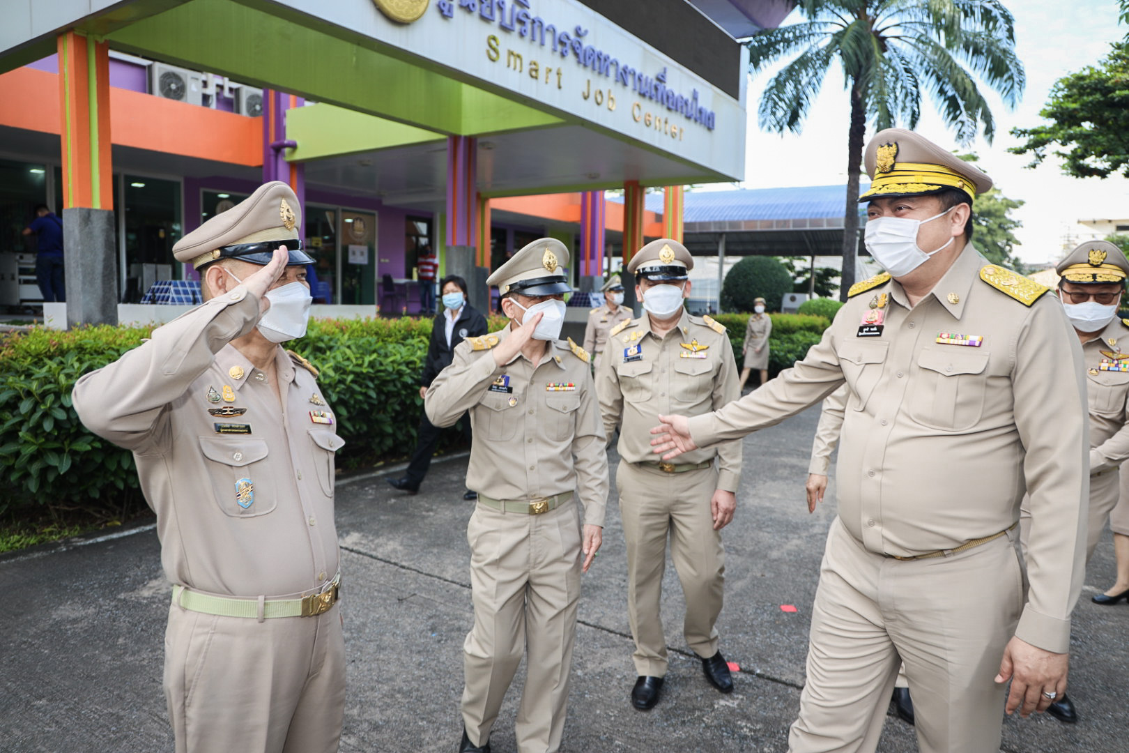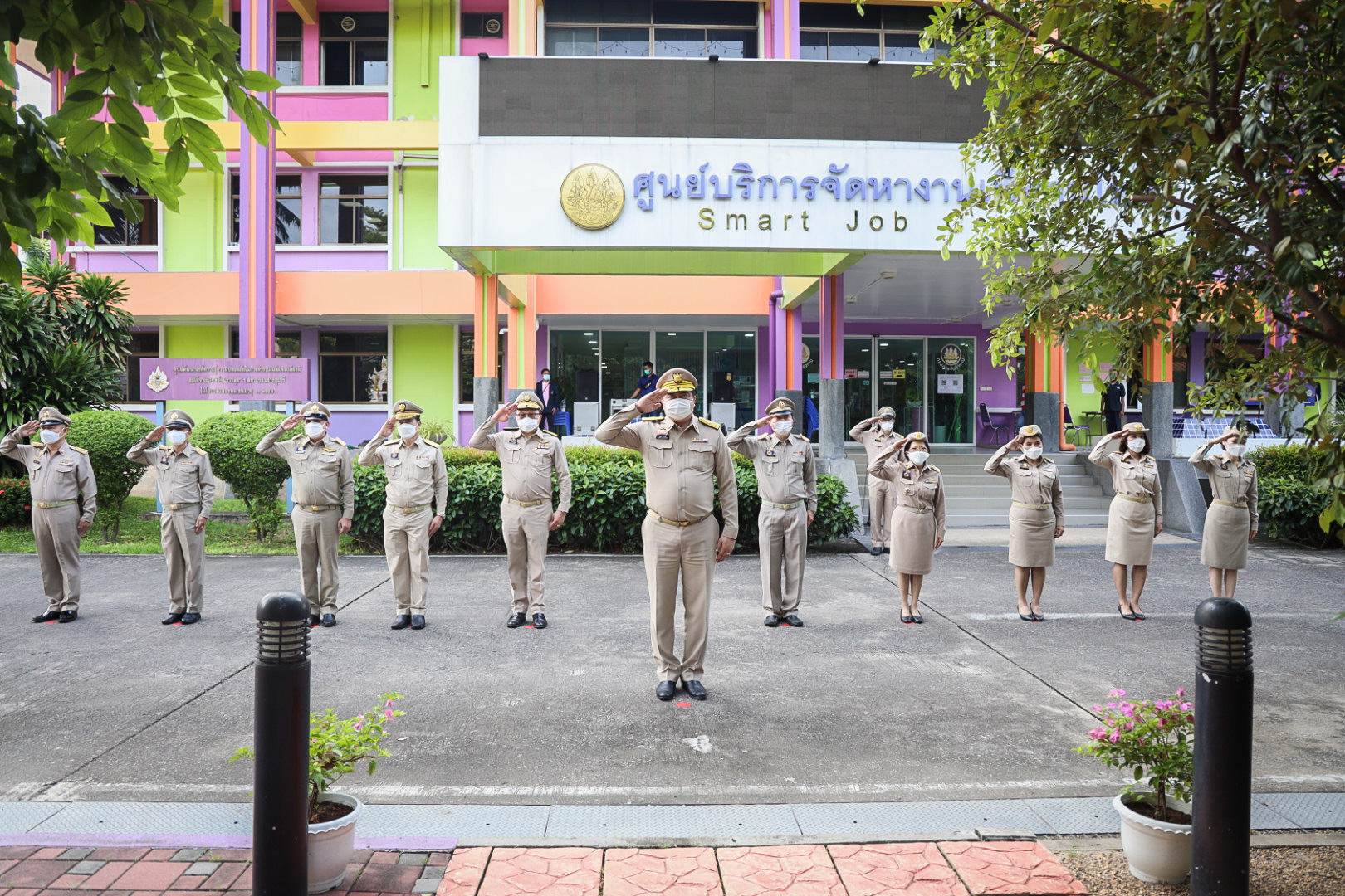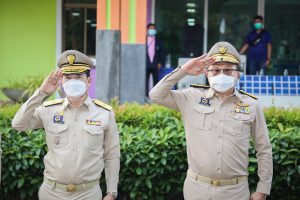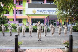 On September 28, 2021, at 08.00 hours, Labour Minister Mr. Suchart Chomklin presided over the activities on the occasion of the Thai National Flag Day 2021. Assistant to the Labour Minister Mr. Surachai Chaitrakulthong, Secretariat to the Labour Minister Mr. Suthep Chitayawong, Permanent Secretary of Labour Mr. Suthi Sukosol, and the Ministry of Labour’s executives also joined the occasion around the flag pole in front of the Smart Job Center, Ministry of Labour. Mr. Suchart said that the Cabinet at the meeting on September 20, 2016, approved September 28 of every year as the Thai National Flag Day. It started on September 28, 2017, as the first day without being considered a public holiday. It requires that the Thai flag be hoisted and decorated on that day to create pride among the nation’s people and pay homage to His Majesty King Rama VI, who gave the tricolor flag as the Thai flag.