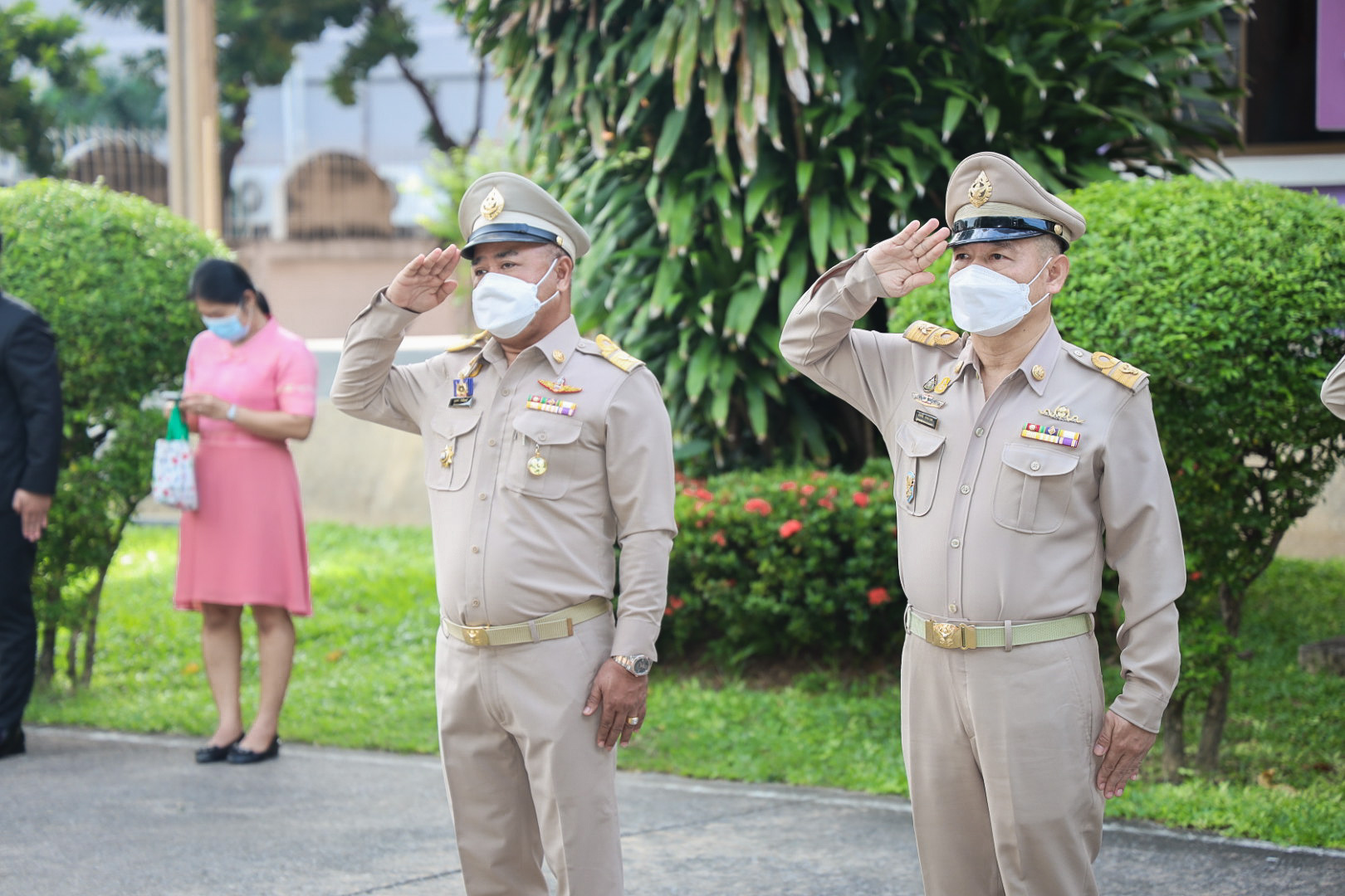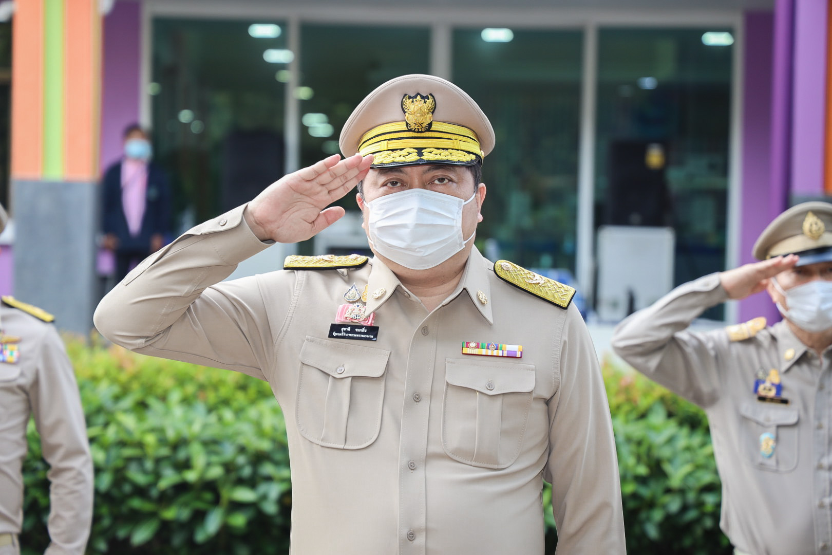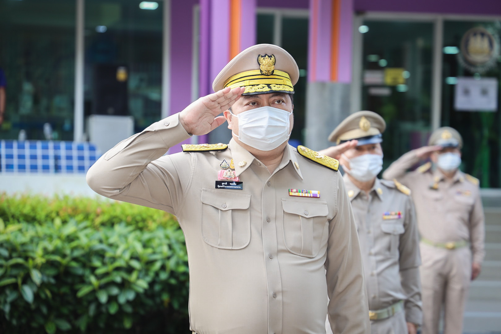 On September 28, 2021, at 08.00 hours, Labour Minister Mr. Suchart Chomklin presided over the activities on the occasion of the Thai National Flag Day 2021. Assistant to the Labour Minister Mr. Surachai Chaitrakulthong, Secretariat to the Labour Minister Mr. Suthep Chitayawong, Permanent Secretary of Labour Mr. Suthi Sukosol, and the Ministry of Labour’s executives also joined the occasion around the flag pole in front of the Smart Job Center, Ministry of Labour. Mr. Suchart said that the Cabinet at the meeting on September 20, 2016, approved September 28 of every year as the Thai National Flag Day. It started on September 28, 2017, as the first day without being considered a public holiday. It requires that the Thai flag be hoisted and decorated on that day to create pride among the nation’s people and pay homage to His Majesty King Rama VI, who gave the tricolor flag as the Thai flag.