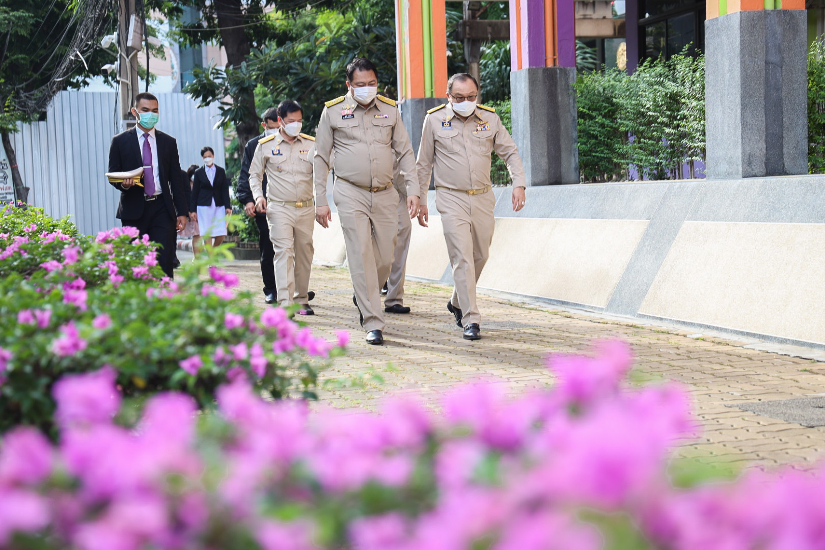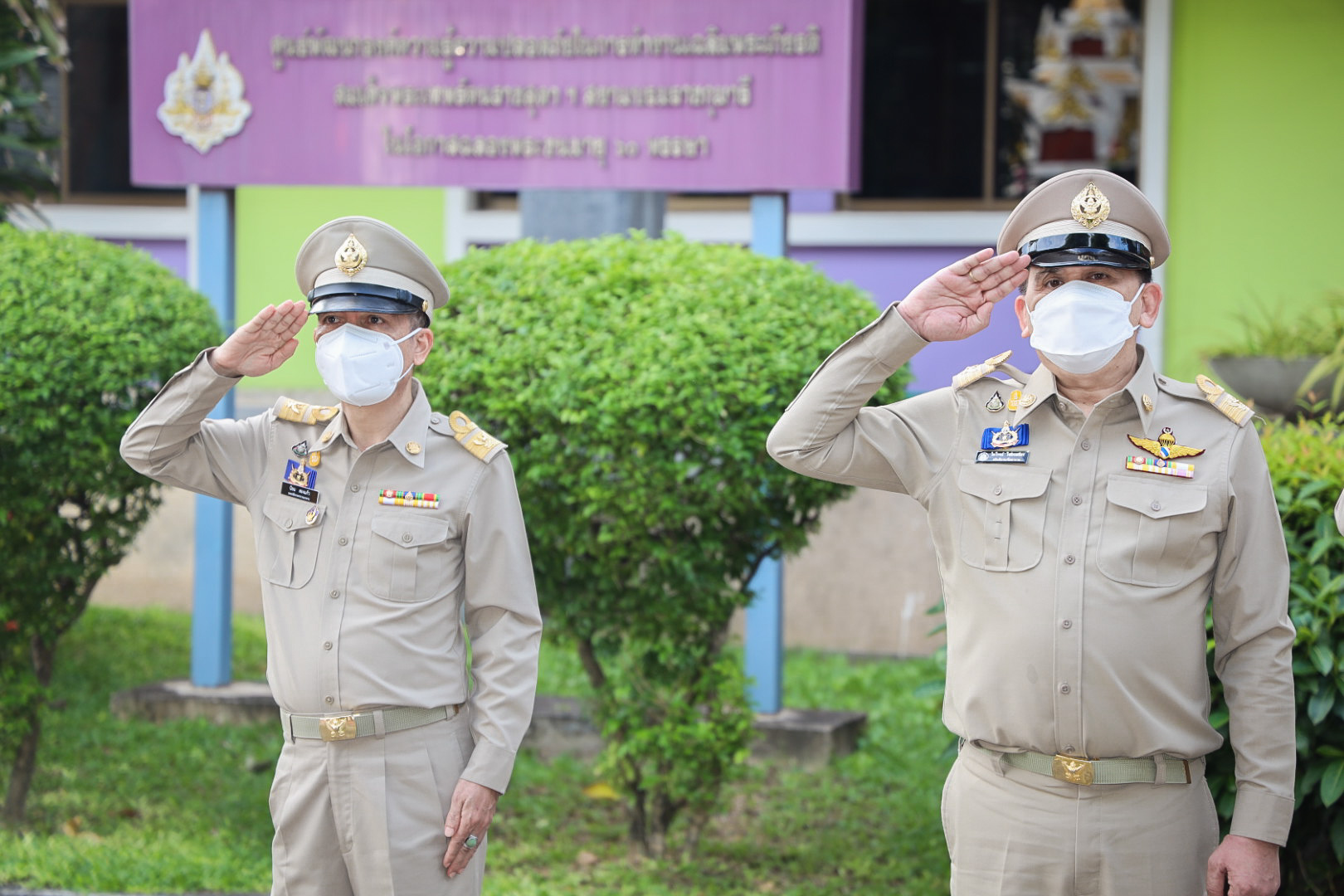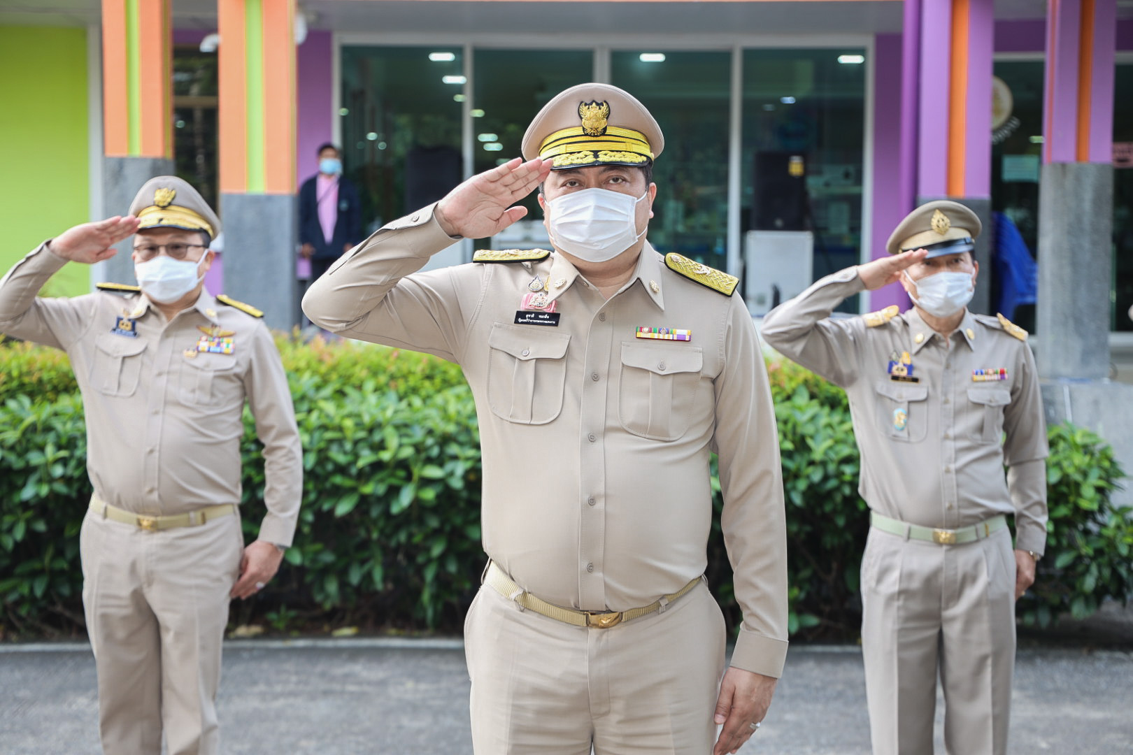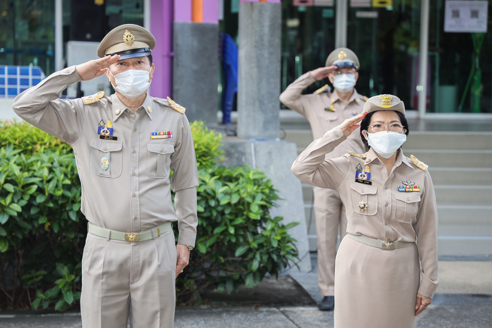 On September 28, 2021, at 08.00 hours, Labour Minister Mr. Suchart Chomklin presided over the activities on the occasion of the Thai National Flag Day 2021. Assistant to the Labour Minister Mr. Surachai Chaitrakulthong, Secretariat to the Labour Minister Mr. Suthep Chitayawong, Permanent Secretary of Labour Mr. Suthi Sukosol, and the Ministry of Labour’s executives also joined the occasion around the flag pole in front of the Smart Job Center, Ministry of Labour. Mr. Suchart said that the Cabinet at the meeting on September 20, 2016, approved September 28 of every year as the Thai National Flag Day. It started on September 28, 2017, as the first day without being considered a public holiday. It requires that the Thai flag be hoisted and decorated on that day to create pride among the nation’s people and pay homage to His Majesty King Rama VI, who gave the tricolor flag as the Thai flag.