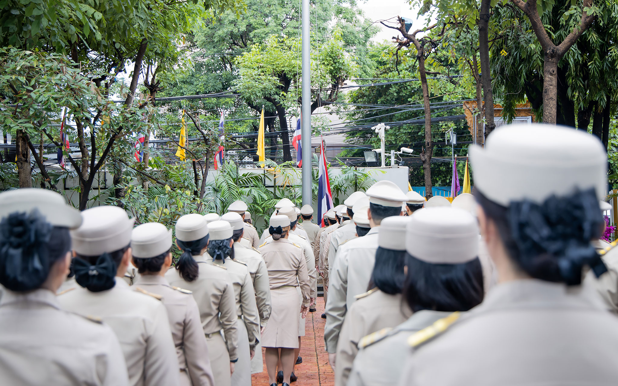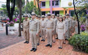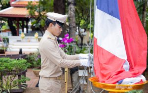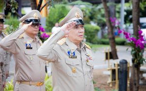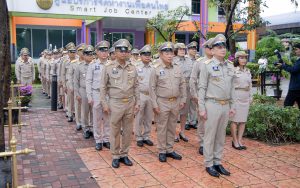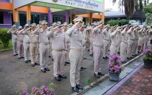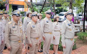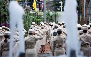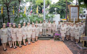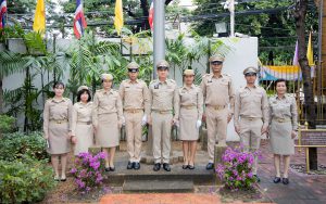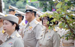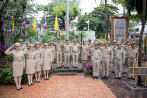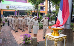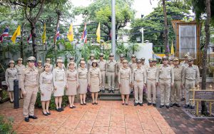 Mr. Pairoj said that September 28 is the day of the bestowal of the Thai national flag, which is considered the nation’s most significant symbol. Originally, the Thai national flag had many forms until the reign of King Rama VI, who graciously issued a new Flag Act in 1917. He defined the meaning of the colours of the national flag: red represents the nation or the people, white represents religion, and blue represents the monarchy. The tricolor flag, or the Thai national flag, is considered the highest symbol of the nation, a reminder for the younger generation to remember the sacrifice of the blood of our ancestors to preserve the land and unite the hearts of the entire country, fostering love and unity, pride in nationality, and creating a great force in the development of the Thai nation.