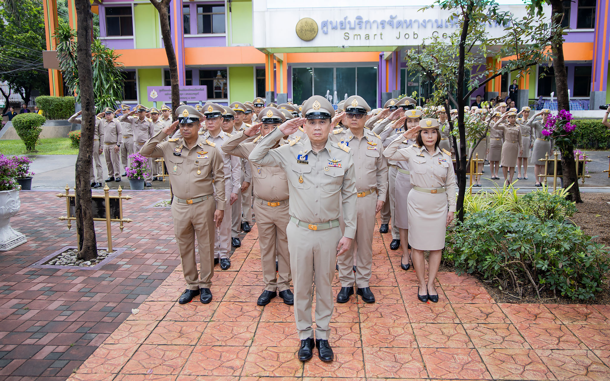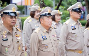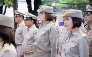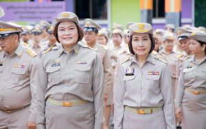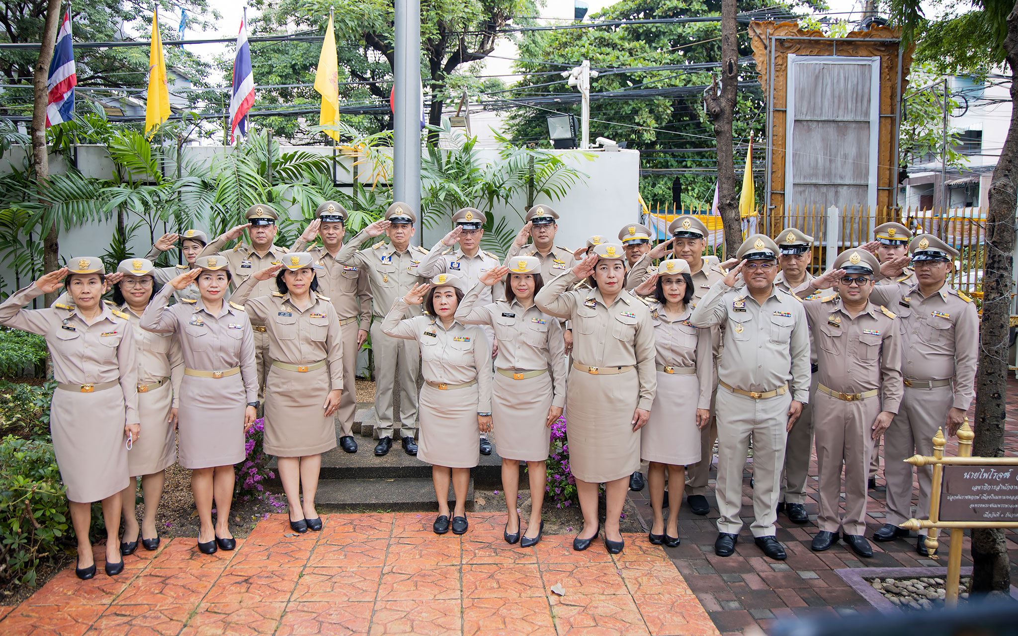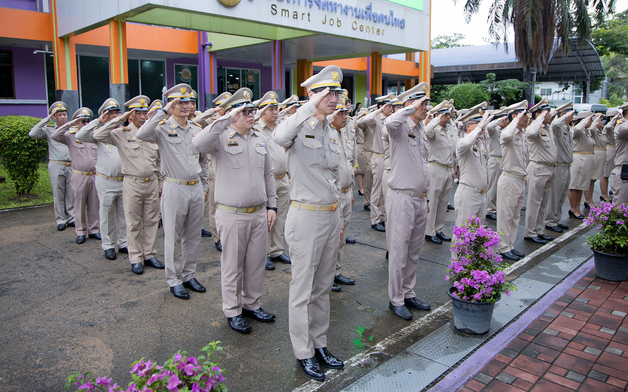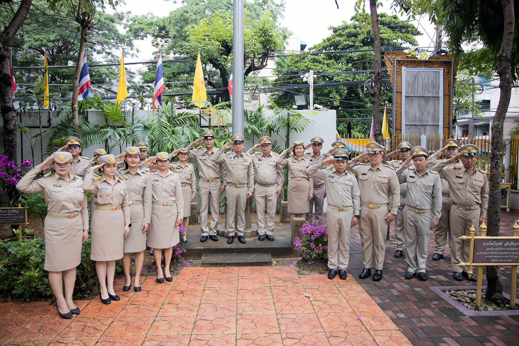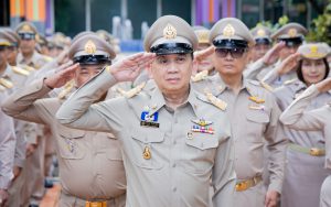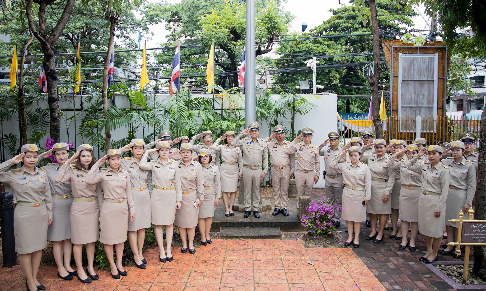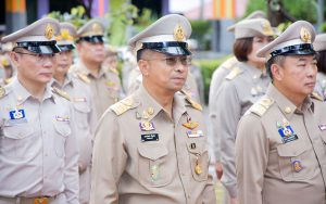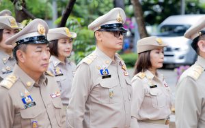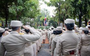 On September 25, 2024, at 08.00 hours, the Permanent Secretary of Labour, Mr. Pairoj Chotikasathien, chaired the flag-saluting ceremony, singing the Thai national anthem and displaying the Thai national flag on the occasion of Thai National Flag Day on September 28, 2024. The Ministry of Labour’s senior executives, civil servants, and officials participated in the event at the flagpole in front of the Smart Job Center building at the Ministry of Labour.