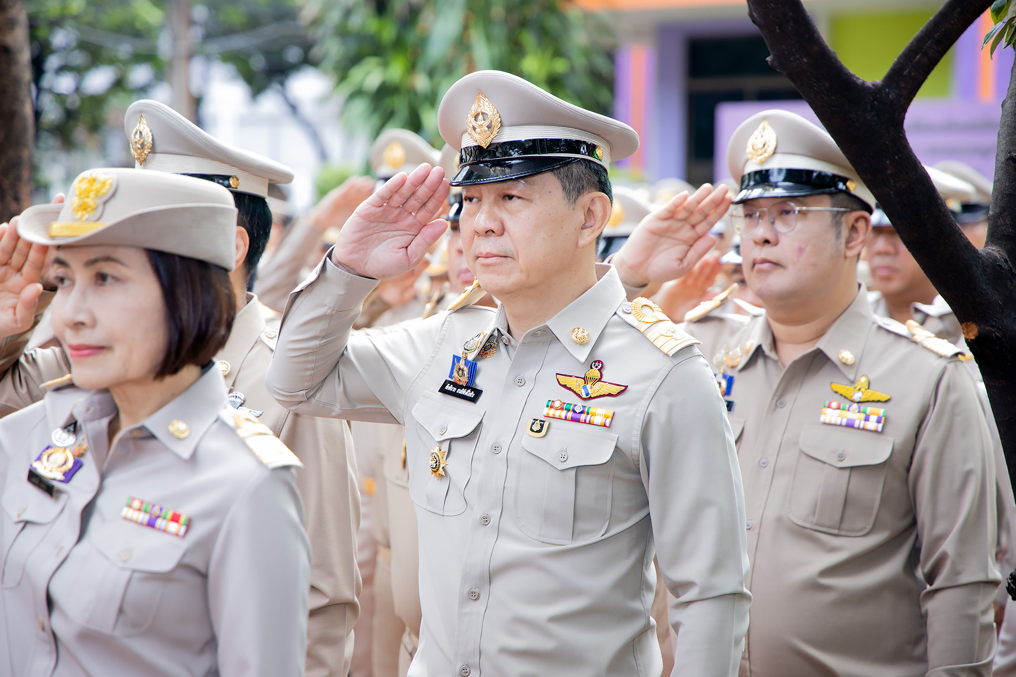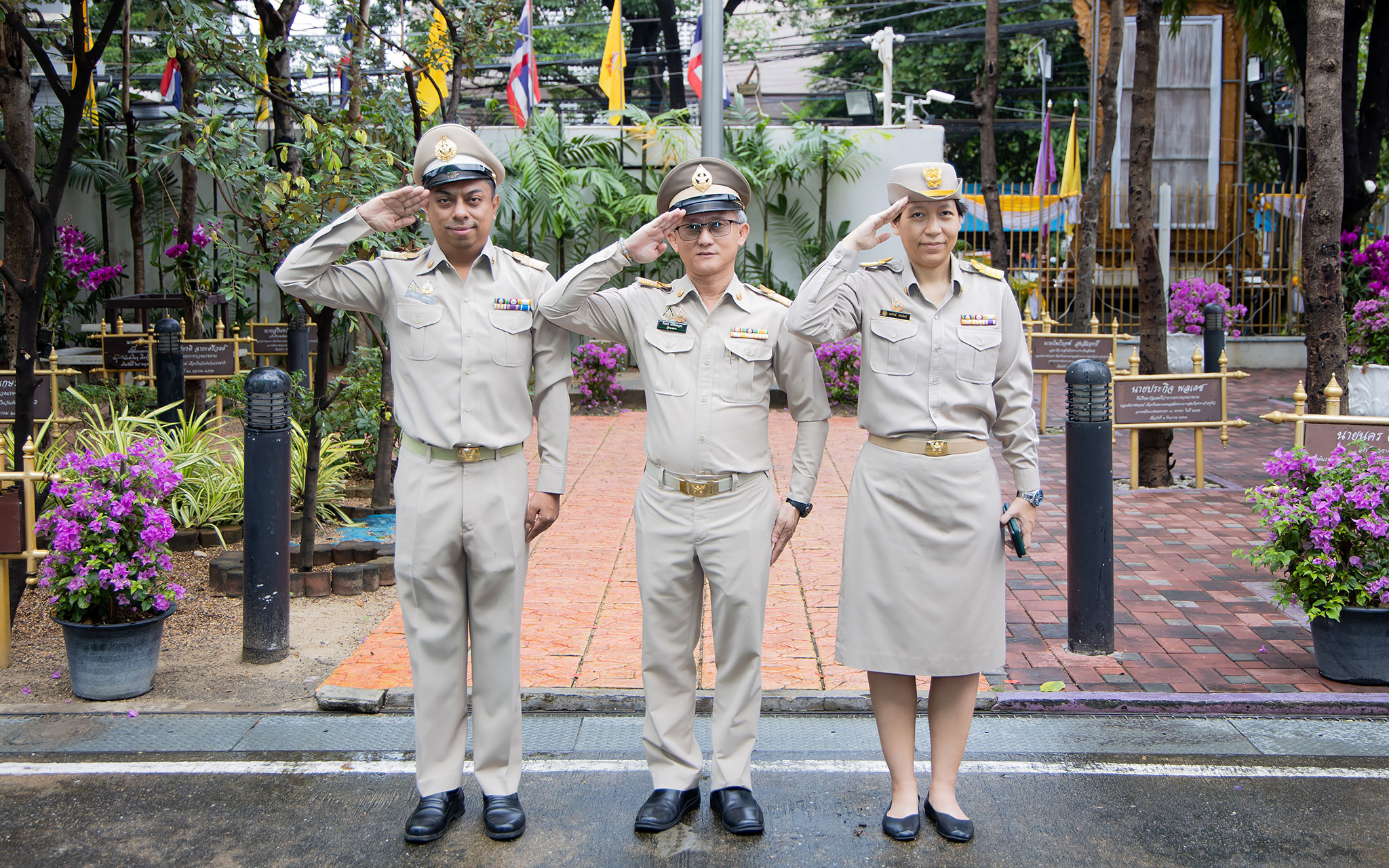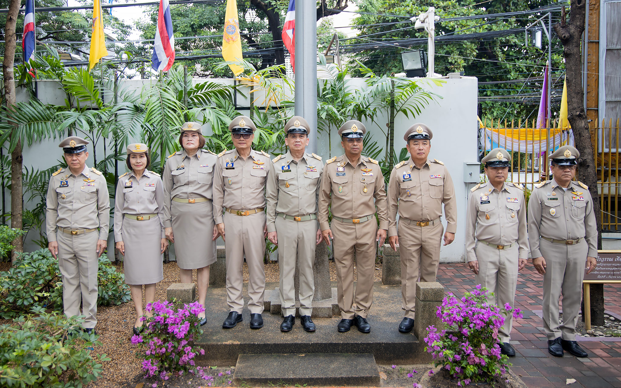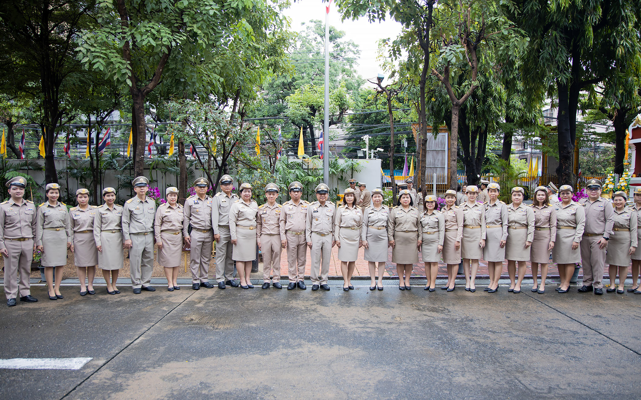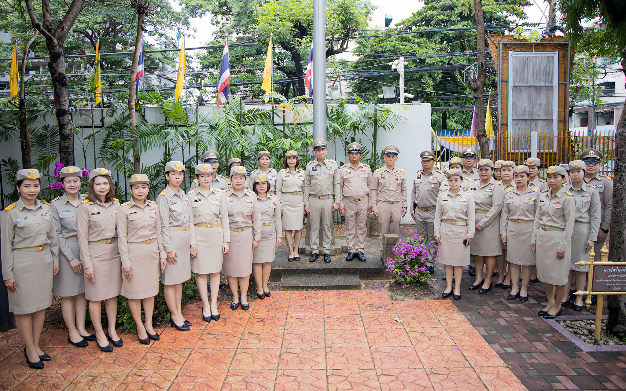 On September 25, 2024, at 08.00 hours, the Permanent Secretary of Labour, Mr. Pairoj Chotikasathien, chaired the flag-saluting ceremony, singing the Thai national anthem and displaying the Thai national flag on the occasion of Thai National Flag Day on September 28, 2024. The Ministry of Labour’s senior executives, civil servants, and officials participated in the event at the flagpole in front of the Smart Job Center building at the Ministry of Labour.