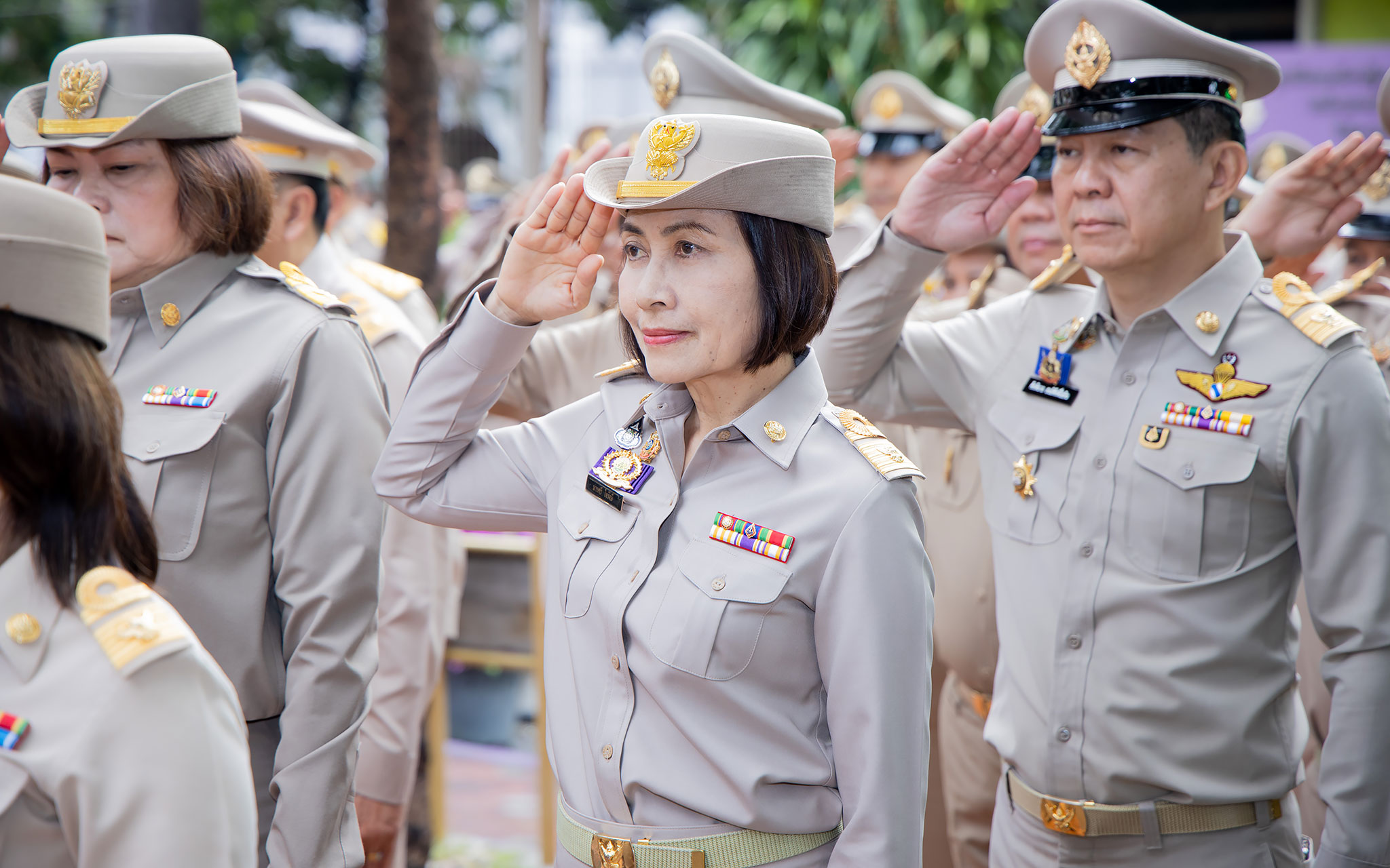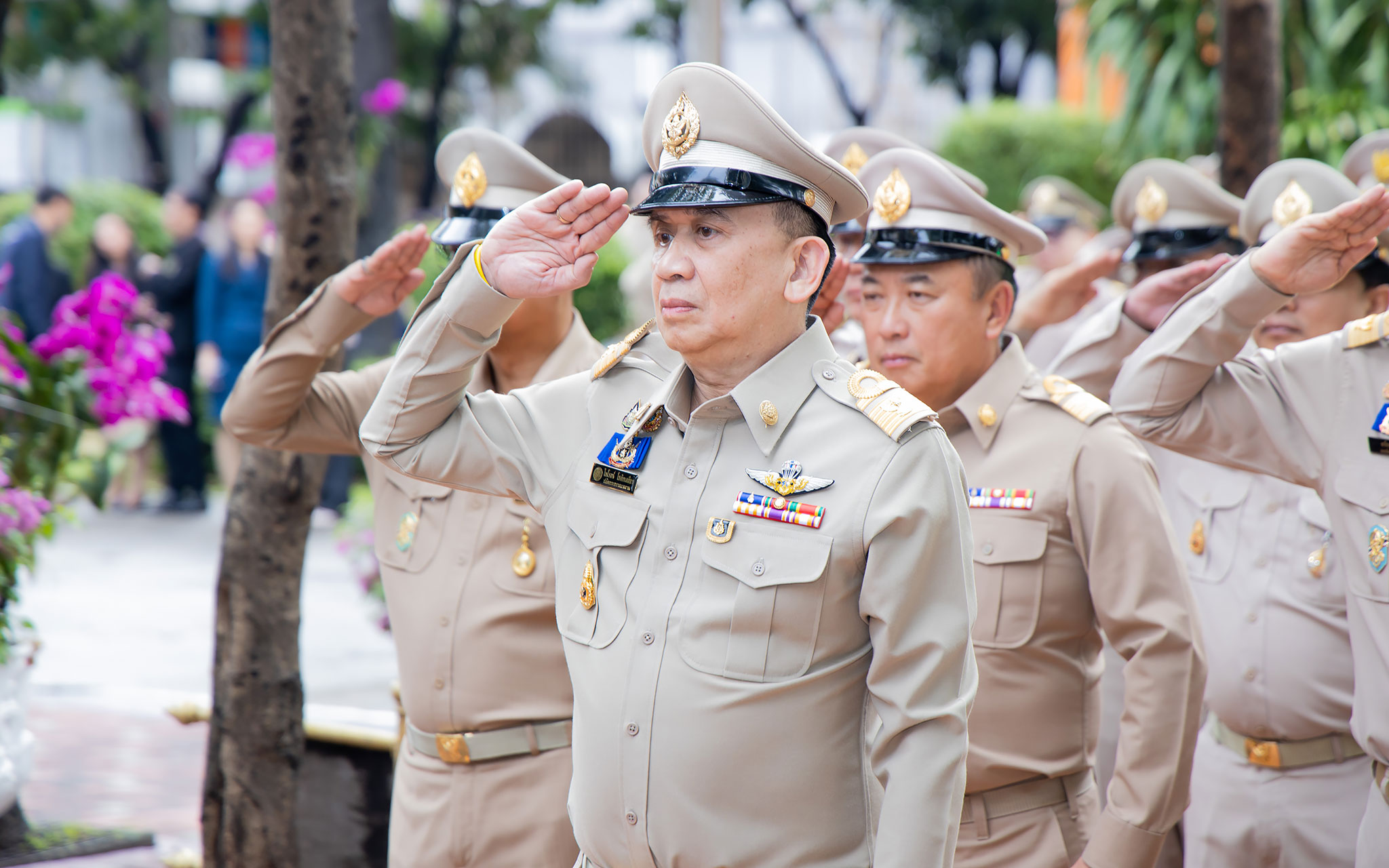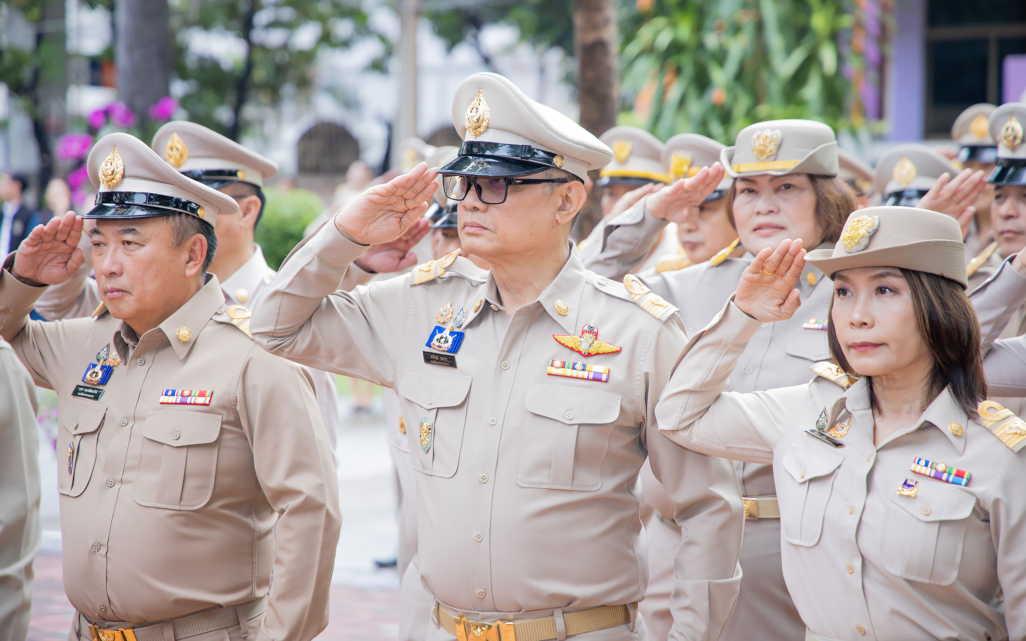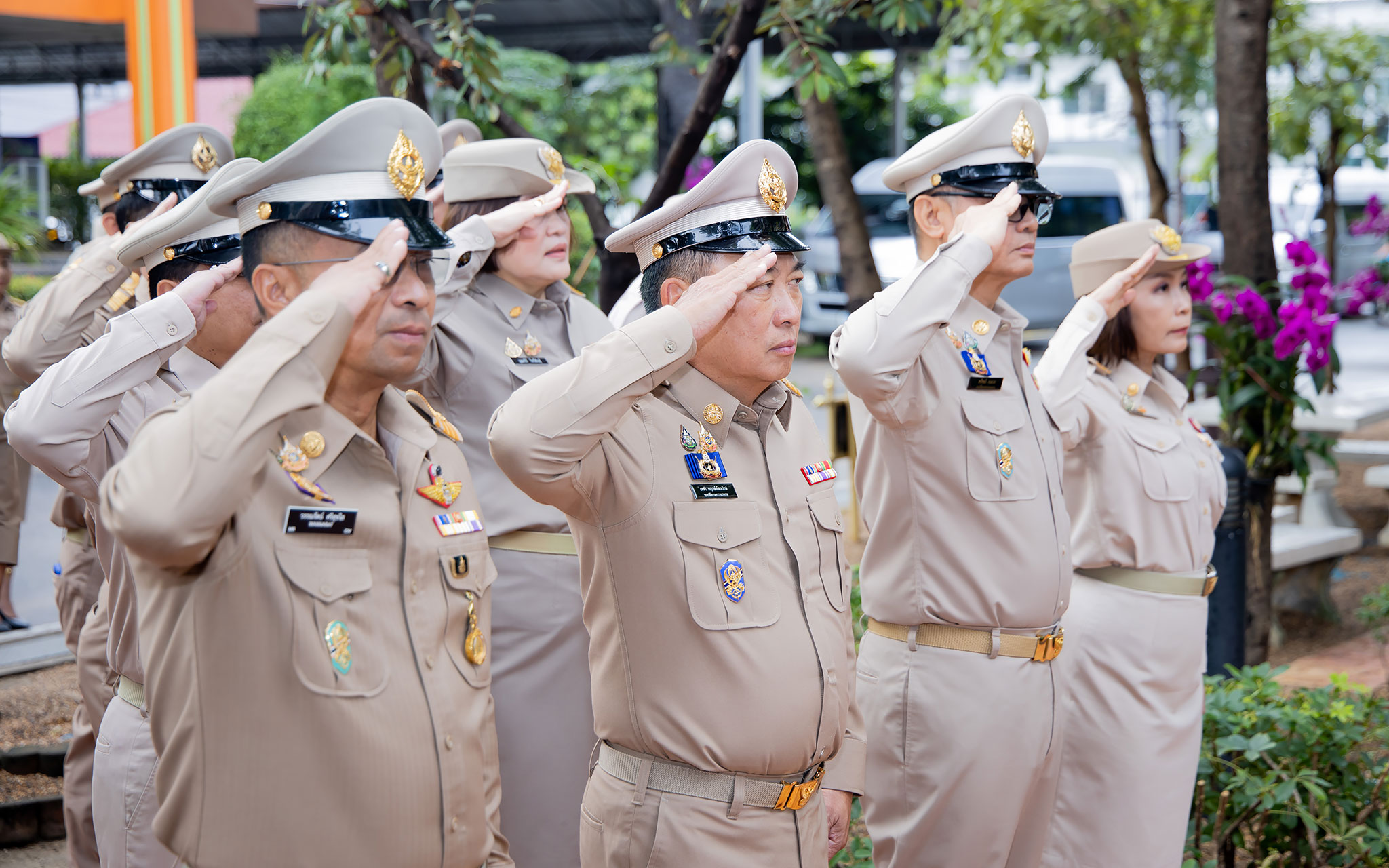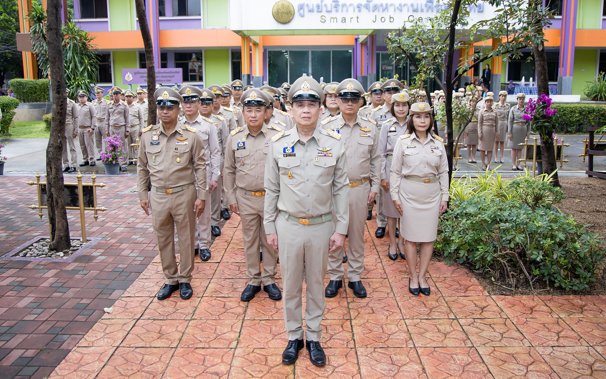 On September 25, 2024, at 08.00 hours, the Permanent Secretary of Labour, Mr. Pairoj Chotikasathien, chaired the flag-saluting ceremony, singing the Thai national anthem and displaying the Thai national flag on the occasion of Thai National Flag Day on September 28, 2024. The Ministry of Labour’s senior executives, civil servants, and officials participated in the event at the flagpole in front of the Smart Job Center building at the Ministry of Labour.