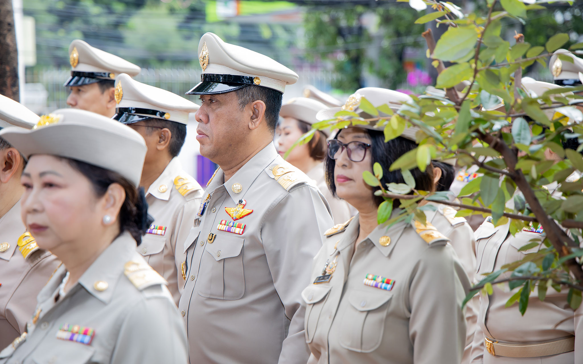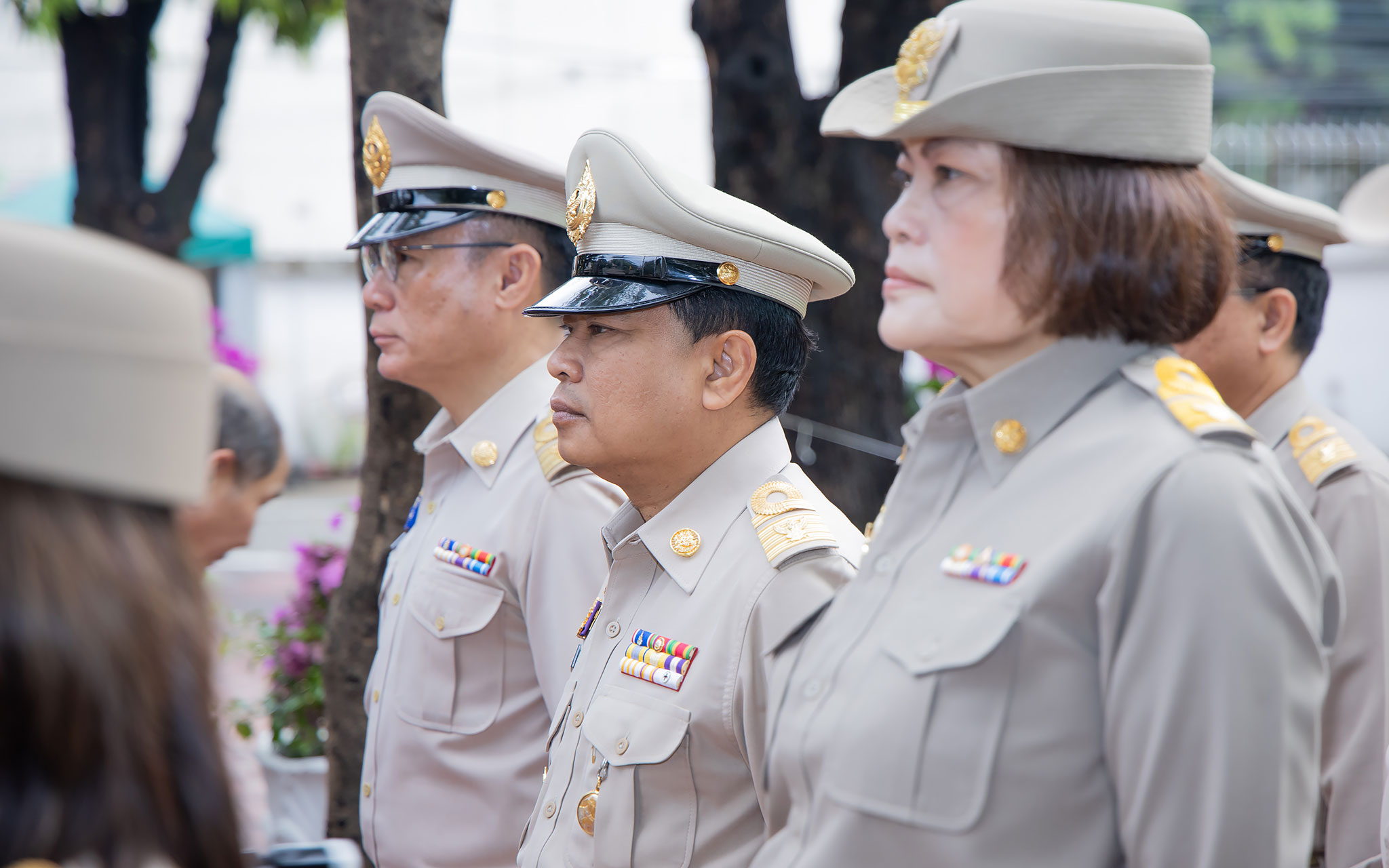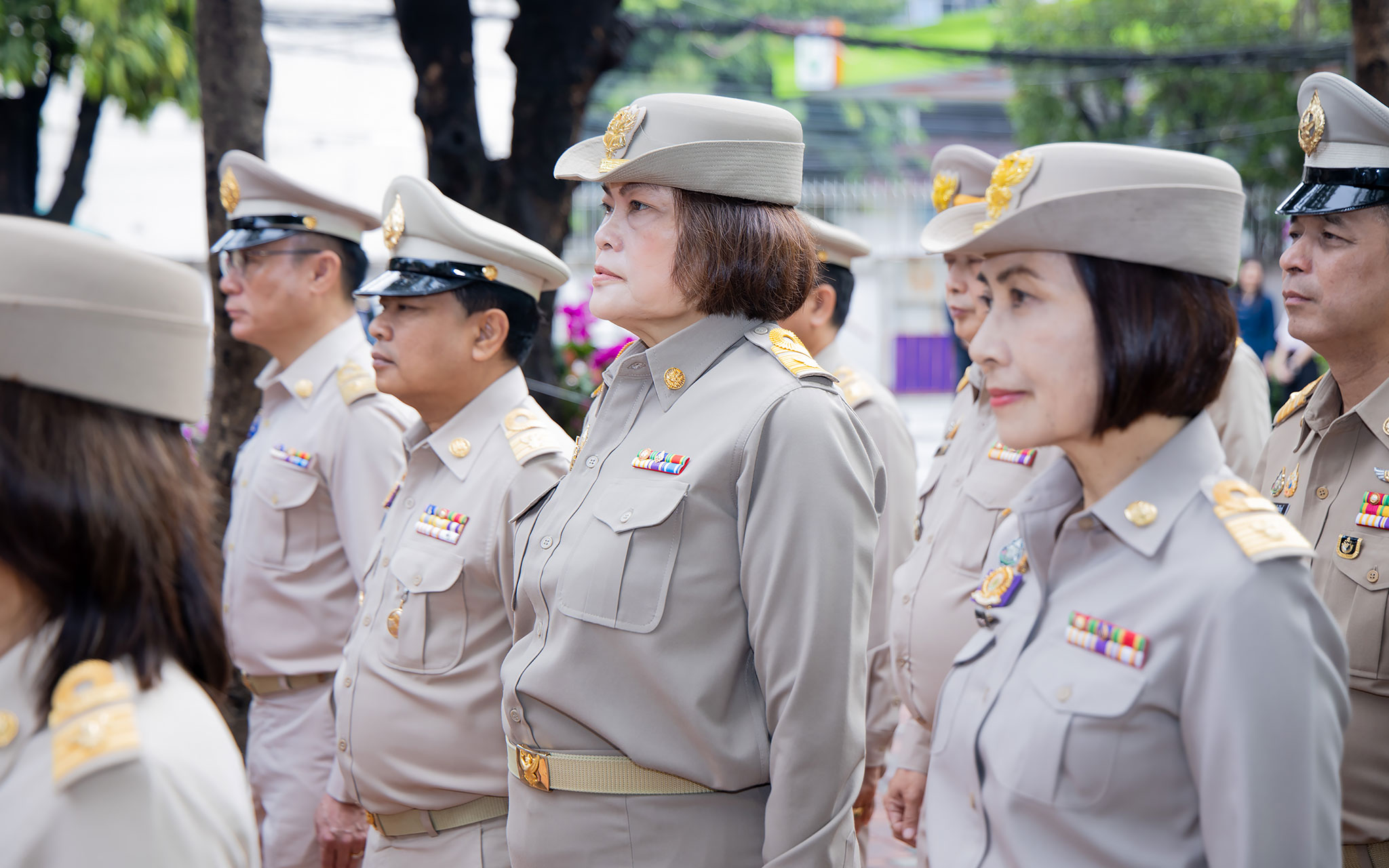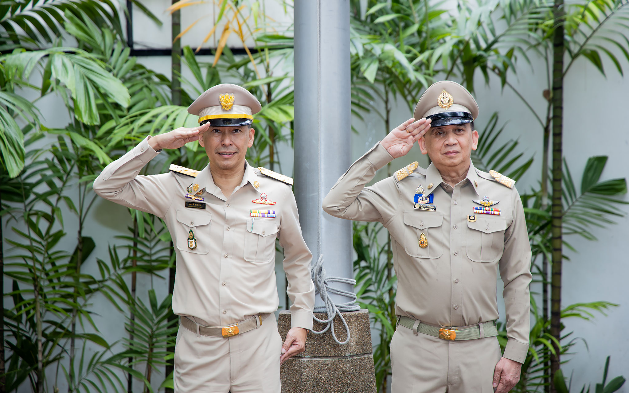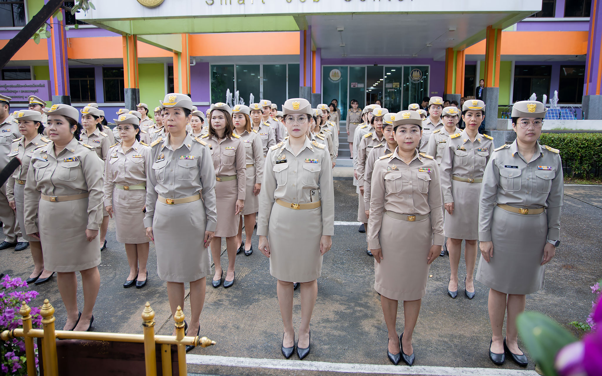 On September 25, 2024, at 08.00 hours, the Permanent Secretary of Labour, Mr. Pairoj Chotikasathien, chaired the flag-saluting ceremony, singing the Thai national anthem and displaying the Thai national flag on the occasion of Thai National Flag Day on September 28, 2024. The Ministry of Labour’s senior executives, civil servants, and officials participated in the event at the flagpole in front of the Smart Job Center building at the Ministry of Labour.