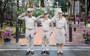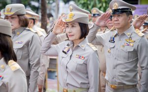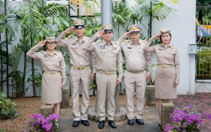 Mr. Pairoj added that the activity of saluting the national flag, singing the Thai national anthem, and displaying the Thai national flag at the flagpole in front of the Smart Job Center building on the occasion of the Thai National Flag Day of the Ministry of Labour today is considered a way for the Ministry of Labour’s personnel to show respect and to commemorate the great kindness of King Rama VI who granted the Tricolor Flag as the Thai national flag up until the present. It also strengthens the pride in being Thai among the personnel of the Ministry of Labour and promotes unity.