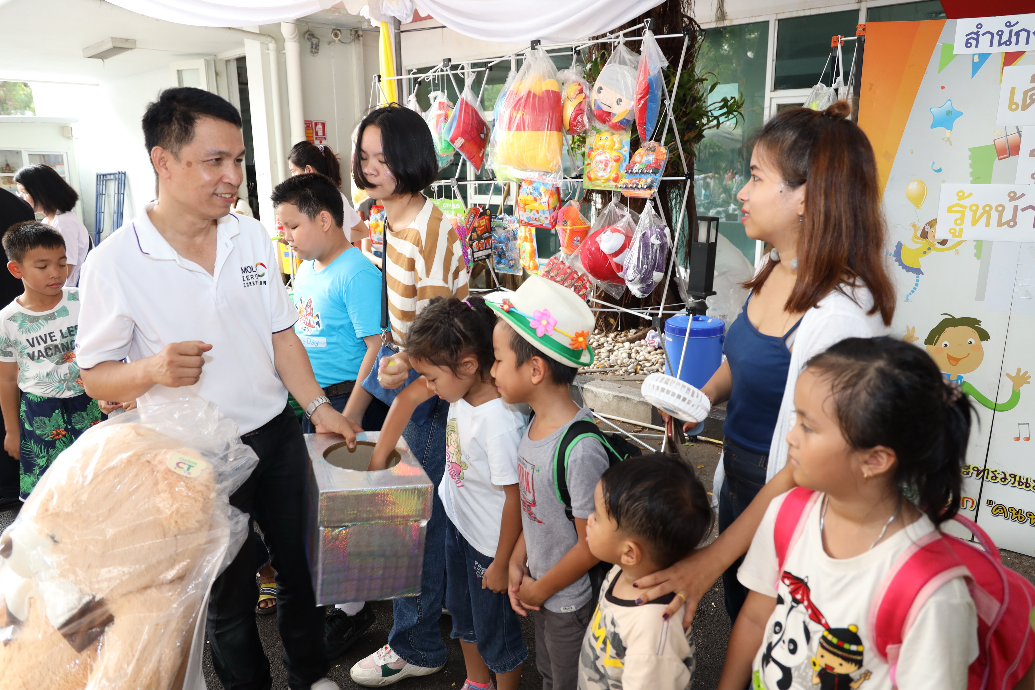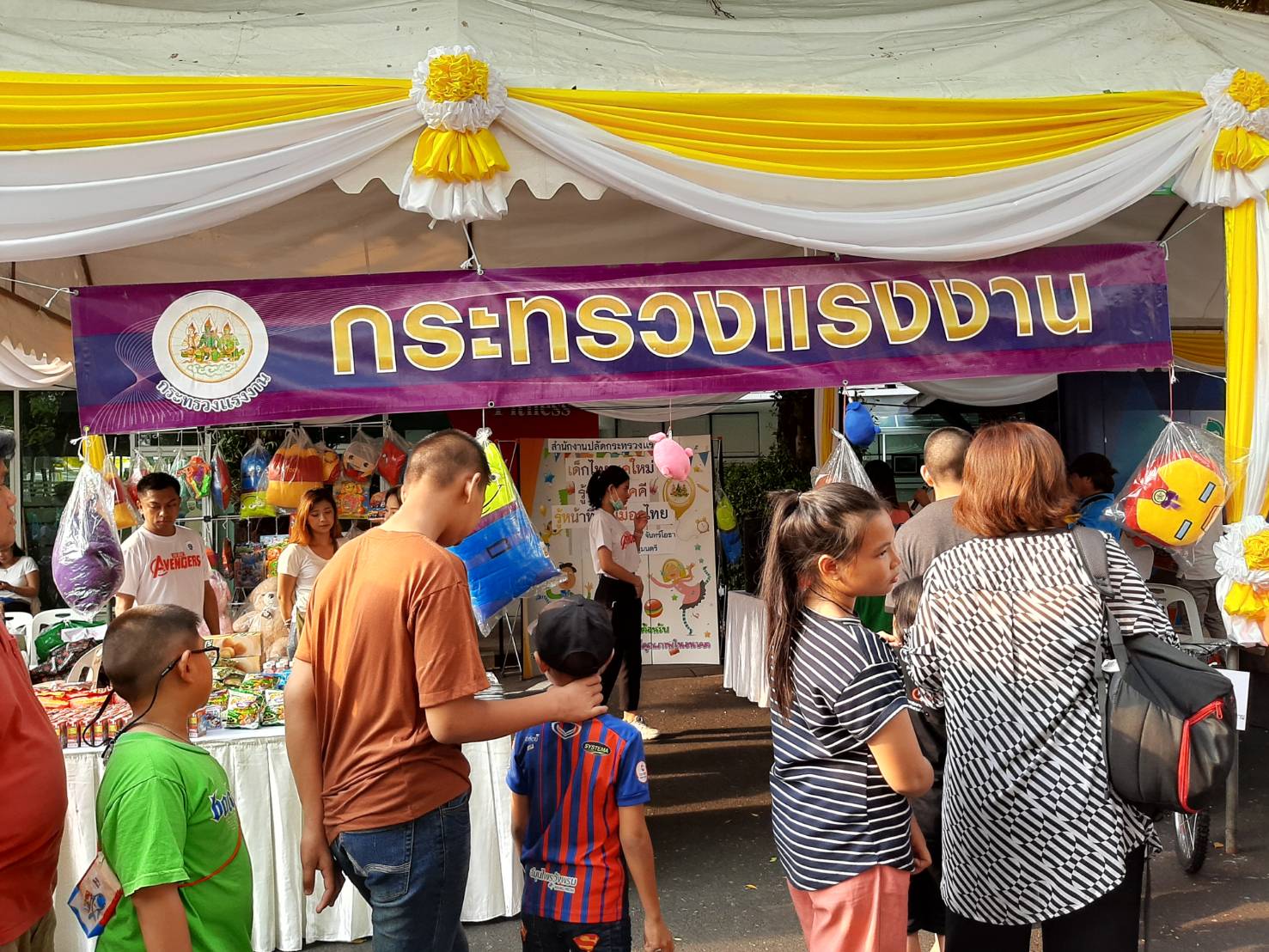 For this year’s National Children’s Day, the government assigned the Ministry of Education to host the event and jointly organize activities with public and private agencies, under the Children’s Day slogan of “Modern Thai children unite and know their duties as Thai citizens”. The Ministry of Labour organized 6 booths in front of the Office of the Vocational Education Commission, within the Ministry of Education. The booths included the Office of the Permanent Secretary of Labour, the Department of Employment, the Department of Skill Development, the Department of Labour Protection and Welfare, the Social Security Office and the Thailand Institute of Occupational Safety and Health. Activities included public relations regarding the missions of the Ministry of Labour, spin the wheel games with prizes and quizzes, with many rewards to giveaway.