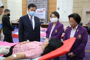 On September 1, 2020, at 09.30 hours, Secretary-General to the Ministry of Labour Mr. Suthep Chitvong, Deputy Permanent Secretary of Labour Mrs. Theanrat Nawamawat as President of the Housewives Association, Ministry of Labour, and Deputy Permanent Secretary of Labour Ms. Aumpun Thuvavit as Vice President of the Housewives Association, paid a visit to encourage blood donors in the third event for 2020. The blood donation activity allows donors to donate blood every 3 months, which promotes enough blood donation for patients nationwide. In 2020, four events are scheduled; this was the third time. The event was organized by the Ministry of Labour in collaboration with the Ministry of Labour’s Housewives Association and the National Blood Service Center, the Thai Red Cross Society, and took place at Jompol P. Pibulsongkram meeting room, 5th floor, Ministry of Labour.