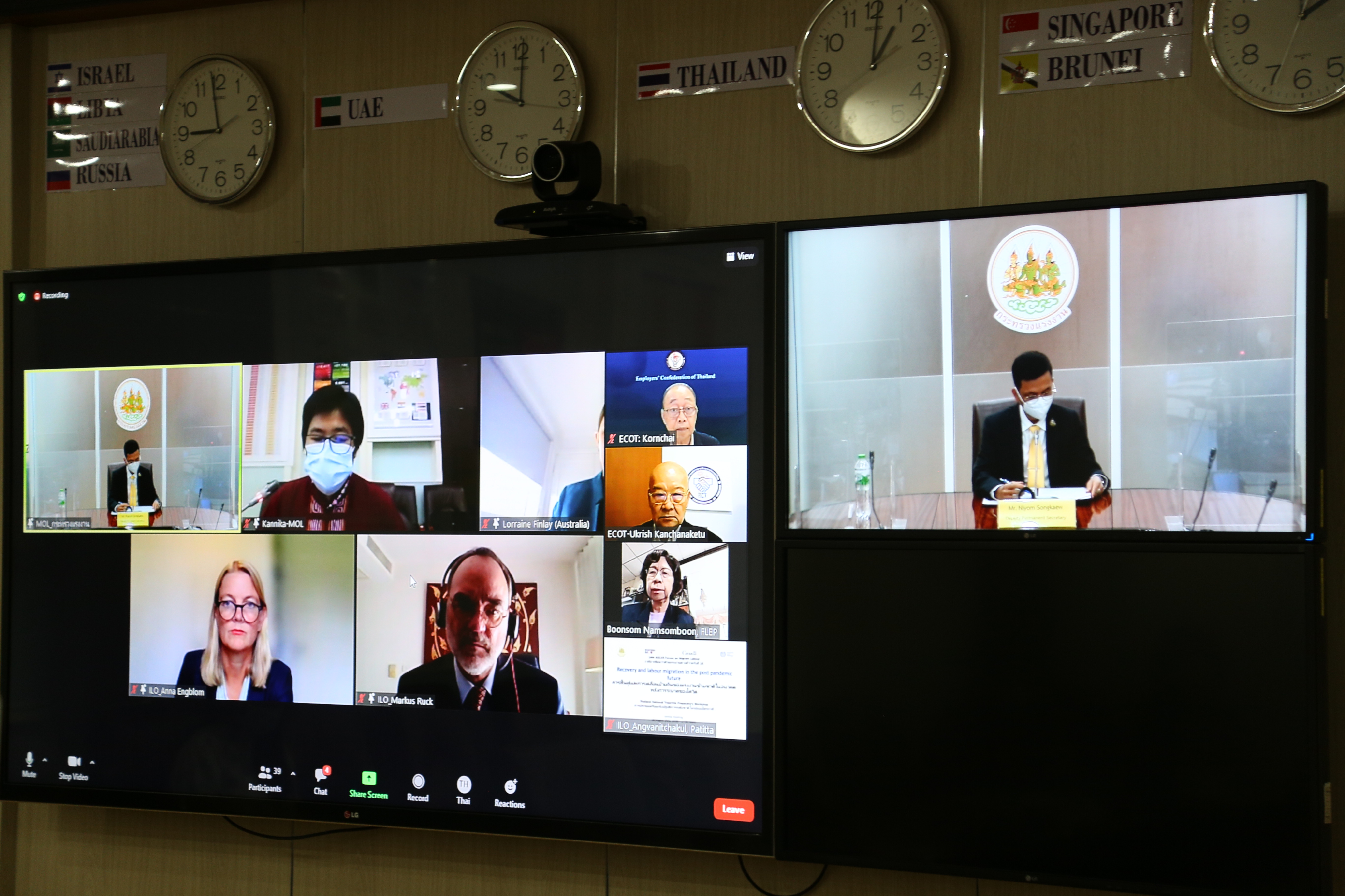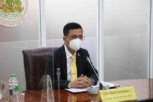 On August 26, 2021, at 13.00 hours, Deputy Permanent Secretary of Labour Mr. Niyom Songkaew presided over the opening of the meeting Trilateral National Preparatory Workshop for the 14th ASEAN Conference on Migrant Workers. The meeting took place over a video conference organized by the Ministry of Labour and the International Labour Organization. Assistant to the Permanent Secretary of Labour Ms. Pattraporn Samantarat was the moderator for agenda 6, on suggestions from the Trilateral National Preparatory Meeting.