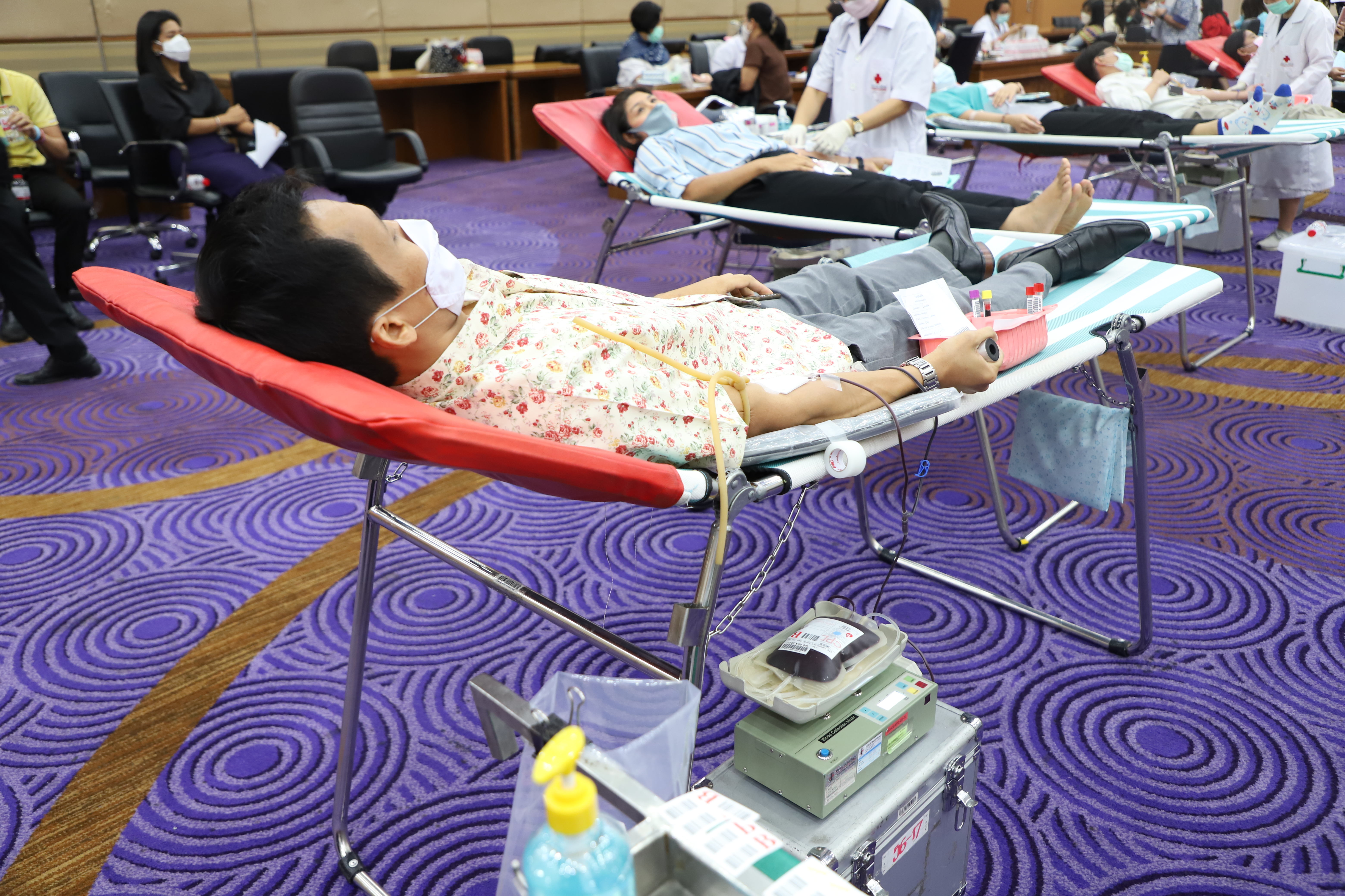On December 4, 2020, at 10.00 hours, Advisor to the Labour Minister Mrs. Thiwalrat Angkinan, Permanent Secretary of Labour Mr. Suthi Sukosol, Deputy Permanent Secretary of Labour Ms. Amphan Tuwwit as the Vice President of the Ministry of Labour’s Housewives Association, made a visit to encourage blood donors who joined the blood donation activity for royal charity, on the occasion of the late King’s birthday. They encouraged blood donors to donate blood every three months to receive enough donated blood for patients nationwide. In 2020, the blood donation was scheduled for four times, this occasion being the fourth time. The event was hosted by the Ministry of Labour in collaboration with the Housewives Association and National Blood Service Center, Thai Red Cross Society, at the Jompol P. Pibulsongkram meeting room, 5th floor, Ministry of Labour.