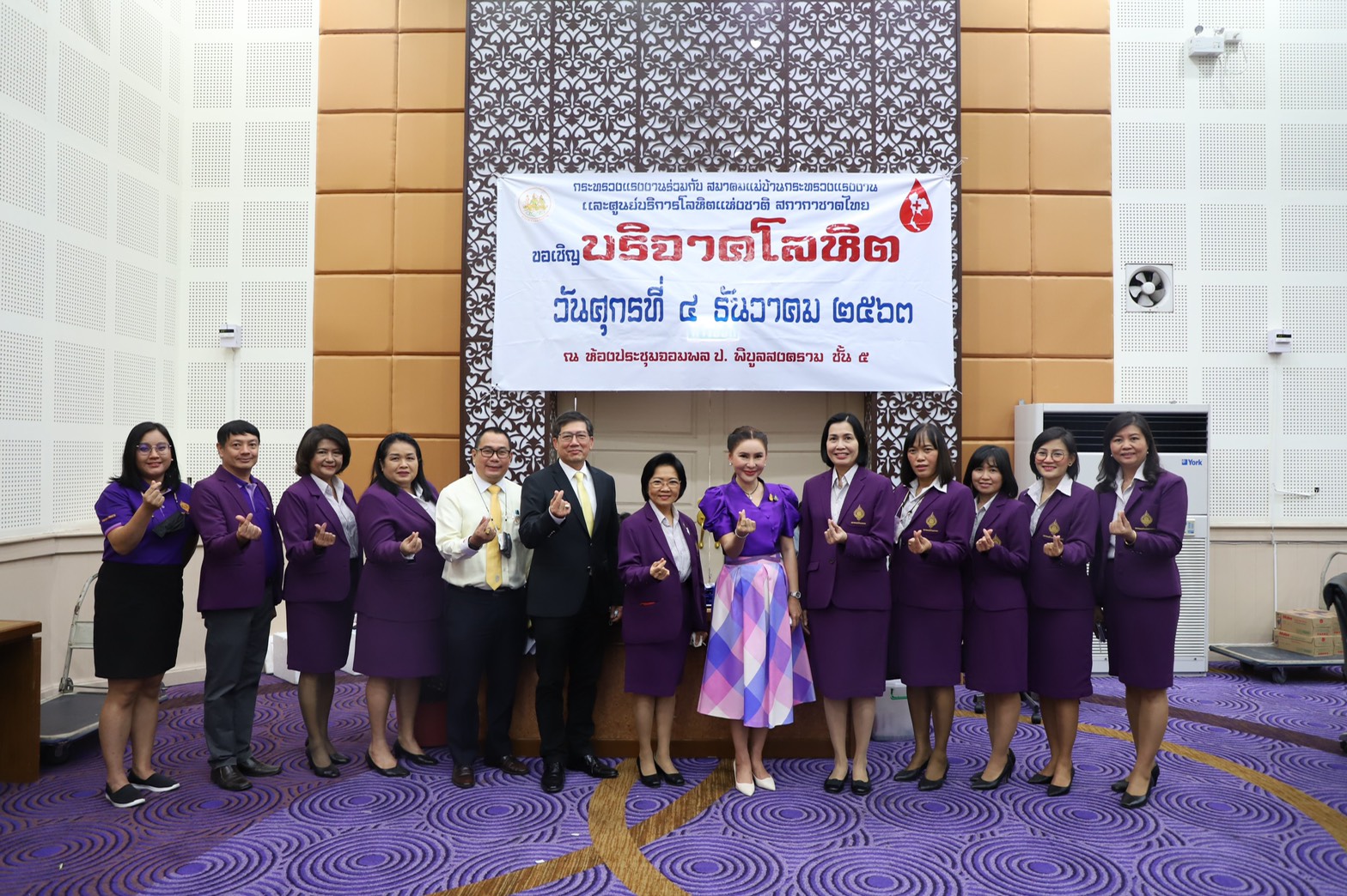 The Labour Minister’s Advisor gave words of encouragement to blood donors in the blood donation for royal charity on the occasion of the birthday of His Majesty the King Maha Bhumibol Adulyadej. She emphasized the sacrifice and working together to do good and repay the land, with heart.