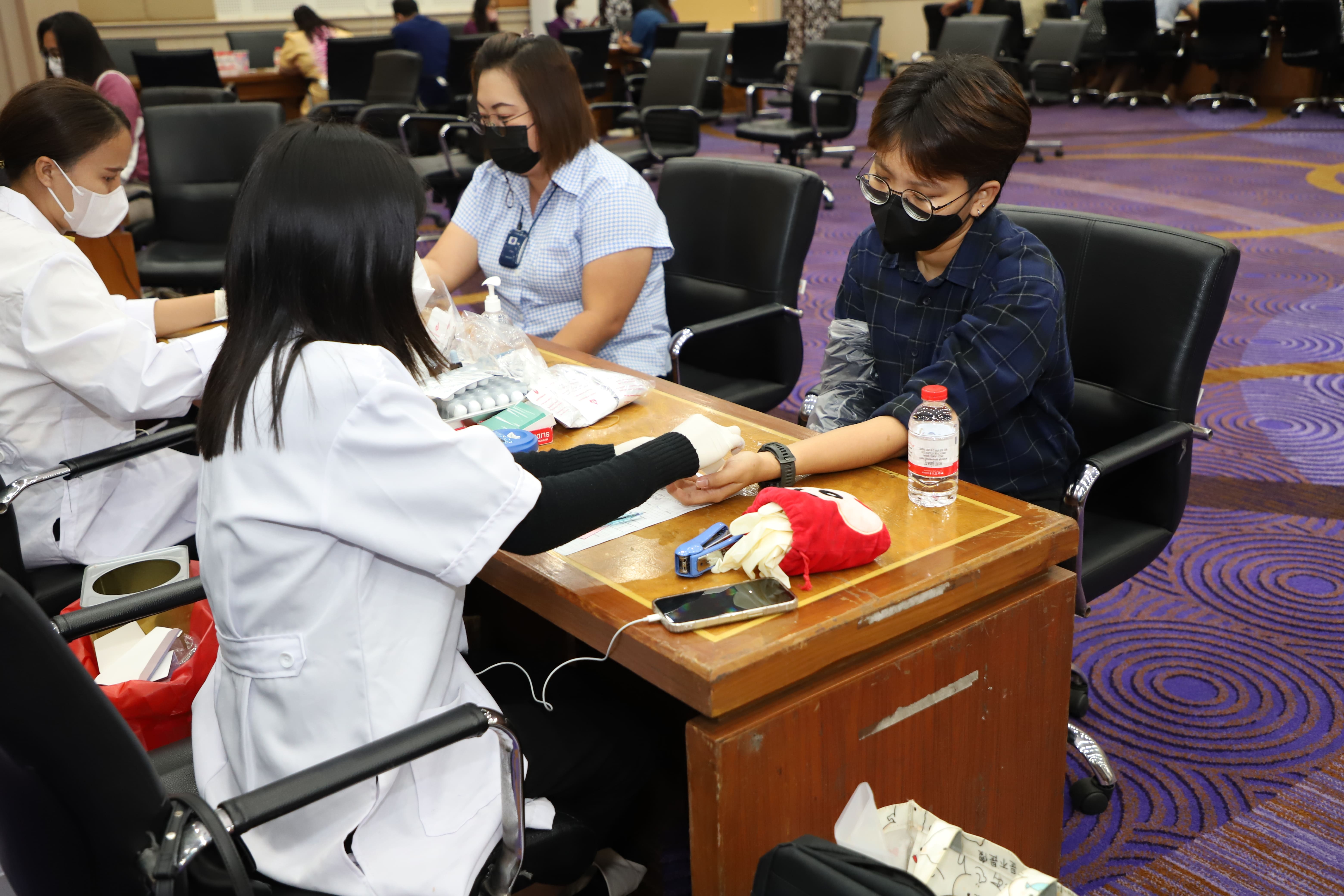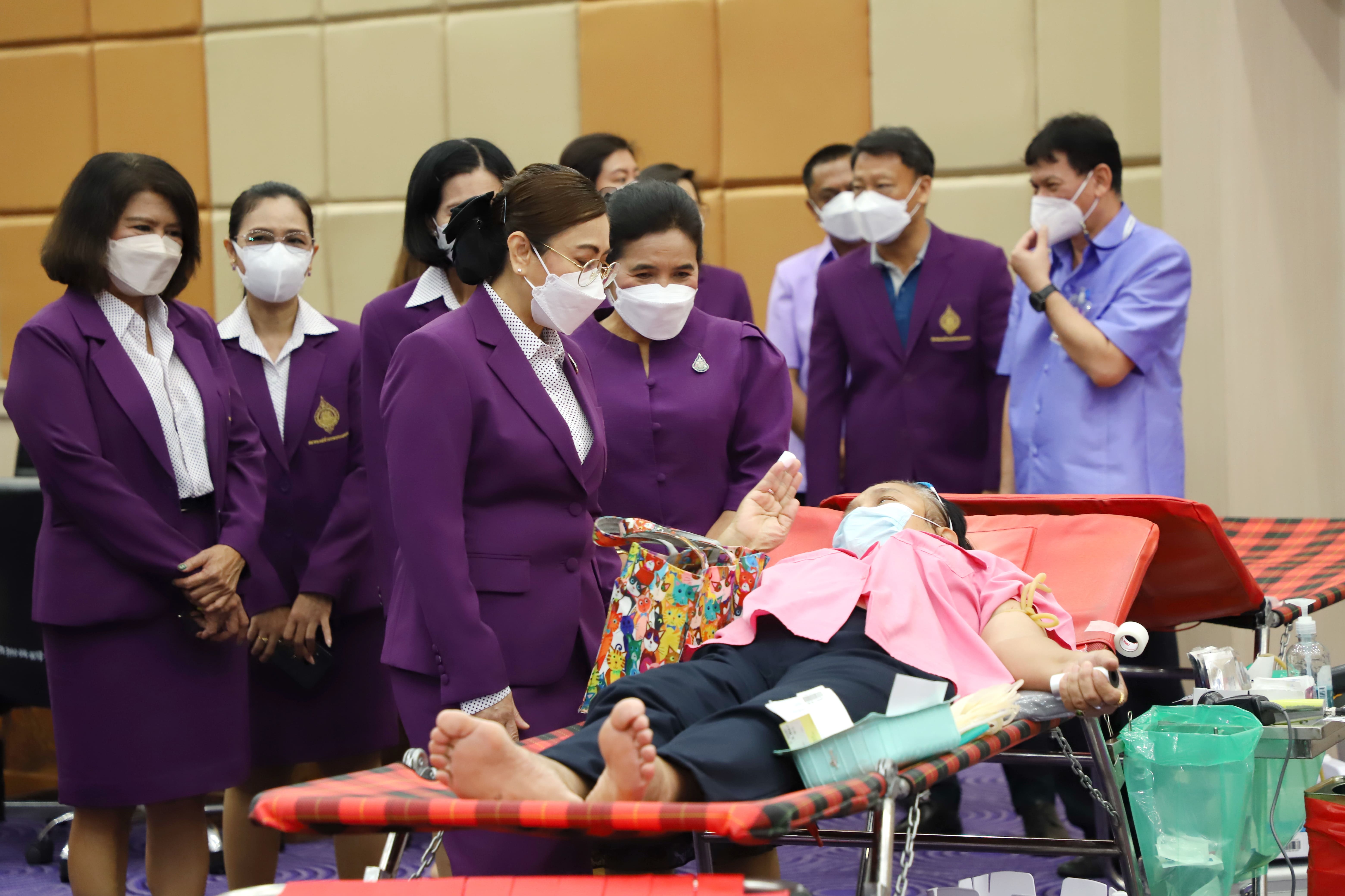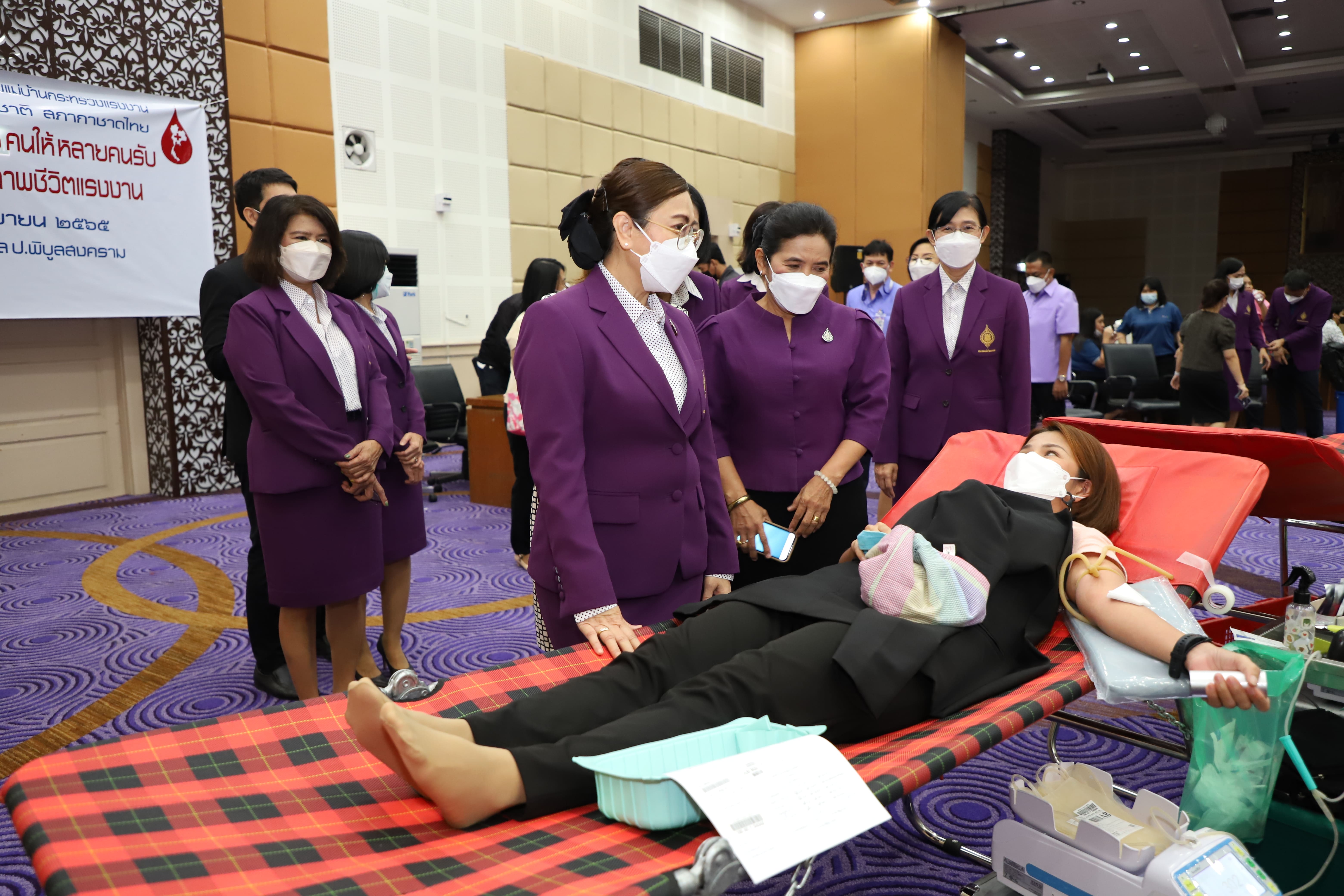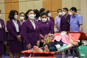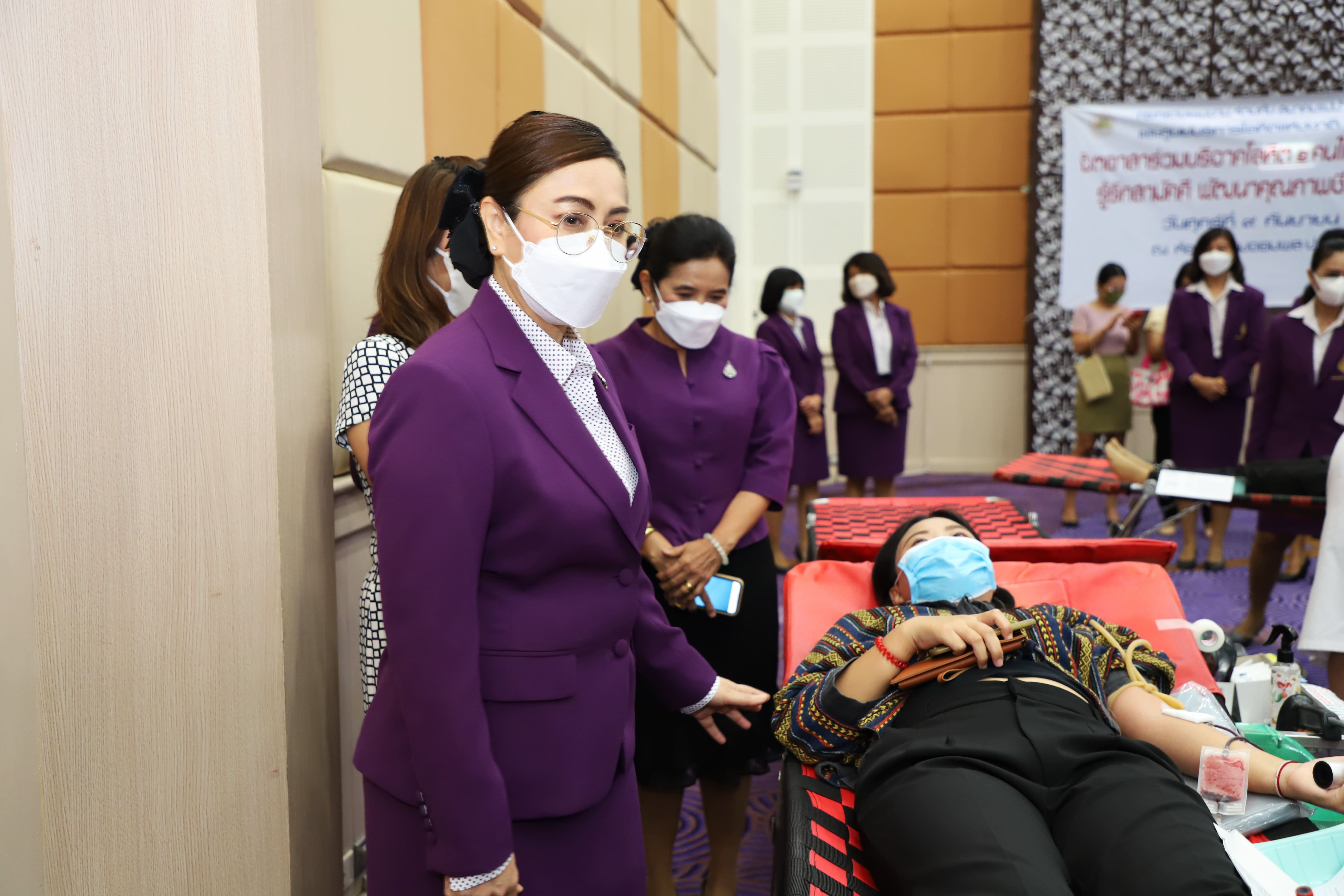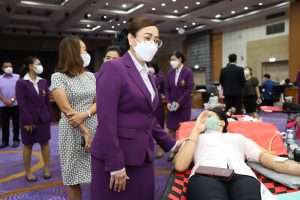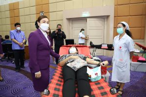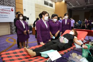 On 9 September 2022, Deputy Permanent Secretary of Labour and President of the Ministry of Labour’s Housewives Association Ms. Bubpha Rueangsud and Mrs. Sopa Kieatnircha, and Mrs. Darunee Nithithaweekul, the Ministry of Labour’s Inspector-Generals as Vice Presidents of the association, and the association’s committee, to visit and encourage blood donors. The Ministry of Labour, together with its Housewives Association and the National Blood Center, Thai Red Cross Society, joined in organizing blood donation activity, under the name of “One Blood Donors for Many Recipients, with Love and Unity, to Improve Workers’ Quality of Life.” The event encourages blood donors to donate blood regularly every three months and to provide enough blood supply for patients nationwide. The occasion took place at the Ministry of Labour’s meeting room, 5th floor, Ministry of Labour.