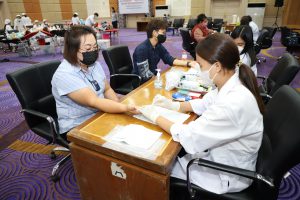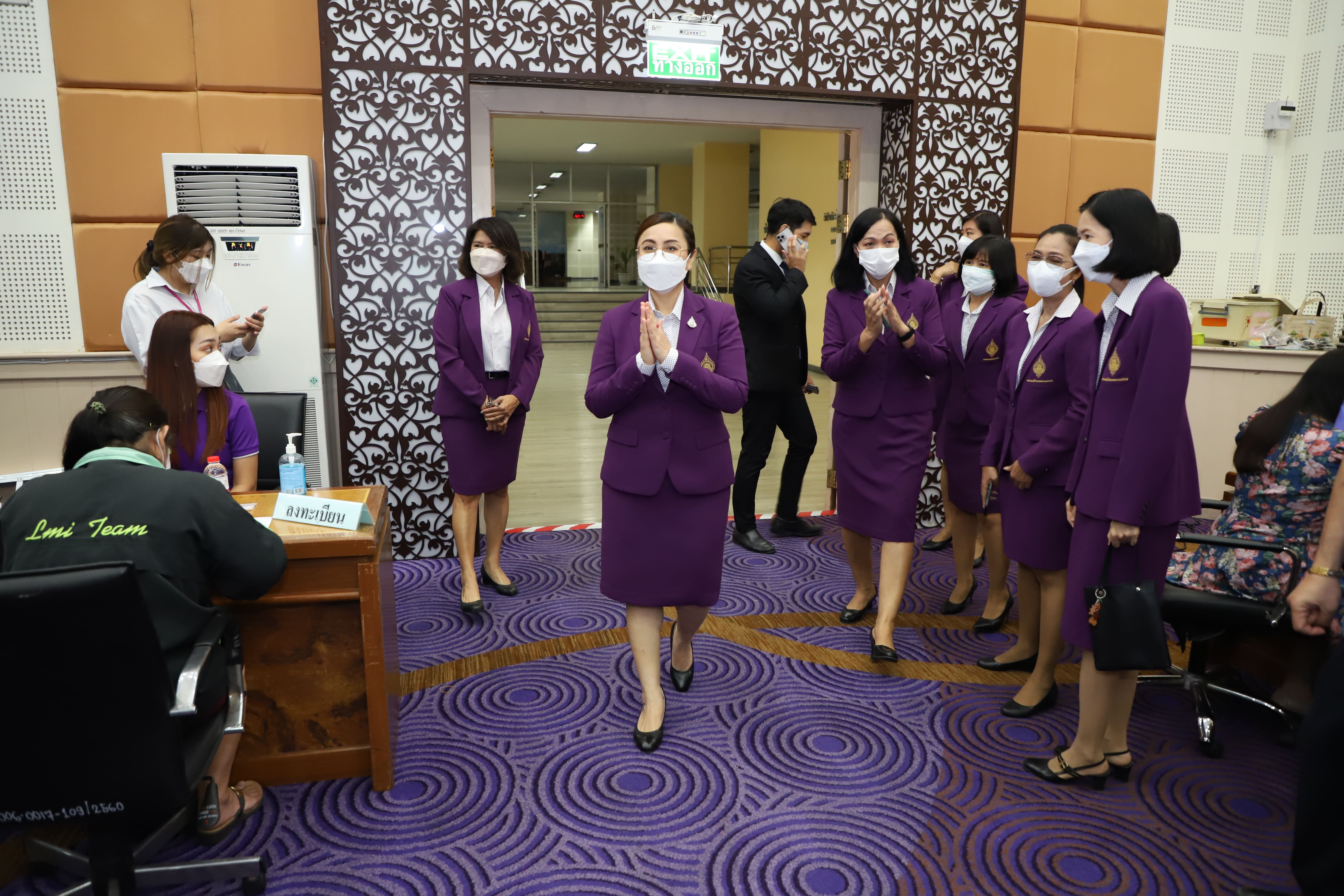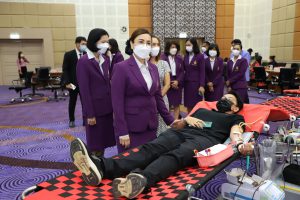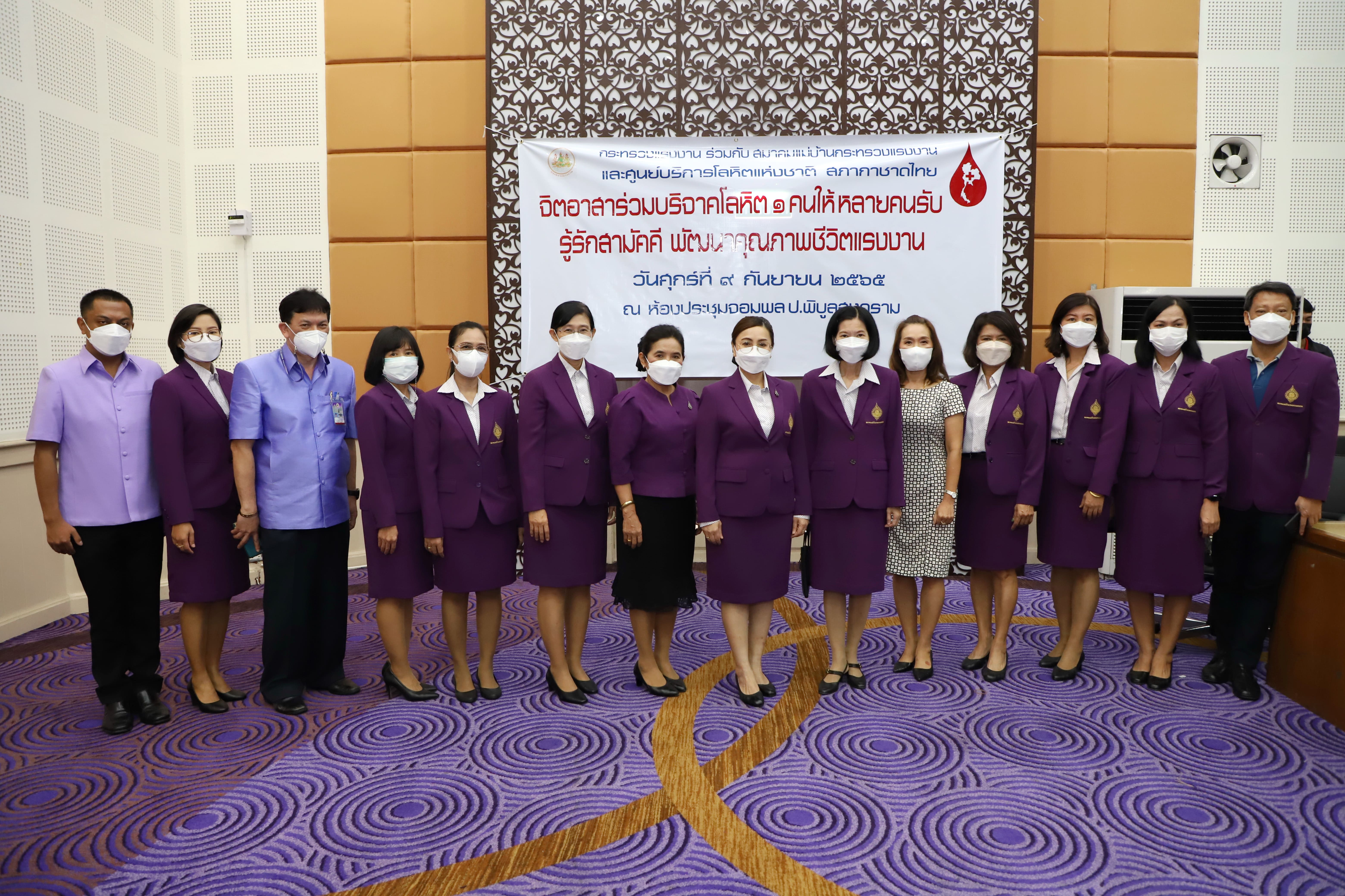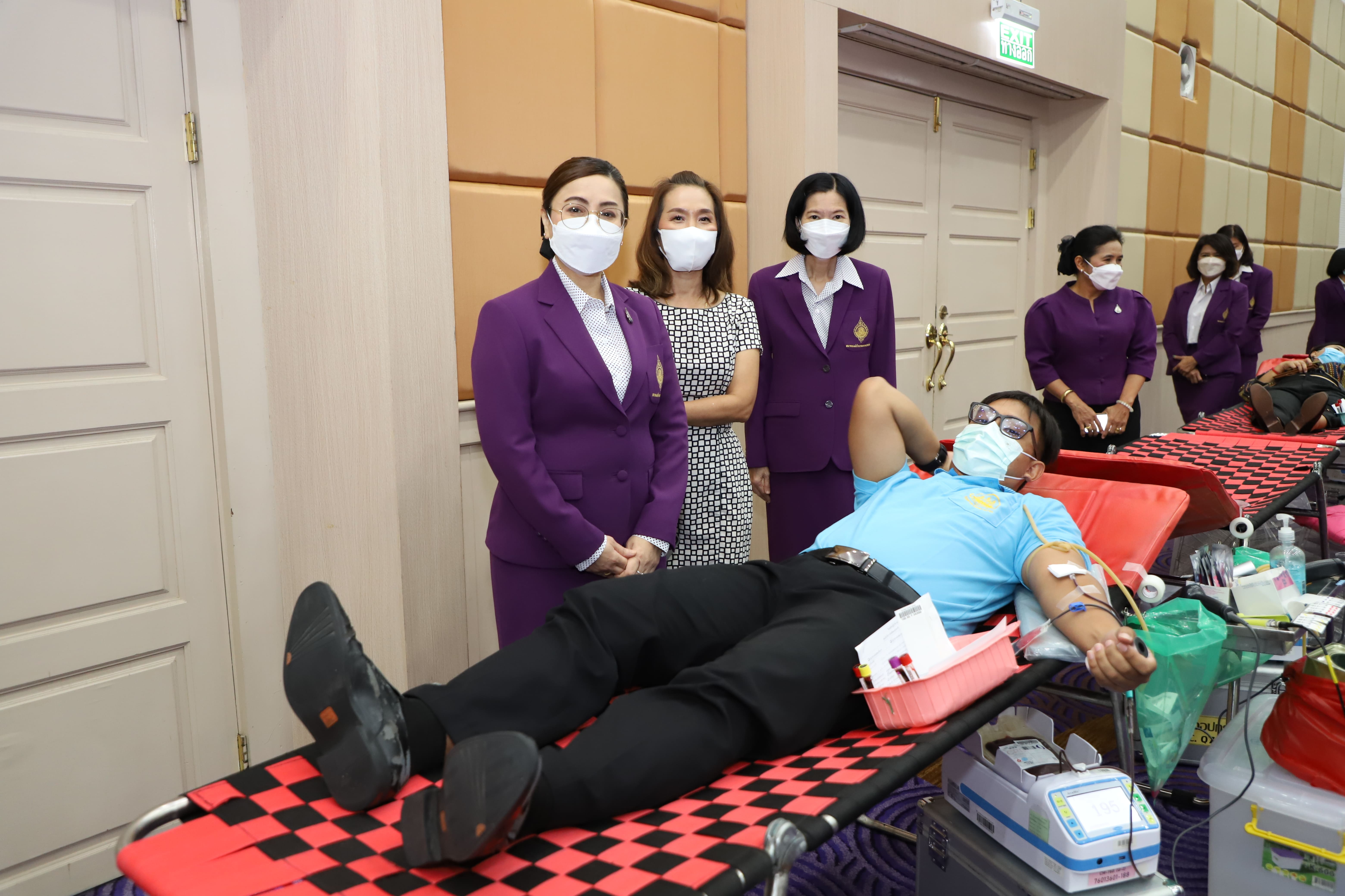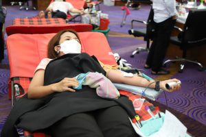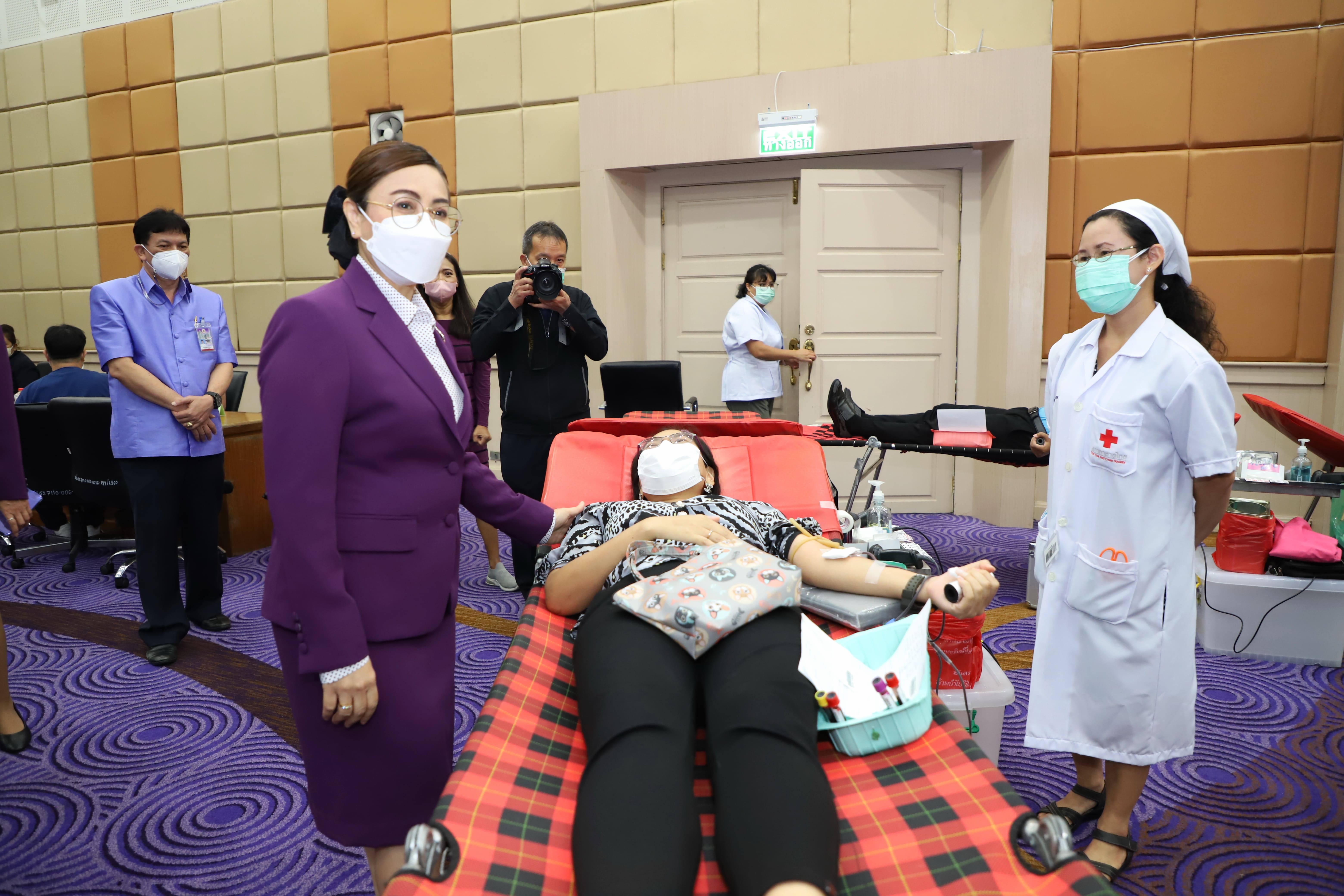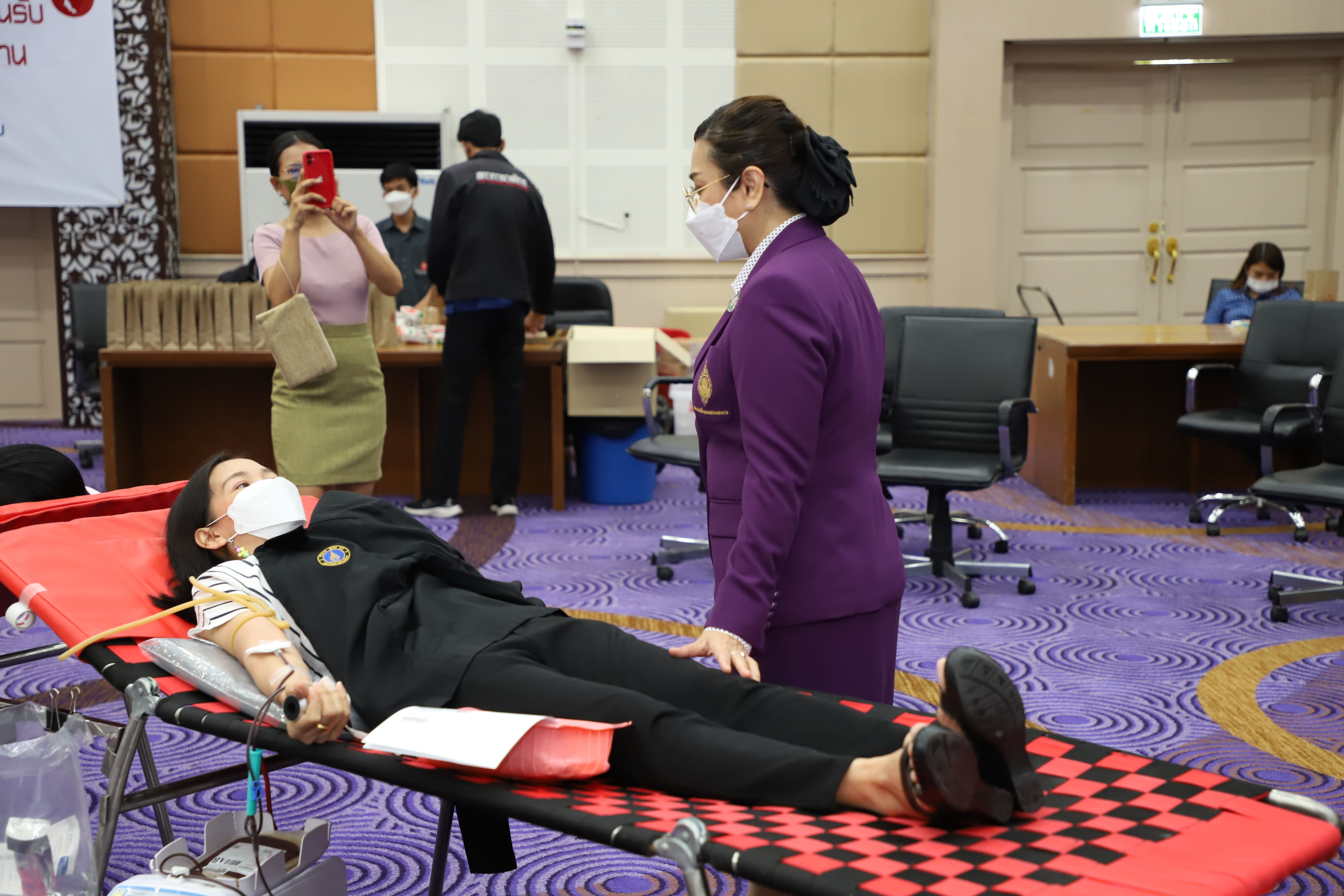 On 9 September 2022, Deputy Permanent Secretary of Labour and President of the Ministry of Labour’s Housewives Association Ms. Bubpha Rueangsud and Mrs. Sopa Kieatnircha, and Mrs. Darunee Nithithaweekul, the Ministry of Labour’s Inspector-Generals as Vice Presidents of the association, and the association’s committee, to visit and encourage blood donors. The Ministry of Labour, together with its Housewives Association and the National Blood Center, Thai Red Cross Society, joined in organizing blood donation activity, under the name of “One Blood Donors for Many Recipients, with Love and Unity, to Improve Workers’ Quality of Life.” The event encourages blood donors to donate blood regularly every three months and to provide enough blood supply for patients nationwide. The occasion took place at the Ministry of Labour’s meeting room, 5th floor, Ministry of Labour.
