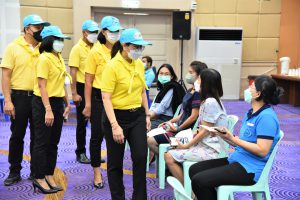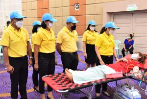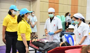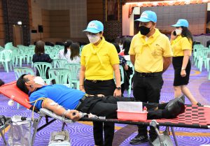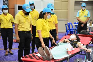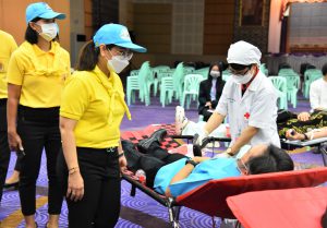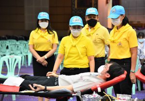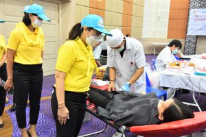 On December 9, 2022, at 10.00 hours, the Labour Minister, Mr. Suchart Chomklin, assigned the Deputy Permanent Secretary of Labour, Ms. Bubpha Rueangsud, as the president of the Ministry of Labour’s Housewives Association along with the association’s committee, to meet and encourage blood donors. The Ministry of Labour, together with its Housewives Association and the National Blood Center, Thai Red Cross Society, joined in organizing a blood donation activity, under the name of “One Blood Donors for Many Recipients, with Love and Unity, to Improve Workers’ Quality of Life” for the fourth occasion this year. The event was organized in honor of His Majesty King Bhumibol Adulyadej The Great’s Birthday, National Day, and National Father’s Day on December 5, 2022. The event also encourages blood donors to donate blood regularly every three months and to provide enough blood supply for patients nationwide. The occasion took place at the Ministry of Labour’s meeting room, 5th floor, Ministry of Labour.