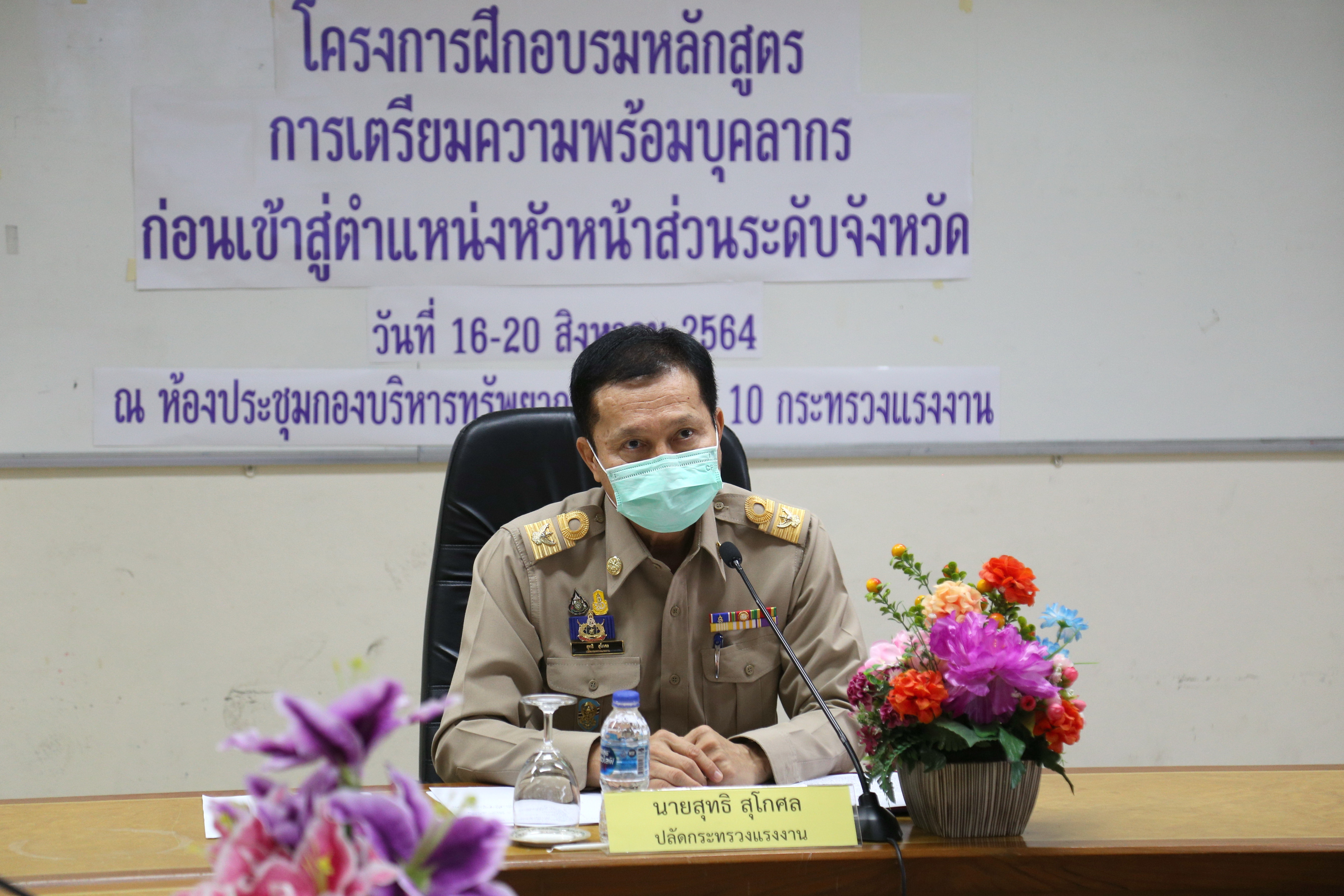 On August 16, 2021, at 08.30 hours, Permanent Secretary of Labour Mr. Suthi Sukosol chaired the training course opening on “Preparing Personnel Before Taking on Position of Provincial Head.” The occasion occurred online at the Human Resources Management Division’s meeting room, 10th floor, Ministry of Labour. He said that this course is important, as Provincial Labour Offices is a unit under the Ministry of Labour’s Office of the Permanent Secretary in provincial regions. It performs duties as a representative in studying, analyzing, preparing, and implementing the strategic plan on labour development in provincial areas and provincial groups. The course’s objective is to help build knowledge, competence, and ability to perform tasks consistent with their responsibilities and have desirable characteristics targeted for those who serve as heads of government agencies at the provincial level. Such positions are key in the Ministry of Labour’s mission to drive the strategy and develop the organization to achieve concrete success.