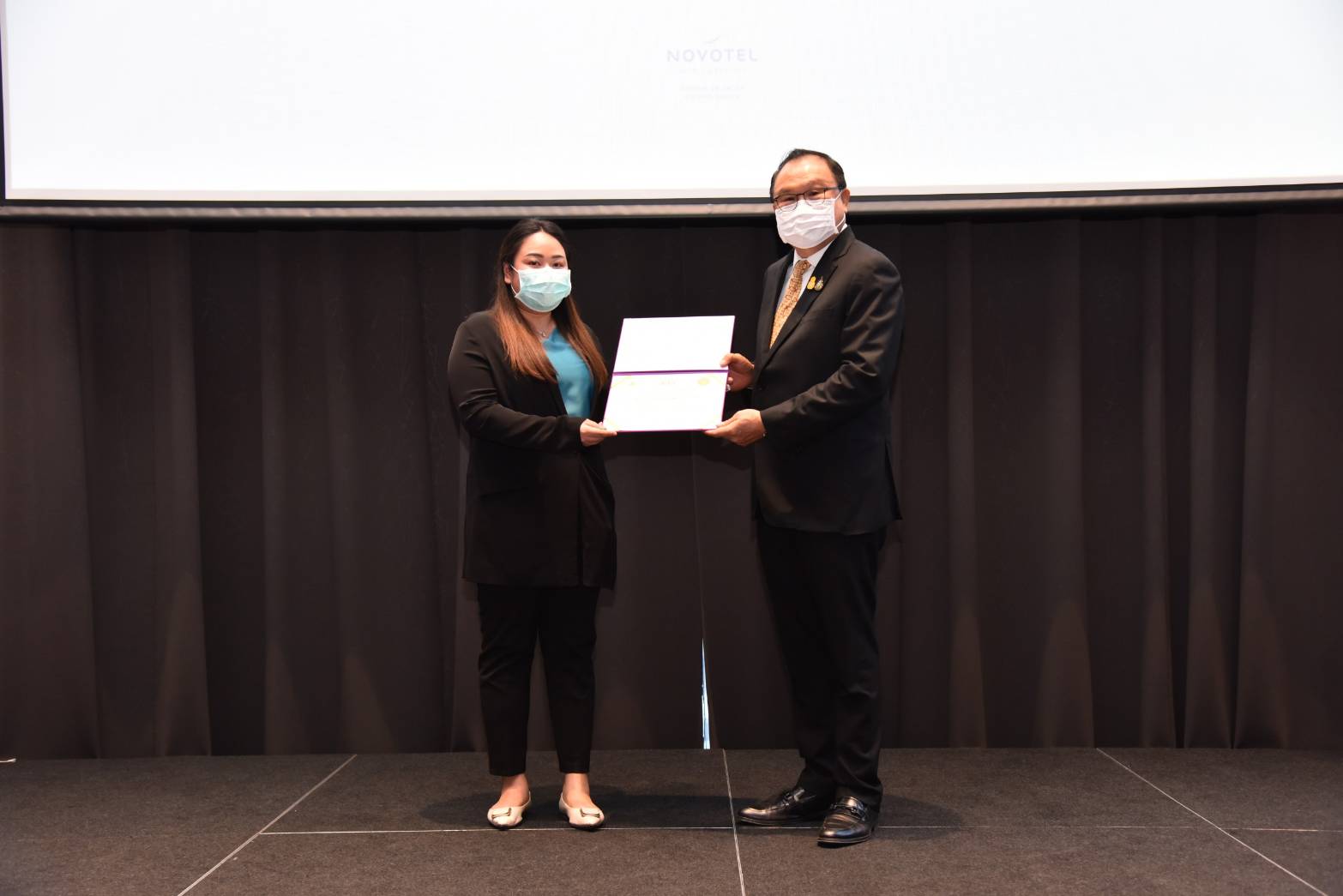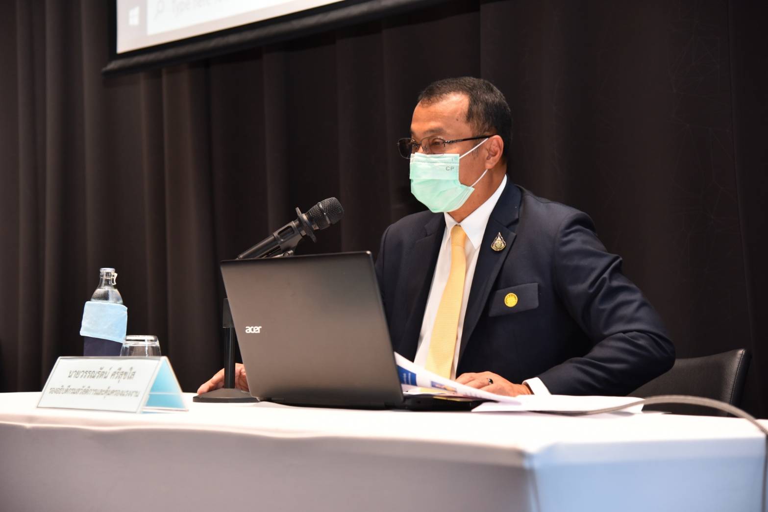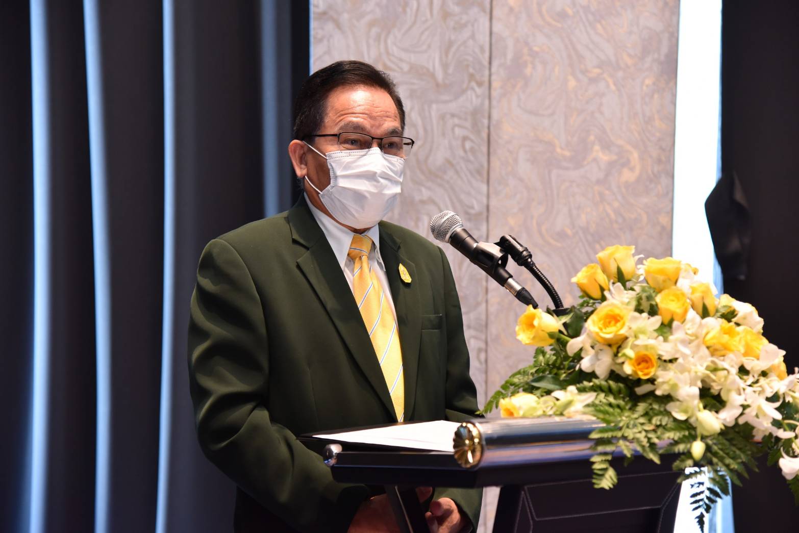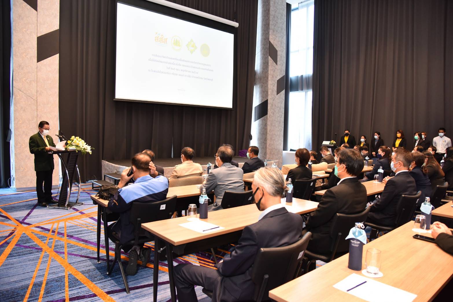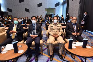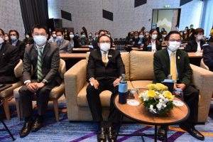 On November 25, 2021, at 13.30 hours, Assistant to the Labour Minister Mr. Surachai Chaitrakulthong presided over the opening ceremony of the forum to takeaway lessons to develop an integrated management system for sustainable development and to present an award for model establishments. The occasion took place at the Novotel Sriracha and Koh Sichang Marina Bay Hotel, Sriracha District, Chonburi Province. Mr. Thapabutr Chomsevee, President of the Association for Leaders of Change for Labour Development, Mr. Arthit Ismo, Executive Chairman of the “create a wellness organization model to enhance the quality of life of workers in health and safety towards decent work” project, Mr. Pongsak Thongratana, Director of the Thai Health Promotion Foundation and Assistant Professor Dr. Sakchai Setanawat from Burapha University also participated in the occasion. Mr. Surachai congratulated the executives of establishments that were selected as model organizations in wellness to enhance the quality of life of workers in health and safety towards decent work. As the name of the project suggests, the Ministry of Labour intends to raise standards in the development of the quality of life for workers to international standards. Improving the quality of the workers’ lives will strengthen the potential of workers and increase the economy’s competitiveness for a stable, prosperous, and sustainable society. The Ministry of Labour, guided by the policies of Labour Minister Mr. Suchart Chomklin, emphasizes the improvement of workers’ quality of life, including employers and employees. Especially in the time of the COVID-19 crisis, the Ministry of Labour has mobilized all forces to integrate with various agencies, including the public and private sectors, in preventing and helping workers to be free from diseases and safe so that they can work in the establishment to continue to drive the business and develop the nation’s economy further.