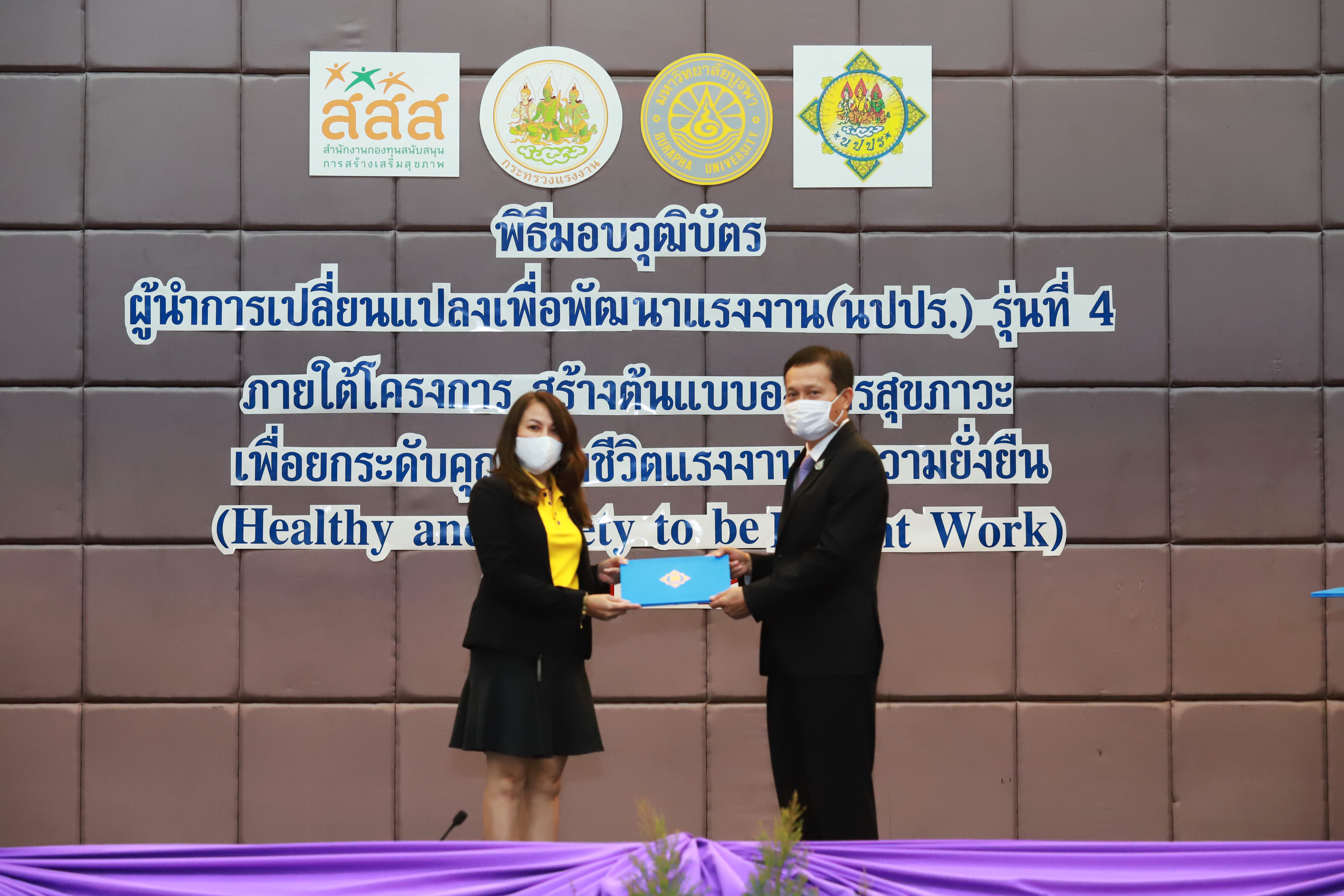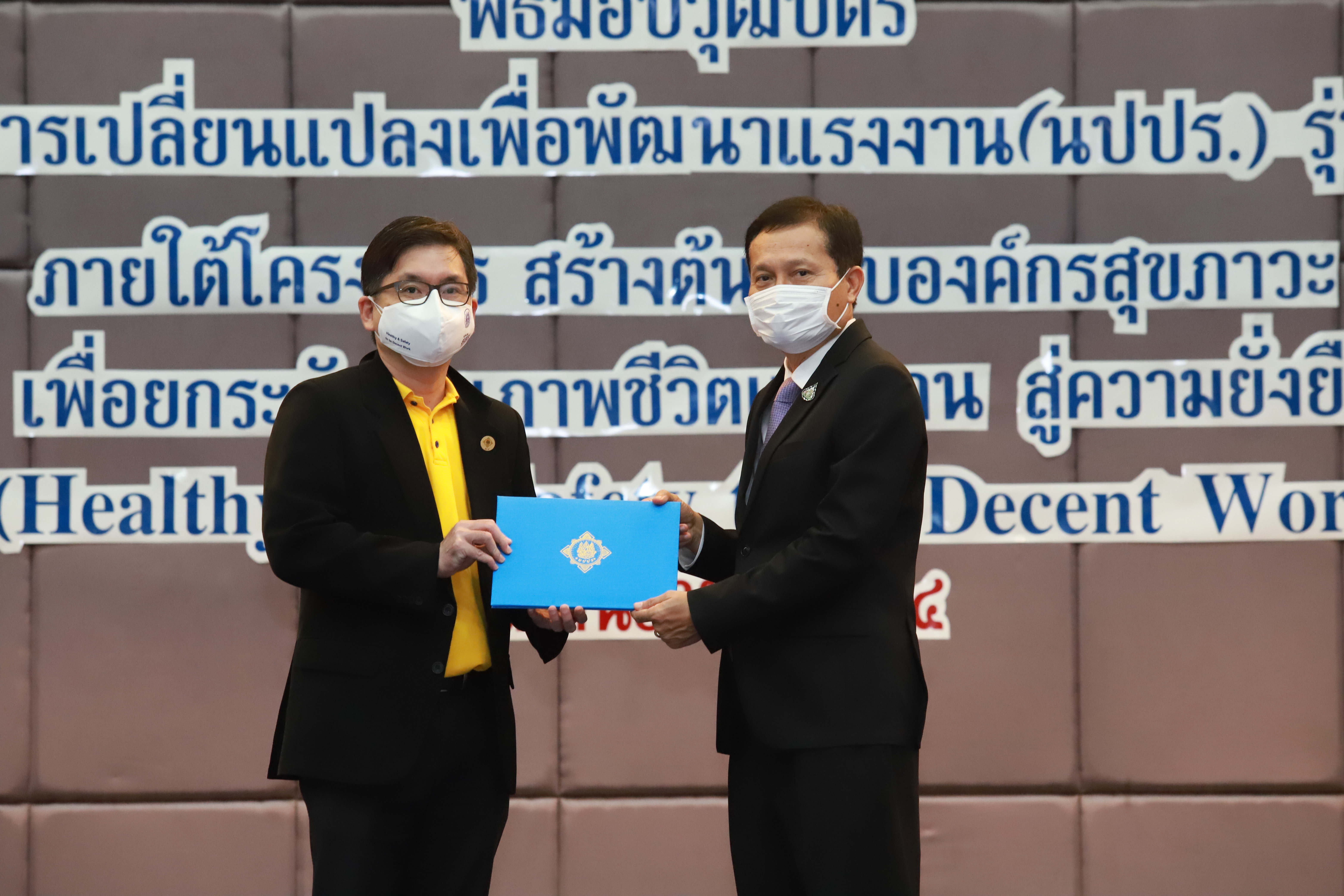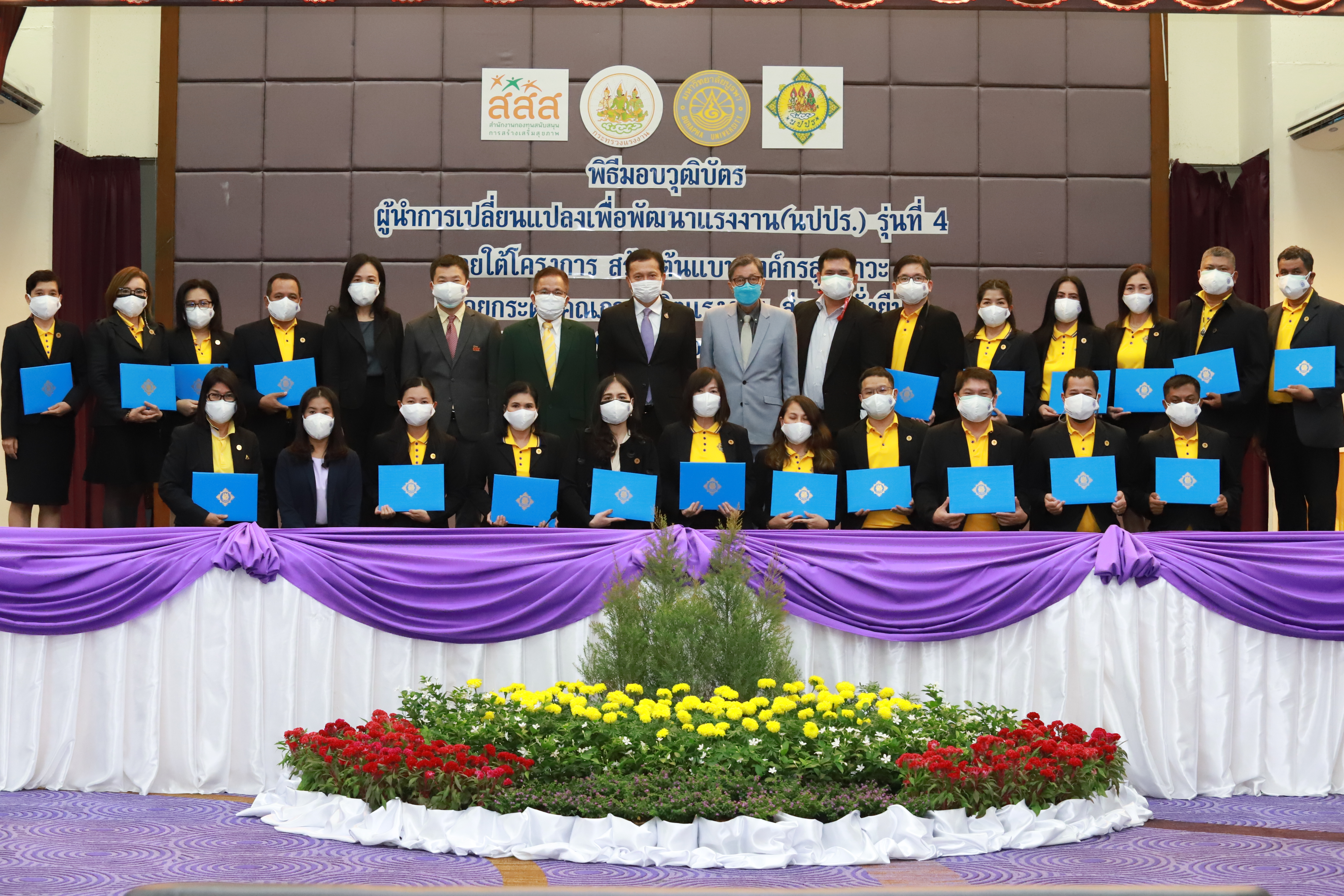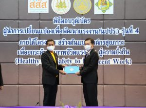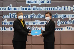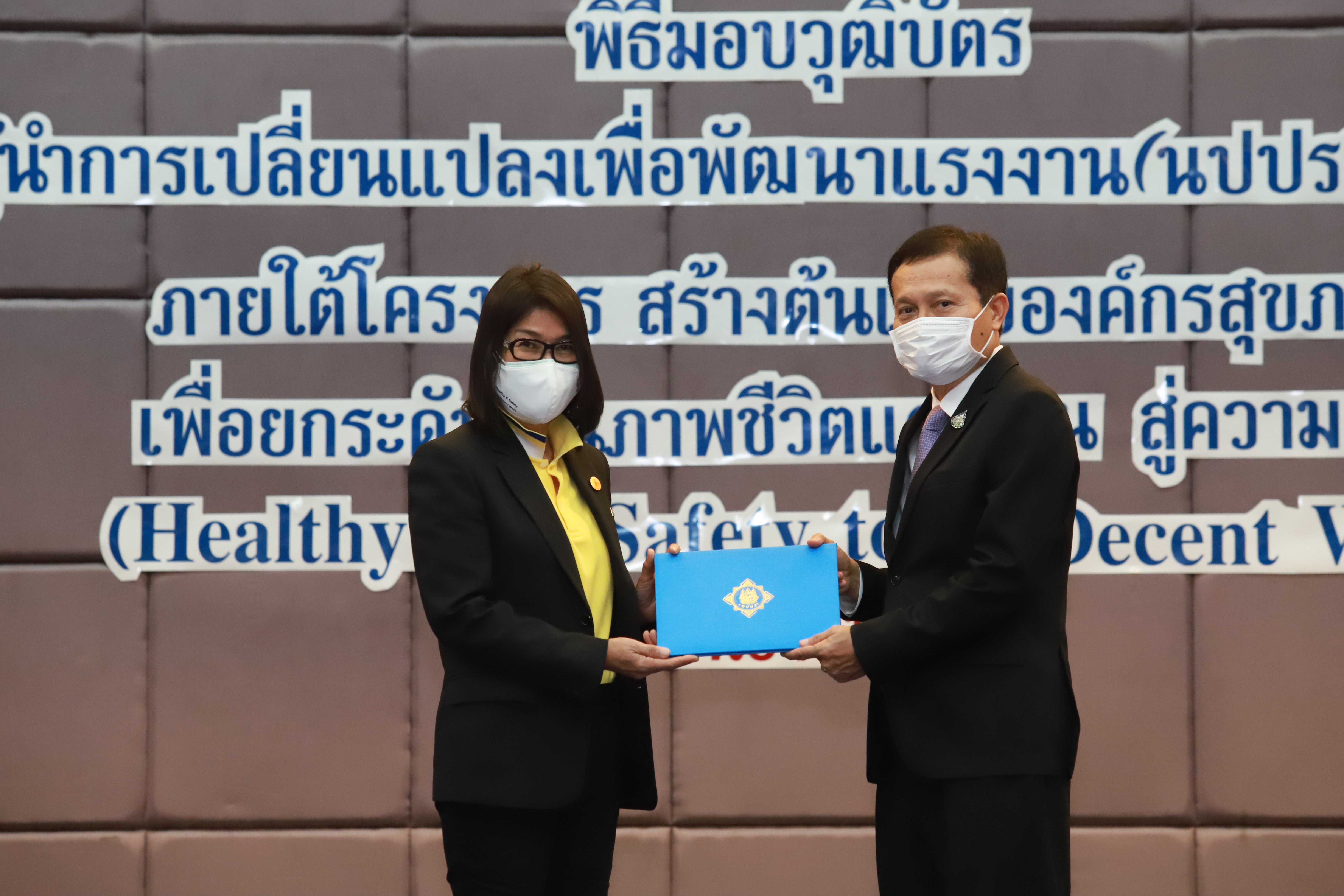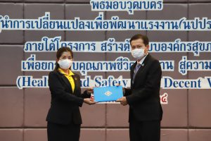 On September 23, 2021, Permanent Secretary of Labour Mr. Suthi Sukosol presided over the course certificate presentation ceremony for the “Leaders of Change for Labour Development, Class 4” at the Jompol P. Pibulsongkram meeting room, 5th floor, Ministry of Labour. Mr. Thapabutr Chomsevee, President of the Association for Leaders of Change for Labour Development, Mr. Arthit Ismo, Project Executive for the “Healthy and Safety to be Decent Work,” also participated in this event. Mr. Suthi said that he would like to congratulate those who have passed the course on “Leaders of Change for Labour Development, Class 4” under the “Healthy and Safety to be Decent Work” project which received the certificates today. The government attaches great importance to laying the foundation of the nation. A 20-year national strategy has been set as the direction of work. The Ministry of Labour’s main mission must be consistent with the changing situation as well. To drive such strategies, a visionary leader is essential. It also involves cooperation between related network partners. The Leaders of Change for Labour Development, Class 4, has participants from the government, the private sector, employers, employees, and academics. Therefore, it is suitable for a situation where the Ministry emphasizes co-thinking following bilateral, tripartite, and multilateral systems. These are important principles of modern administration that require leaders with new paradigms, understanding people, and understanding the world situation comprehensively. Leaders must encompass new knowledge and skills needed to work in a complex workforce and rapidly changing environment, including new leadership ready to lead the change. It requires a Change Agent who dares to think and dares to act to drive the development strategy to keep up with the changes and lead to the organization’s success to create valuable jobs, workers, good quality of life, and happiness.