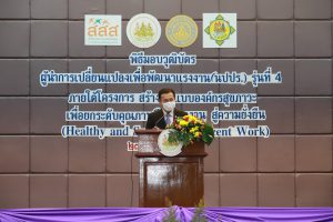 “The Ministry of Labour thanks the Health Promotion Foundation (ThaiHealth), the Association of Leaders of Change for Labour Development, Burapha University, Kalayanamit, and the faculty of lecturers and researchers from Burapha University who organized the training to develop leaders of change for the development of workers. The training is an important force in improving the quality of life for workers. It is considered a network partner at the cerebral level that will promote the creation of health in the organization for sustainable development in the future. We would like to thank all participants for their commitment to creating knowledge and understanding and exchanging knowledge together. Let’s help build concrete and innovative model wellness organization of learning that is very beneficial,” concluded Mr. Suthi.