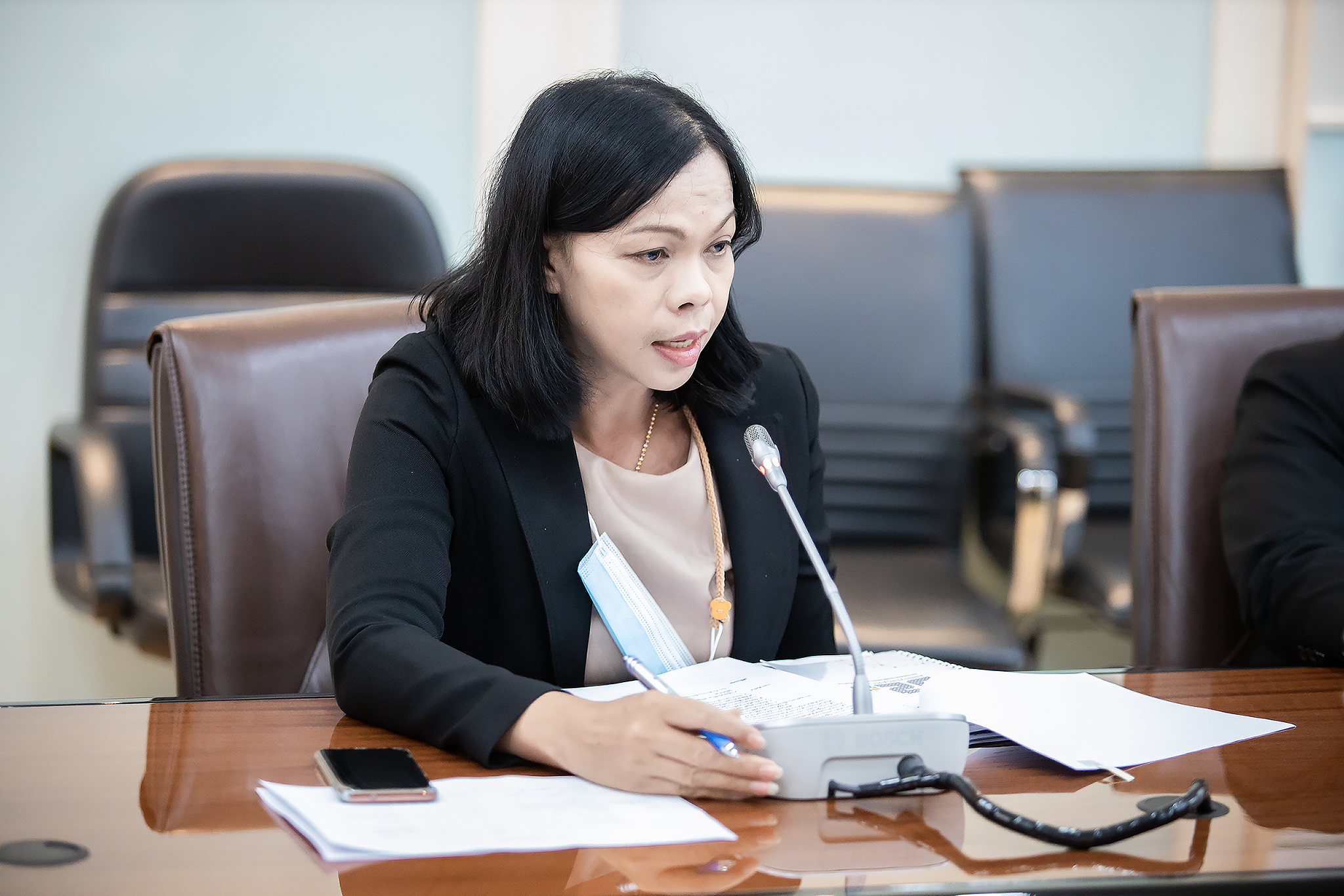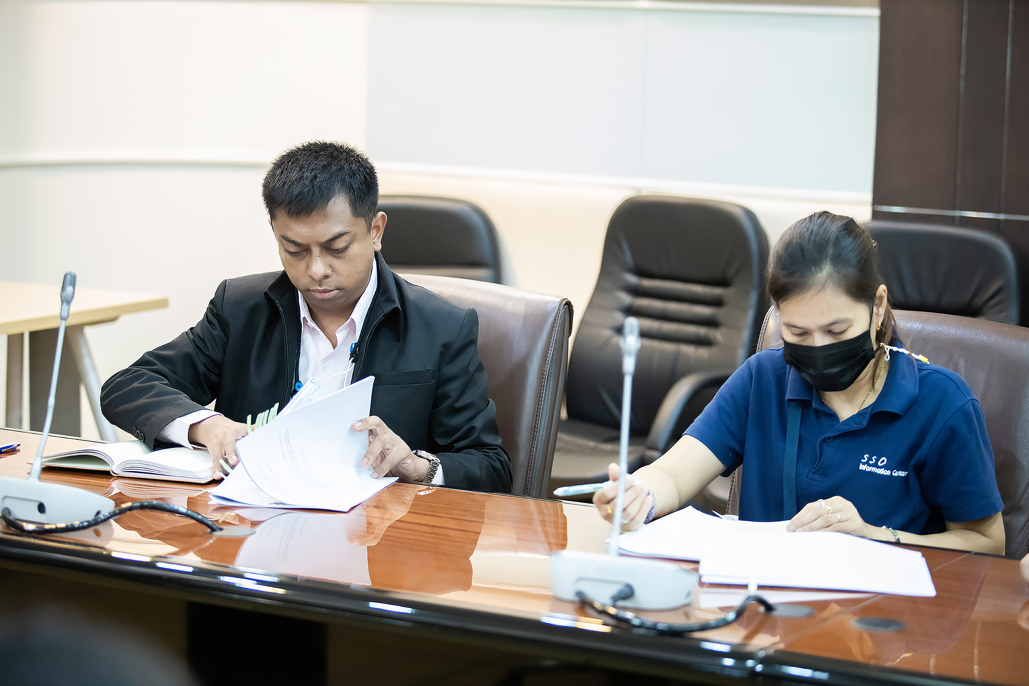Today (November 24, 2020) at 10.30 hours, Labour Minister Mr. Suchart Chomklin assigned Advisory Board Member to the Labour Minister Mrs. Theanrat Nawamawat to preside over the Ministry of Labour’s Public Relations Working Group meeting No. 1/2020. Departments under the Ministry of Labour also attended the meeting at the Sangsingkaew meeting room, 5th floor, Ministry of Labour. The meeting considered the guidelines for the news publicity of the Ministry of Labour.