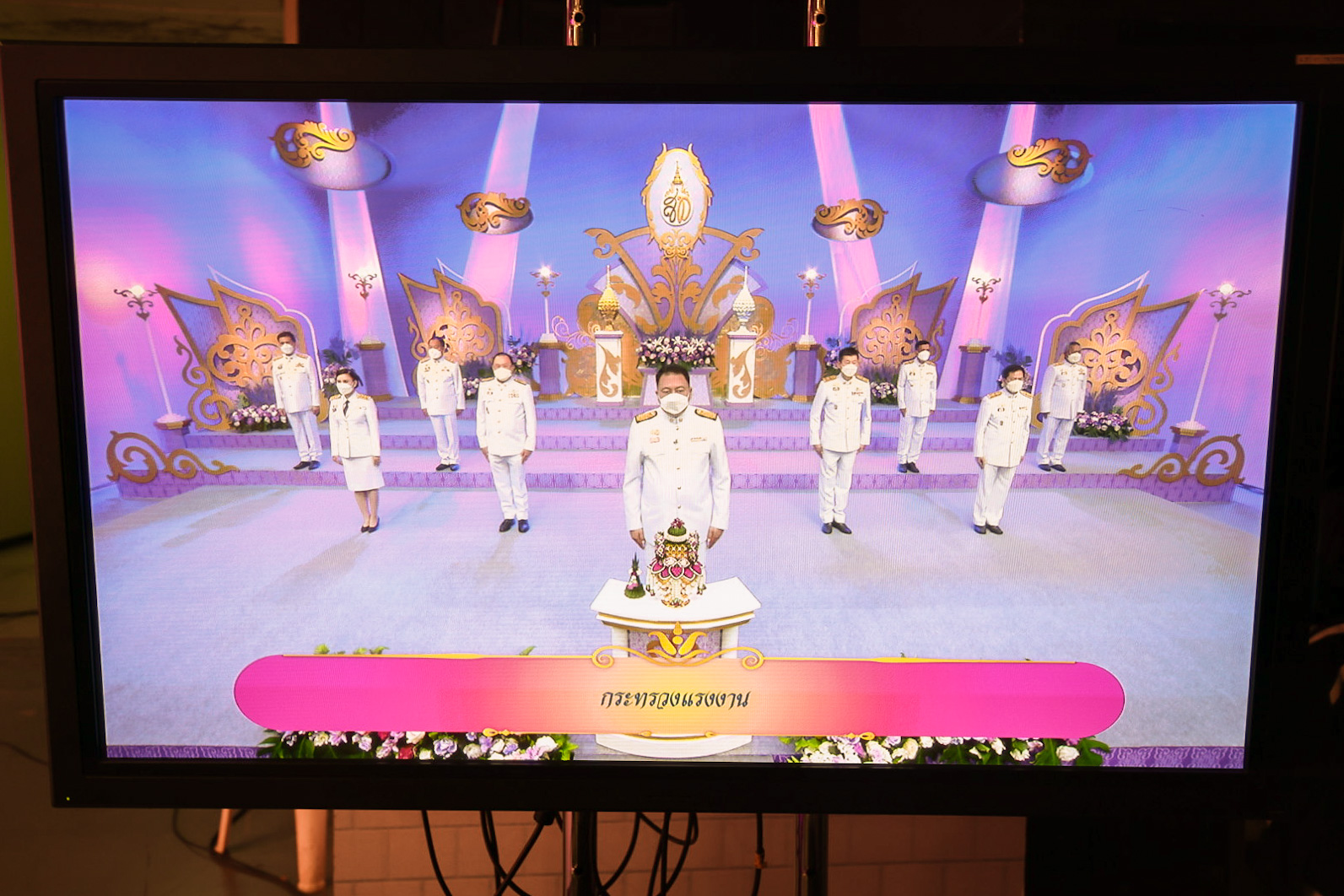 Today (May 18, 2022), at 13.00 hours, the Labour Minister, Mr. Suchart Chomklin, and the Ministry of Labour’s executives joined a recording of blessings for Her Majesty Queen Suthida Bajrasudhabimalalakshana on the occasion of Her Majesty’s 44th Birthday Anniversary, on June 3, 2022. The occasion took place at the National Broadcasting Services of Thailand.