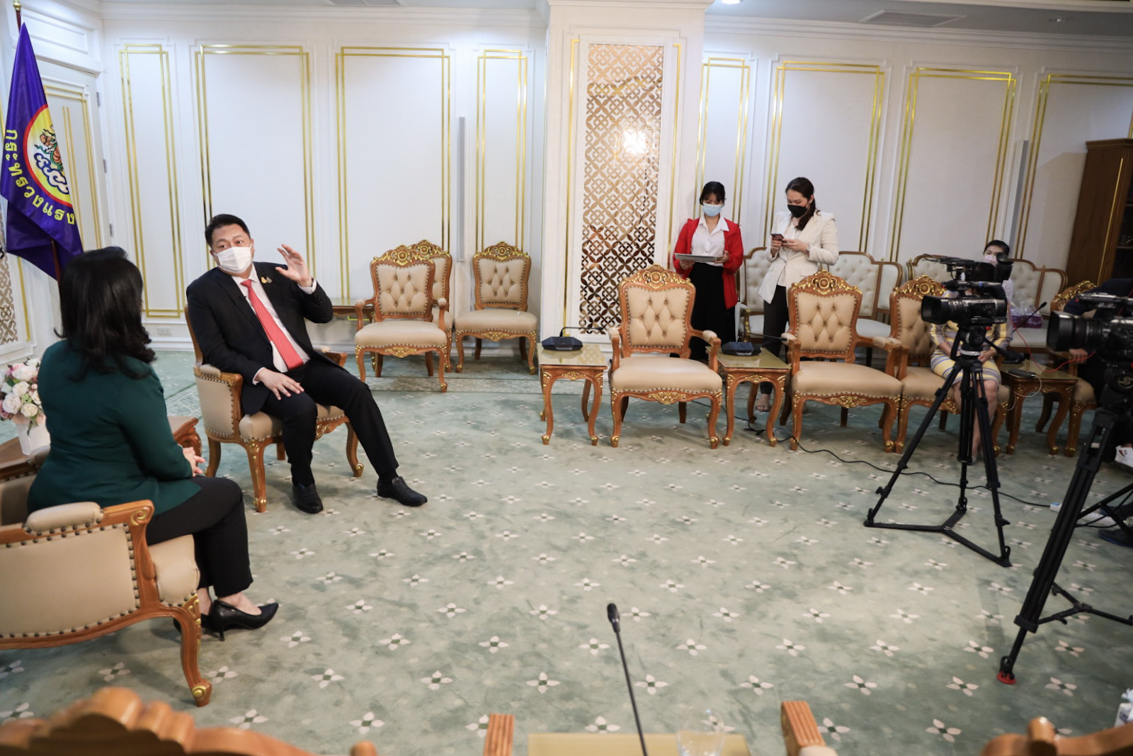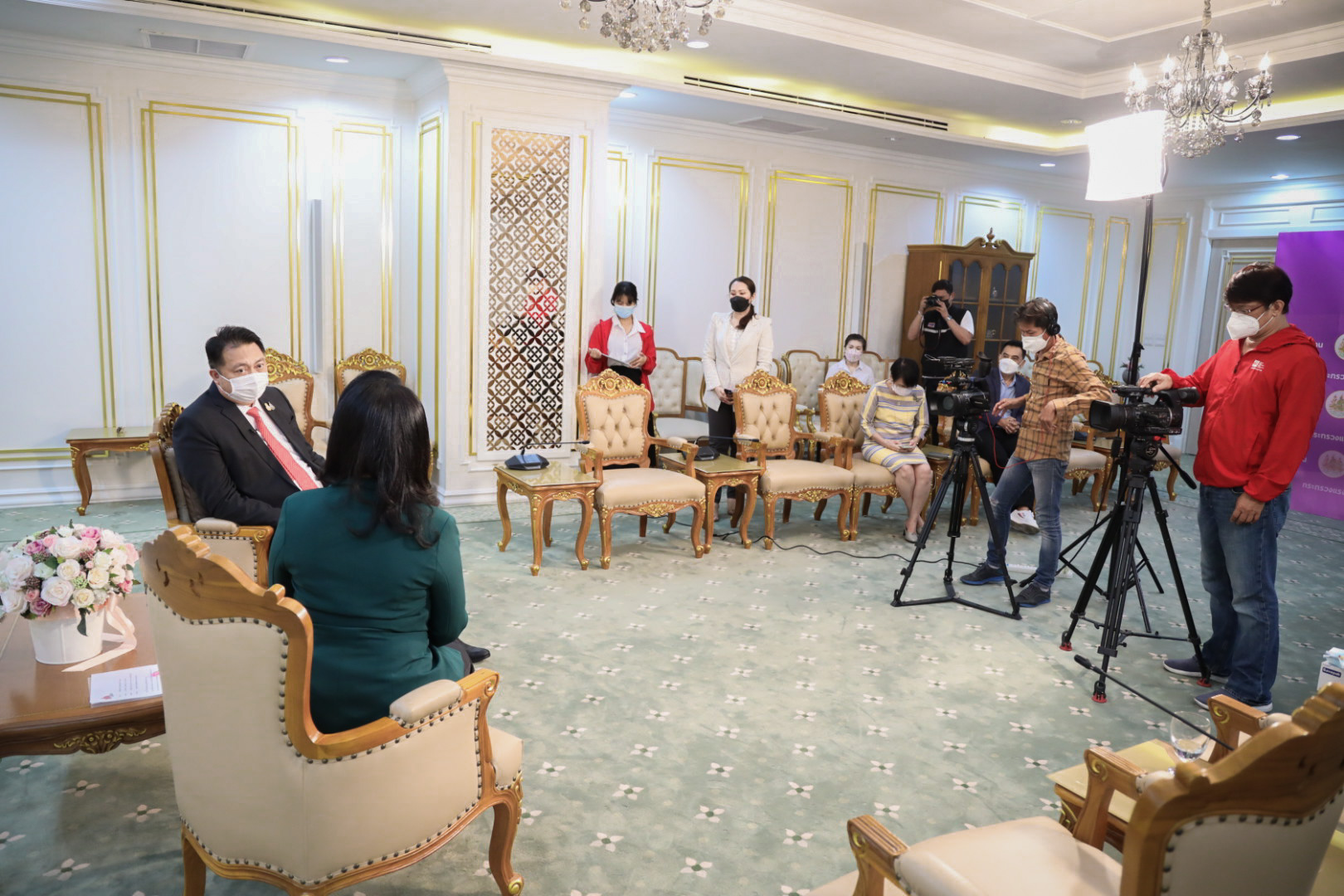 Today (July 7, 2021), at 18.00 hours, Labour Minister Mr. Suchart Chomklin recorded an interview on the “For the People” program about remedies for workers affected by the fire in Samut Prakan and support for employees at worker camps and restaurant operators. The program will broadcast on the Royal Thai Army Television Station (Royal Thai Army 5 H.D. 1) on Saturday, July 10, 2021, and Sunday, July 11, 2021, from 17.30 to 18.00 hours. The occasion took place at the Chatumongkol Room, 6th floor, Ministry of Labour.