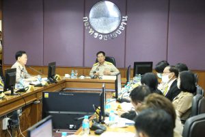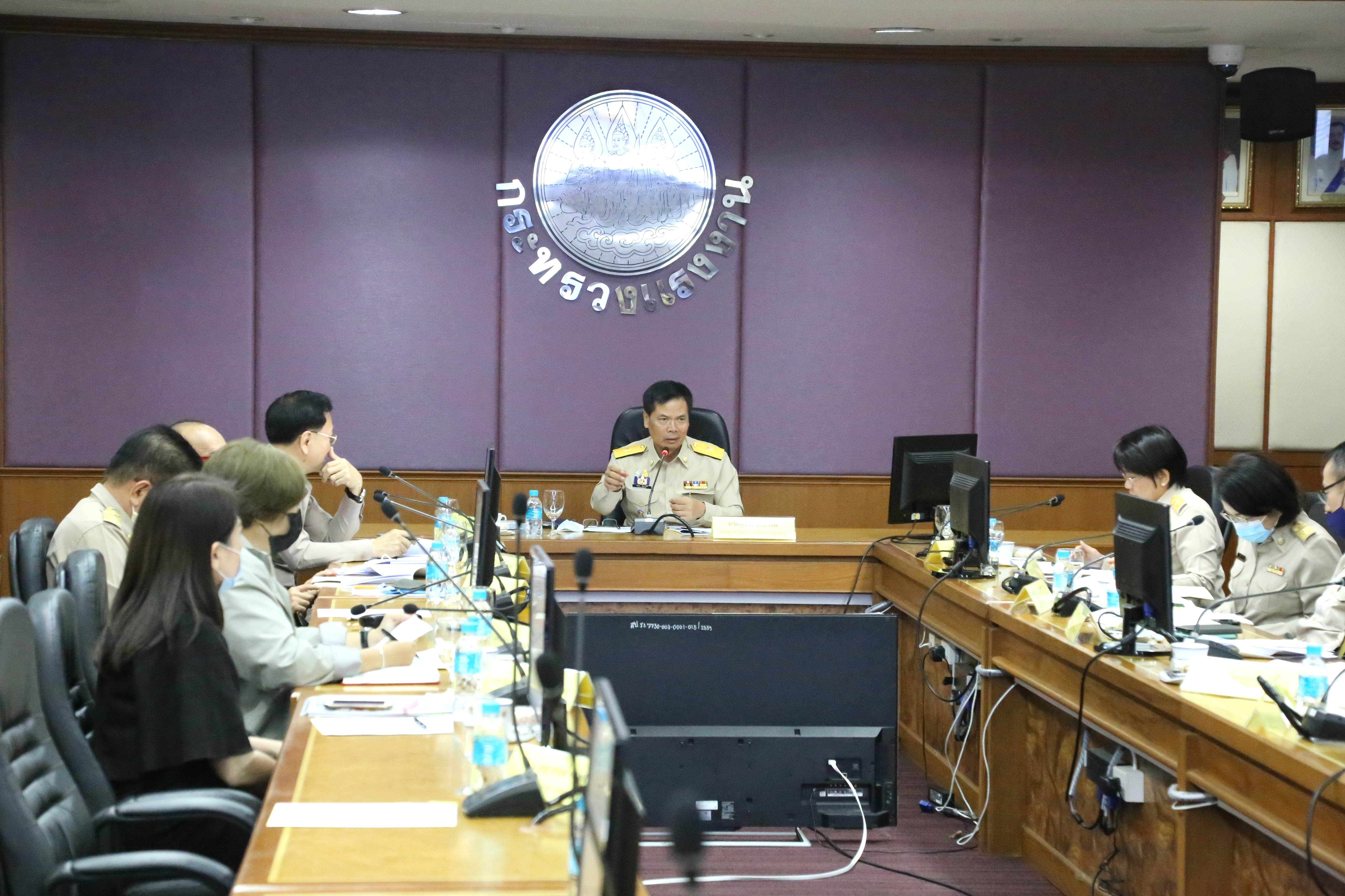 On September 14, 2020, at 11.00 hours, Secretary-General to the Ministry of Labour Mr. Suthep Chitayavong chaired the meeting to monitor the progress of the JOB EXPO THAILAND 2020 event through VDO Conference. The meeting discussed the organizational parts, guidelines for Covid-19 prevention, and the placement of vacancies. The meeting took place at the Prasong Rananant meeting room, 5th floor, Ministry of Labour.