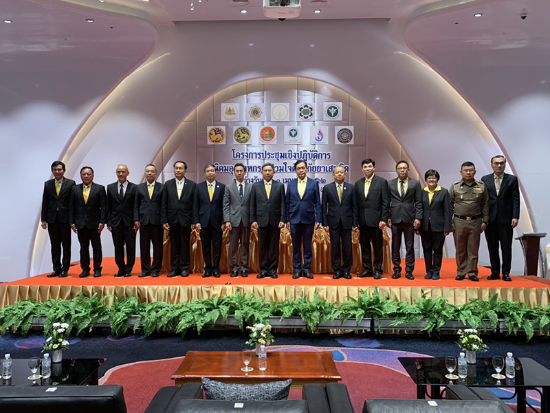 Today (April 3, 2019) at 10.00 hours, Permanent Secretary of Labour, Mr. Jarin Chakkaphark assigned Deputy Permanent Secretary of Labour Mr. Suradej Waleeittikul to present the policy to drive the work of the Ministry of Labour and signed a Memorandum of Cooperation under the “Anti-Drug Abuse Industrial Estate” project at Amber 2-3 Meeting Room, Impact Muang Thong Thani, Nonthaburi. Deputy Prime Minister and Minister of Justice H.E. Air Chief Marshal Prajin Juntong as presided over the signing ceremony whereby the agreement integrates cooperation from 10 agencies, namely the Office of the Narcotics Control Board, the Industrial Estate Authority of Thailand, the Office of the Permanent Secretary of Labour, the Department of Labour Protection and Welfare, the Office of the Permanent Secretary of Interior, the Department of Provincial Administration, the Office of the Permanent Secretary of Public Health, Department of Medical Services, Department of Industrial Works and the Office of the National Police. The agreement aims to campaign and create awareness to reducing the need for drugs in industrial estates following government policies. It also seeks to promote establishments in all industrial estates throughout the country, to take part in surveillance and prevention of drug problems, and network cooperation between government agencies and the private sector to prevent and resolve drug problems consistently.
