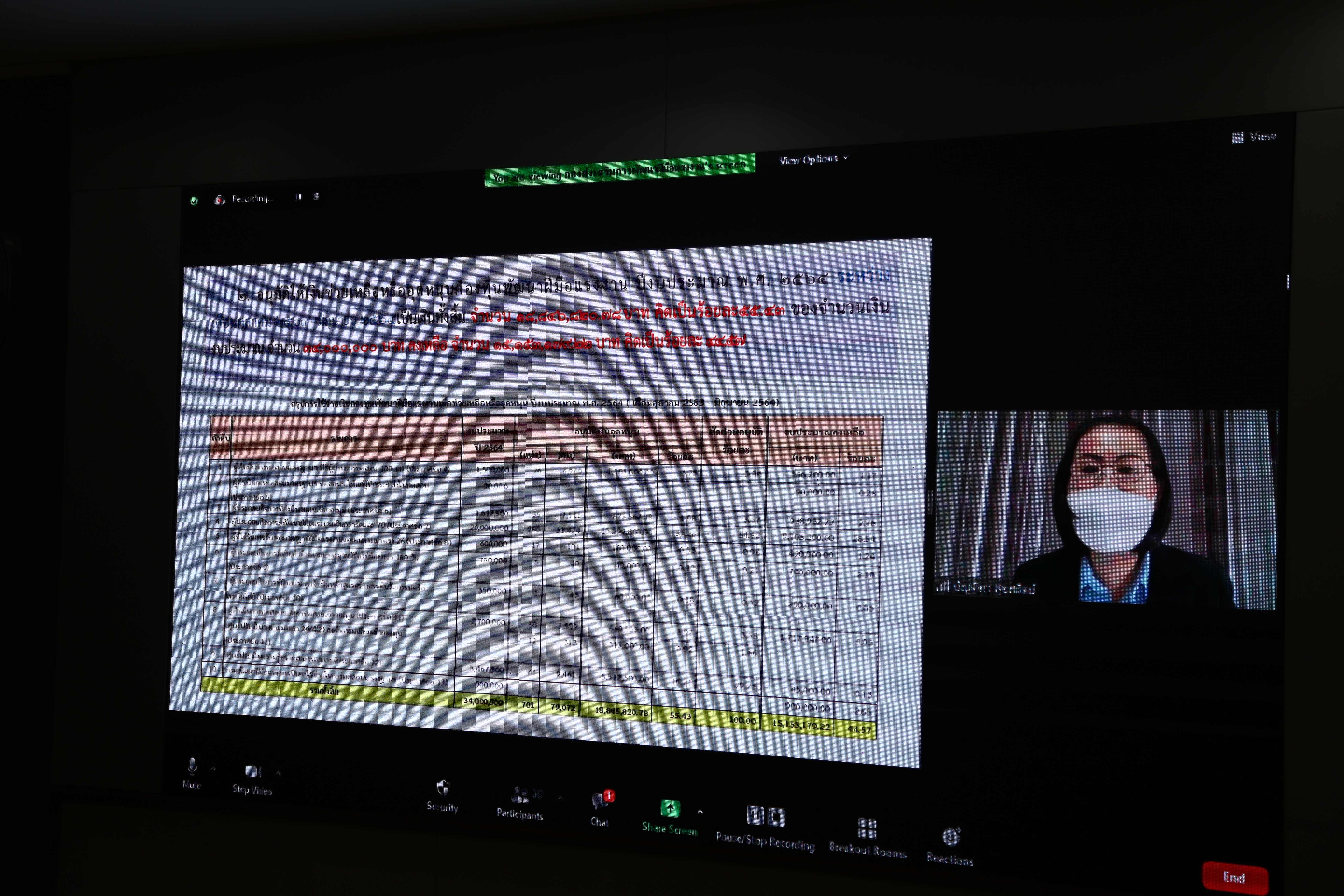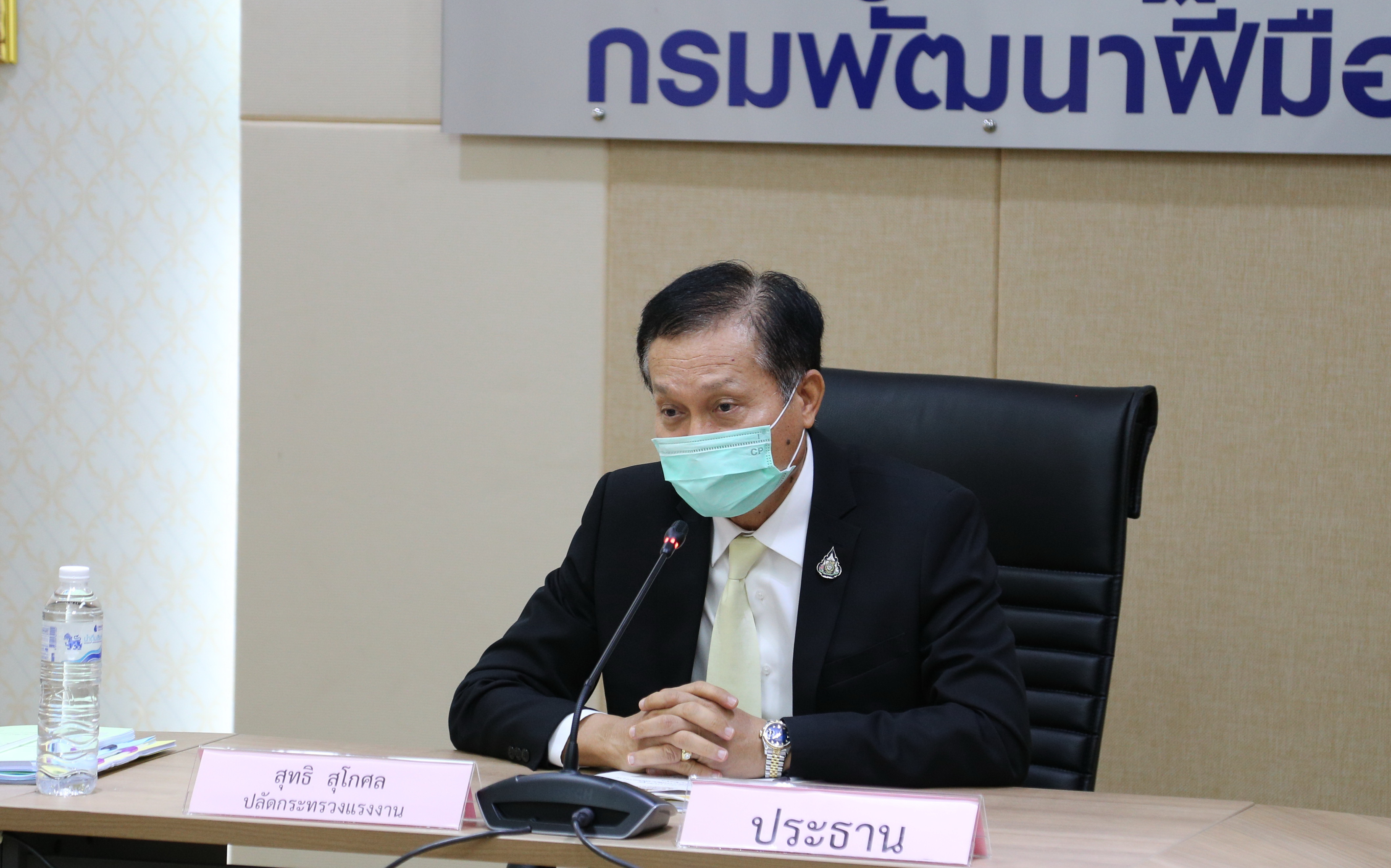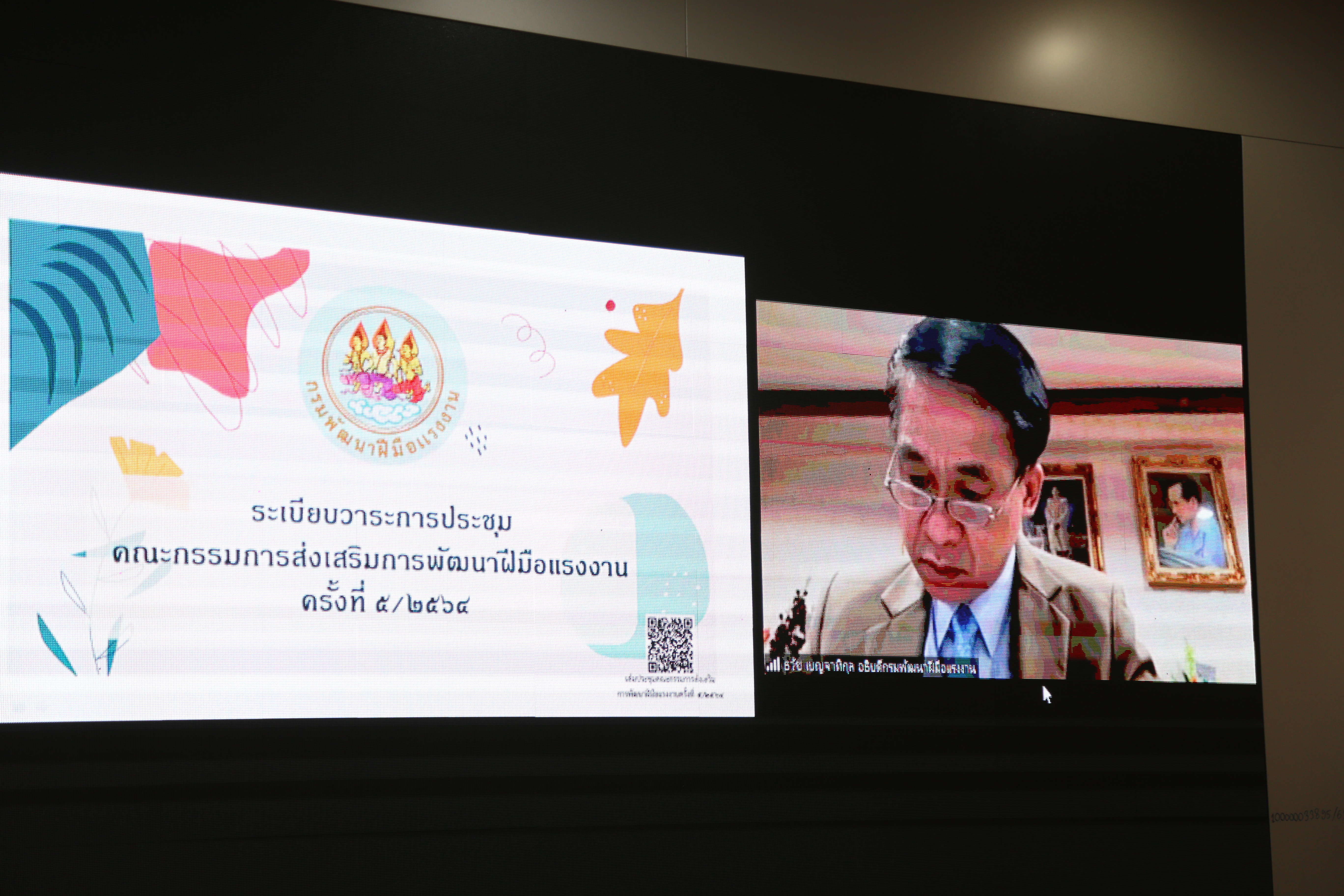 On July 30, 2021, at 13.30 hours, Permanent Secretary of Labour Mr. Suthi Sukosol chaired the Skill Development Promotion Committee Meeting No. 5/2021. The meeting took place through teleconference via Zoom. The session considered the application for certification as a professional organization of the Thai Hairdressing Professional Association (Knowledge and Capability Certification Office), sought approval for the Ministry of Labour’s draft notification regarding the designation of occupations that may be harmful to the public or that require competent persons, which must be carried out by a certified person (Professional Certification Office), and requested approval to adjust the disbursement plan from the Skills Development Fund for 2021 (Skill Development Promotion Division). The meeting also requested approval to review the Action Plan for the Skill Development Fund, the Digital Action Plan for the Skill Development Fund, the Human Resources Management Action Plan for the Skills Development Fund for 2020-2022, and the Action Plan of the 2022 accounting year (Skill Development Promotion Division). It also requested approval for the estimate of income and expenditure of the Skill Development Fund for the 2022 – 2025 fiscal year and the Operational Plan for the 2022 fiscal year (Department of Skill Development Promotion). The meeting took place at the Somchart Lekalawan Conference Room, 10th Floor, Department of Skill Development.