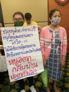 On May 13, 2020, Deputy Permanent Secretary of Labour Mrs. Theanrat Nawamawat spoke about the case of one migrant worker from Myanmar who was 4 months pregnant, and asked for help from the Ministry of Labour, as she became unemployed as her company shutdown from the spread COVID-19 virus. She had asked for help to return to her home country. From an initial data check, the worker’s name was Ms. Wawa Thuay, 30 years old, who had been working at the company for 4 years; she had been working with legal documents. Ms. Wawa was currently living with friends near the place of work in Sam Phran, Nakhon Pathom.