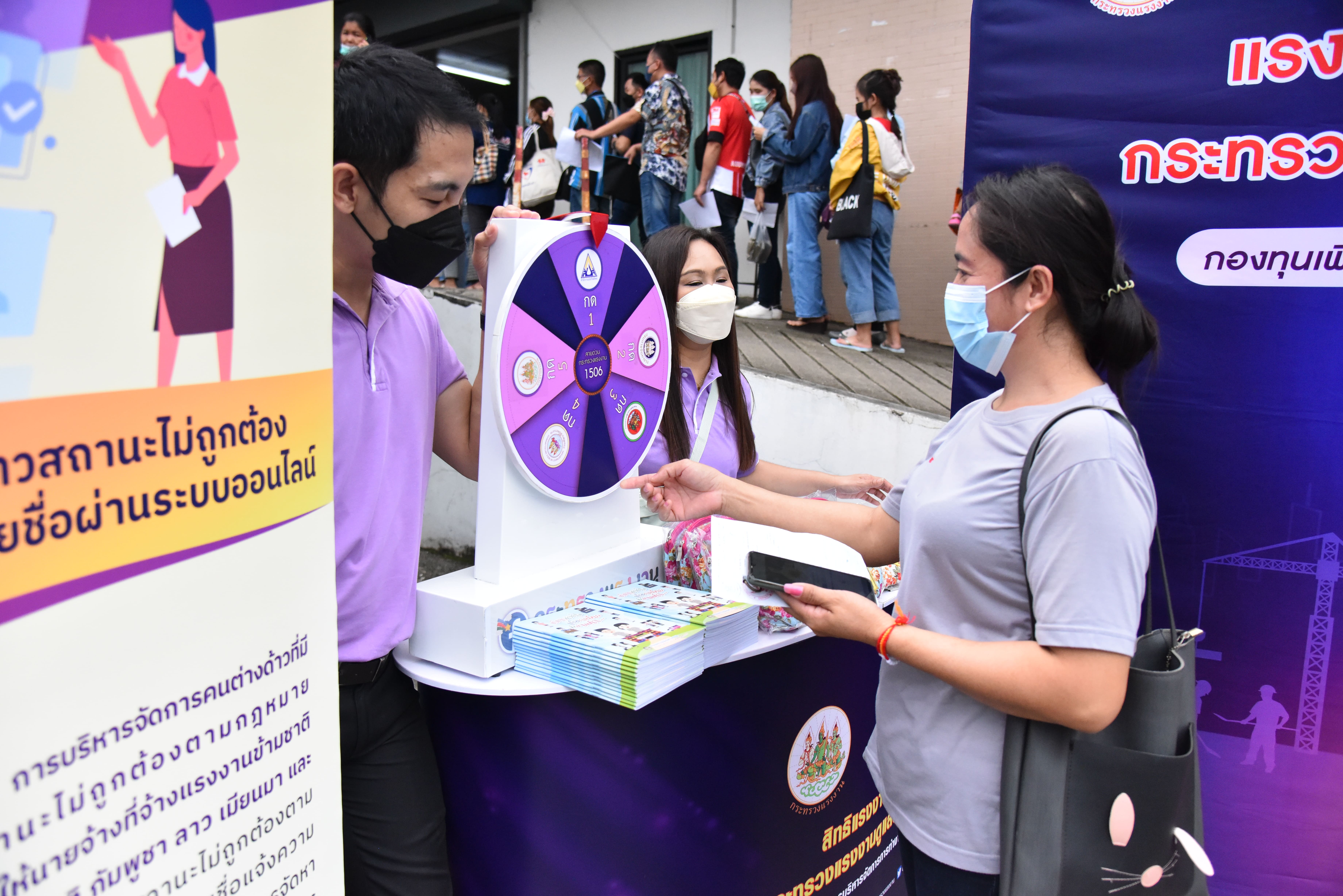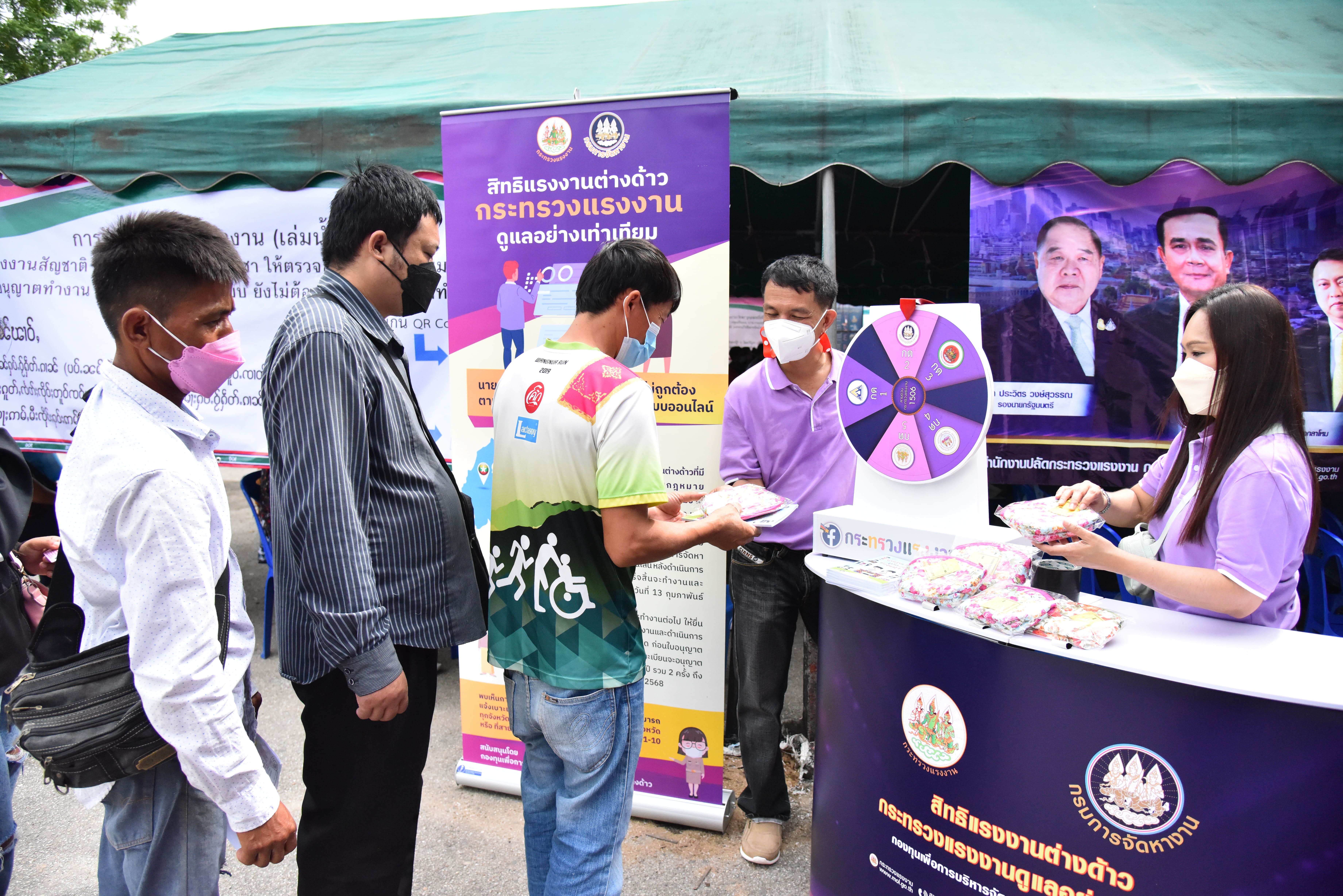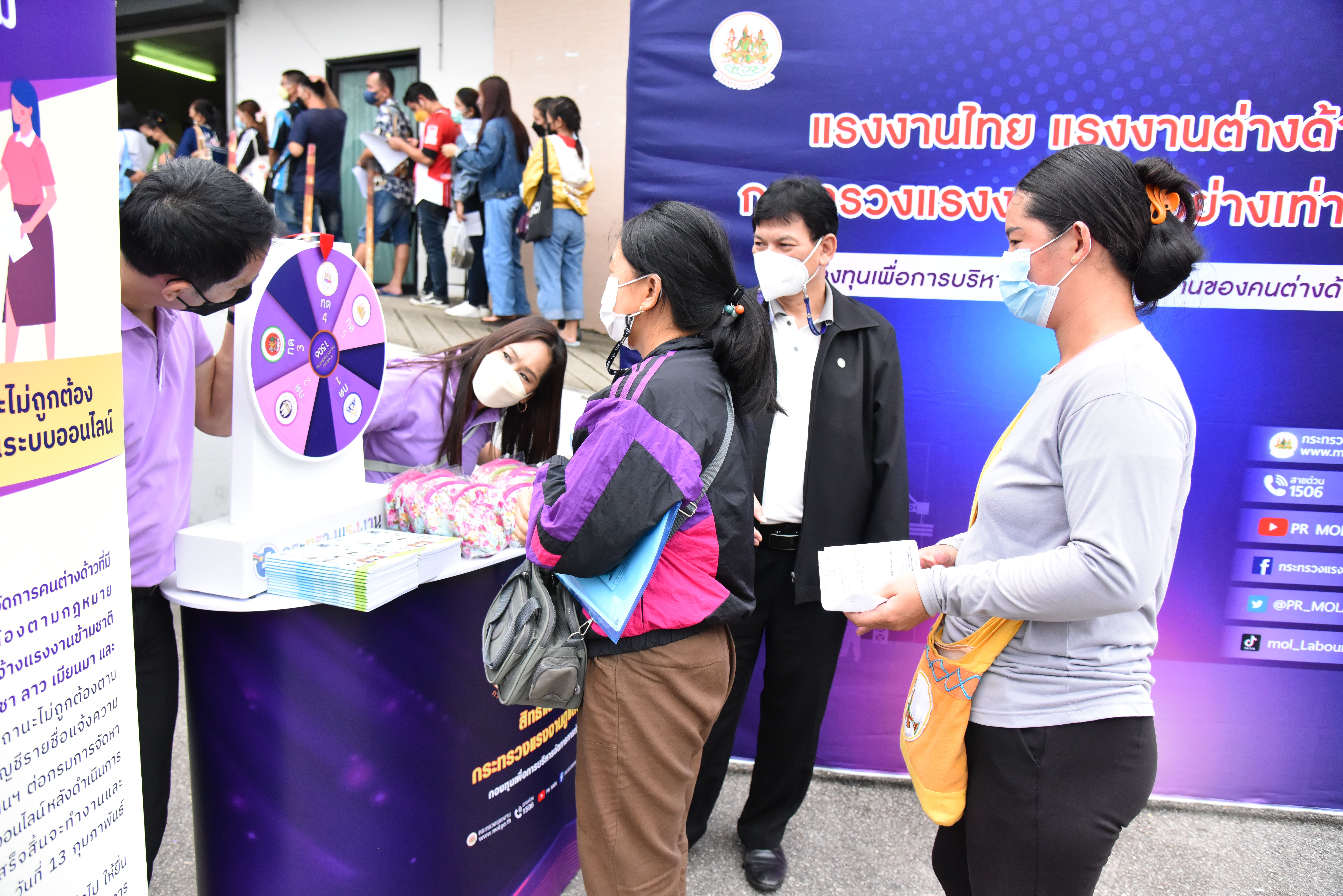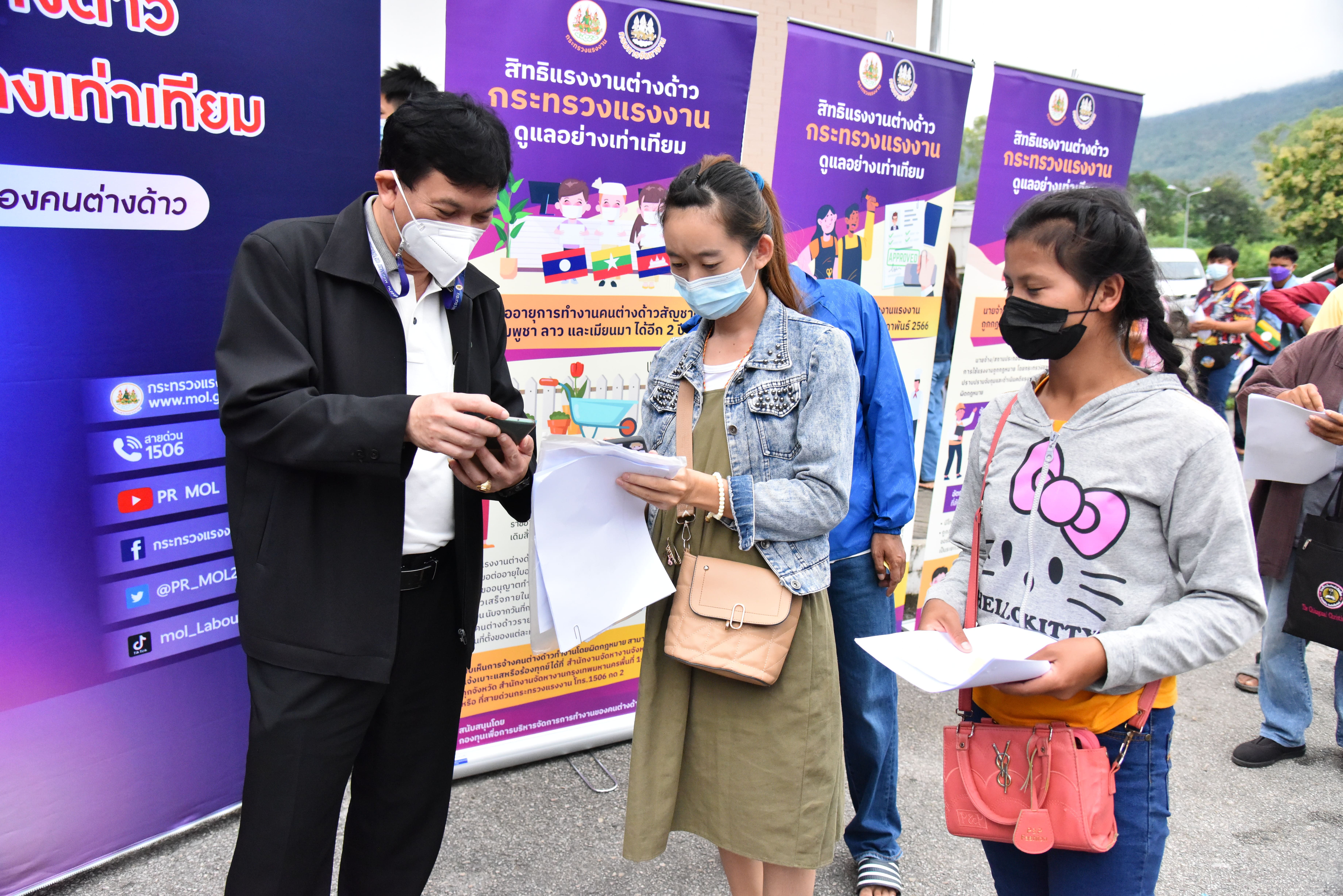 Assistant Permanent Secretary of Labour, Acting Lt. Somsak Promdam, led the team to visit the area to observe the road show activities following the project to create awareness and understanding of the policy on the management, import, prevention, and protection of rights of migrant workers. The occasion took place at the Chiang Mai Provincial Employment Office, Mueang District, Chiang Mai Province. The Office of the Permanent Secretary of Labour’s Public Relations Division organized the roadshow to educate migrant workers working in Thailand, for them to participate in supporting and promoting the use of legal labour and preventing labour trafficking. Foreign workers who work in Thailand legally are protected in terms of benefits and welfare that align with human rights principles and are equal to Thai workers in all respects.