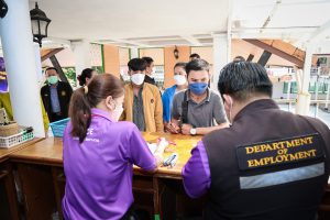 The Office of the Permanent Secretary of Labour by the Public Relations Division also participated in the roadshow event at the first Nong Khai starting and ending employment center. The efforts follow the public relations project to create awareness and understanding of policies for management, import, prevention, and protection of the rights of migrant workers, to educate migrant workers who come to work in Thailand. It allows the workers to support and promote legal workers’ use and prevent labour trafficking problems. Foreign workers who work in Thailand legally will be protected in terms of appropriate benefits and welfare, according to human rights principles, on equal footing with Thai workers in all respects.