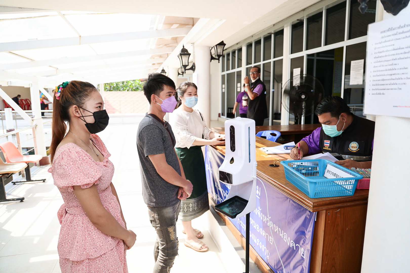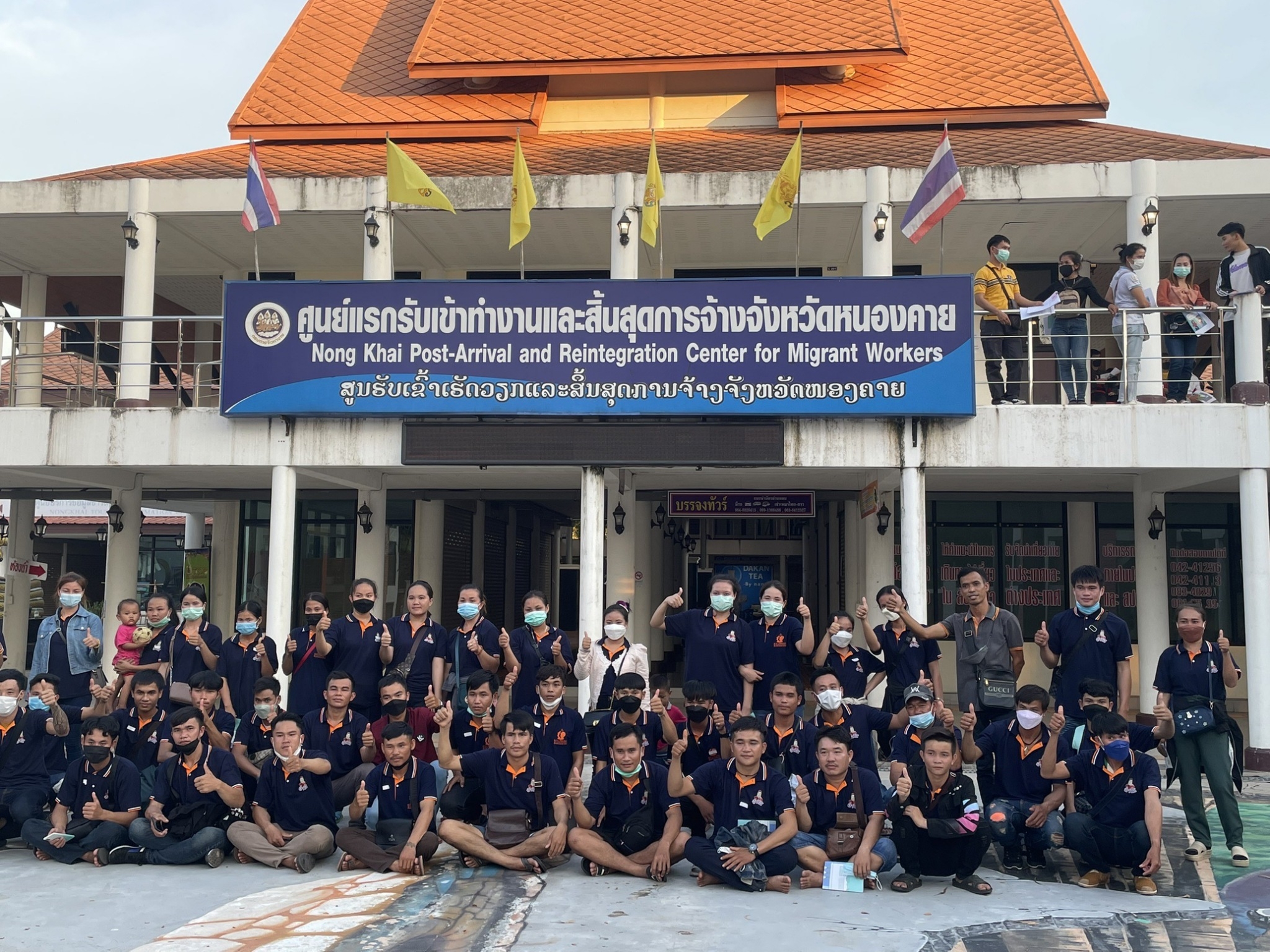 The Assistant to the Permanent Secretary of Labour, Acting Sub Lt. Somsak Phromdam led the team to visit the site of the Nong Khai starting and ending employment center, following the public relations project to create awareness and understanding of policies for management, import, prevention, and protection of migrant workers’ rights. It aims to educate and provide an understanding to migrant workers who come to work in Thailand. The Nong Khai starting and ending employment center is located at 156/1 Village Moo 5, Mechai Subdistrict, Mueang Nong Khai District, Nong Khai Province. It is used as a place for training to educate service users about work, especially employment contracts and living in Thailand for migrant workers. It examines and screens migrant workers to ensure that employers are legitimate, according to the employment contract set out, and that the migrant workers are prepared before allowing them to travel to work in Thailand. The center records foreign workers’ information. It is a waiting center for foreign workers who come to Thailand for cases where the employer comes to pick up the workers to work and return to their country when the employment has ended. It is also a place for issuing E-Work Permits that can check and claim the rights that workers should receive before returning to the country. It also serves as a coordination center to assist employers and foreign workers in implementing employment contracts. This will help prevent and solve human trafficking and protect foreign workers following international standards. Workers who attend training at this center will know their rights, wages, employment contracts, welfare, and how to behave when in Thailand, including the procedure for obtaining assistance when any problems arise. Each training will take approximately 3-6 hours and is free.