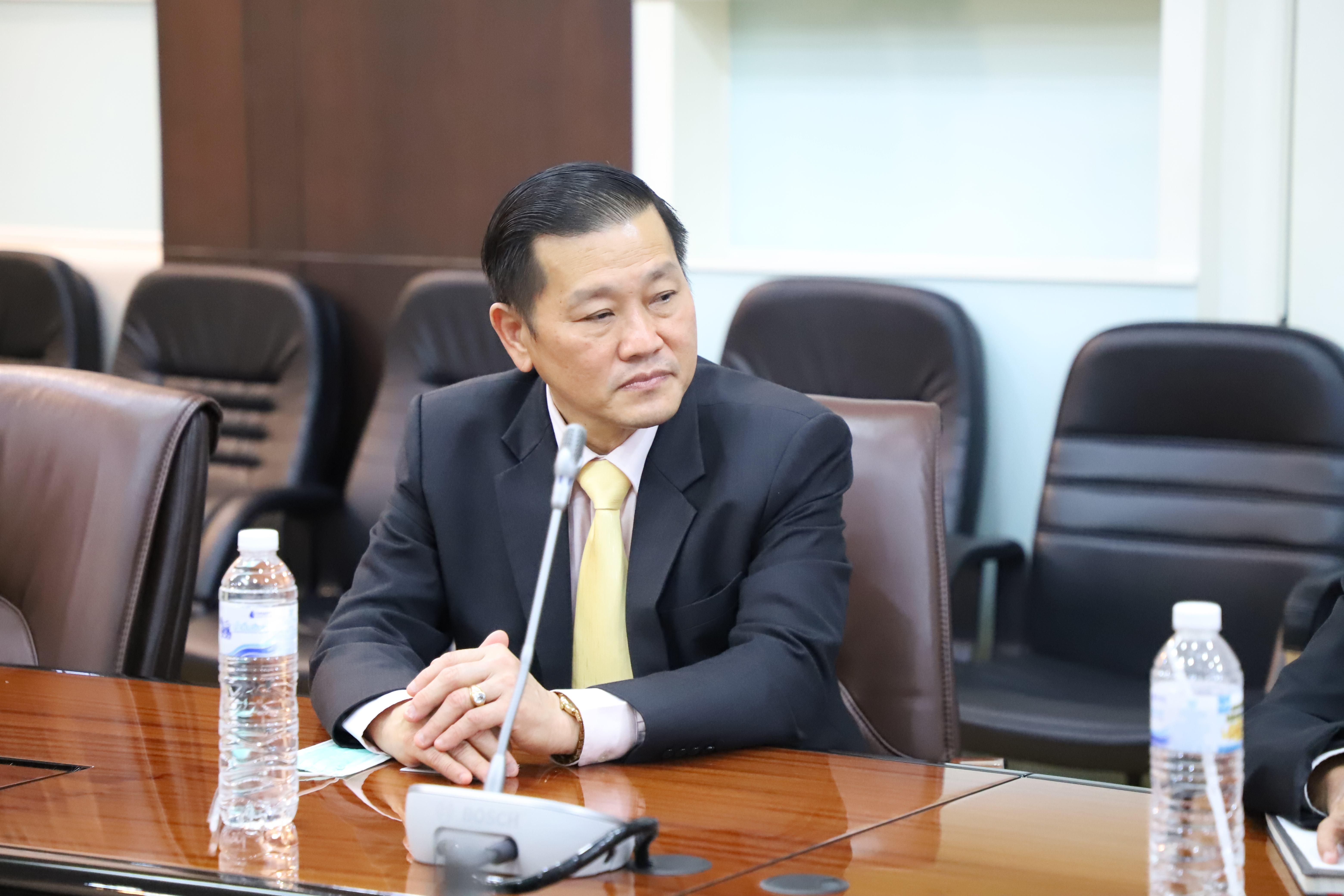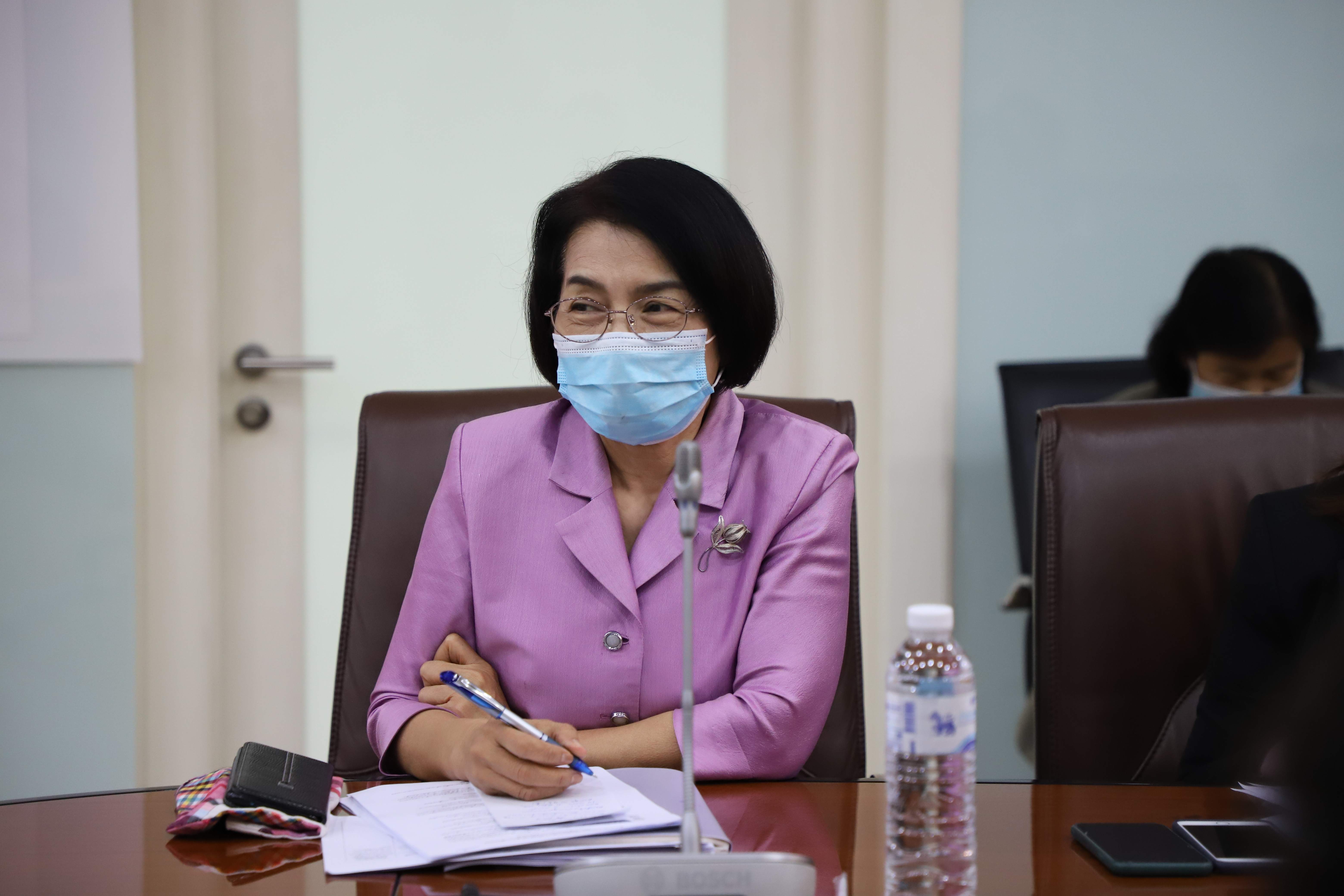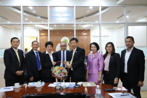 On September 29, 2020, at 13.30 hours, Labour Minister Mr. Suchart Chomklin assigned the Ministry of Labour’s Secretary-General Mr. Suthep Chitayavong to welcome the President of the Employers Confederation of Thai Trade and Industry Dr. Nawarat Songsawatchai, and committee to congratulate the Labour Minister and discuss measures to help workplaces employers and employees affected by Covid-19 and economic stagnation. The meeting took place at the Saengsingkaew Room, 5th floor, Ministry of Labour.