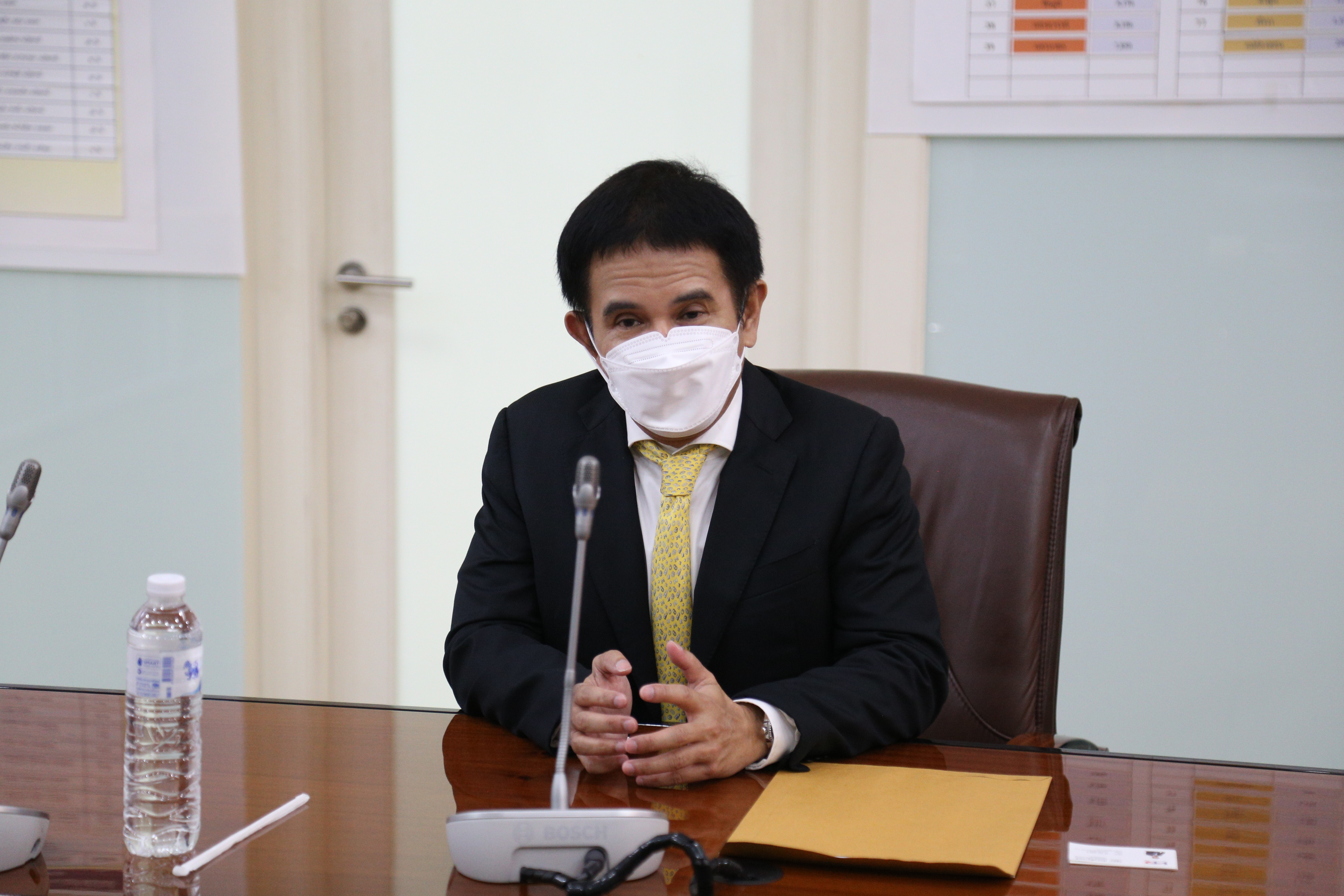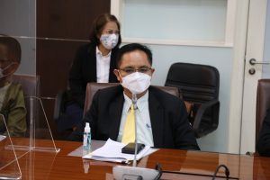 On September 8, 2021, at 10.00 hours, Advisory Board Member to the Minister of Labour, Mr. Natthawat Teeratathamrong, welcomed Mr. Wisoot Phanthawutyanon, President of HR Digest Co., Ltd., and Mr. Chavalit Krongsin, President of the Federation of Thai Industries, Pathum Thani. The meeting discussed the 14 day/7 day period without any law requiring either party to be responsible for the expenses during the quarantine of patients and whether the person under surveillance shall be classified as a patient or not. Meanwhile, the employee is willing to work because of the need for wages or overtime. The meeting took place at the Saengsingkaew room, 5th floor, Ministry of Labour.