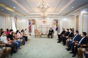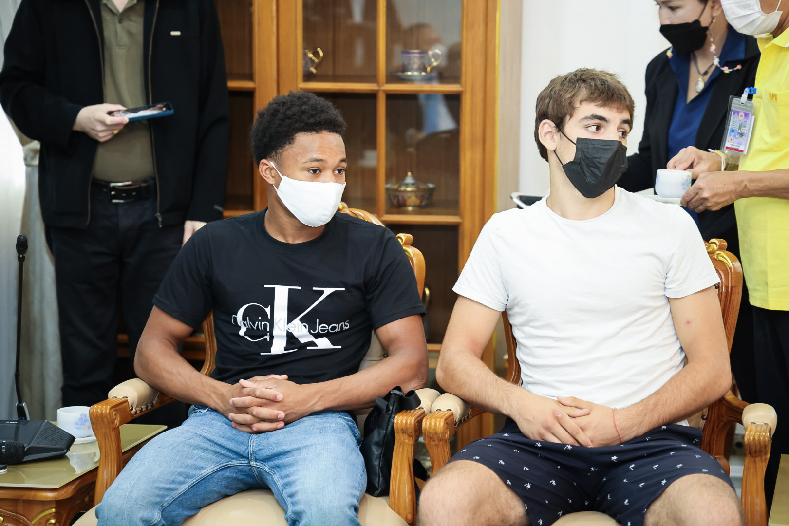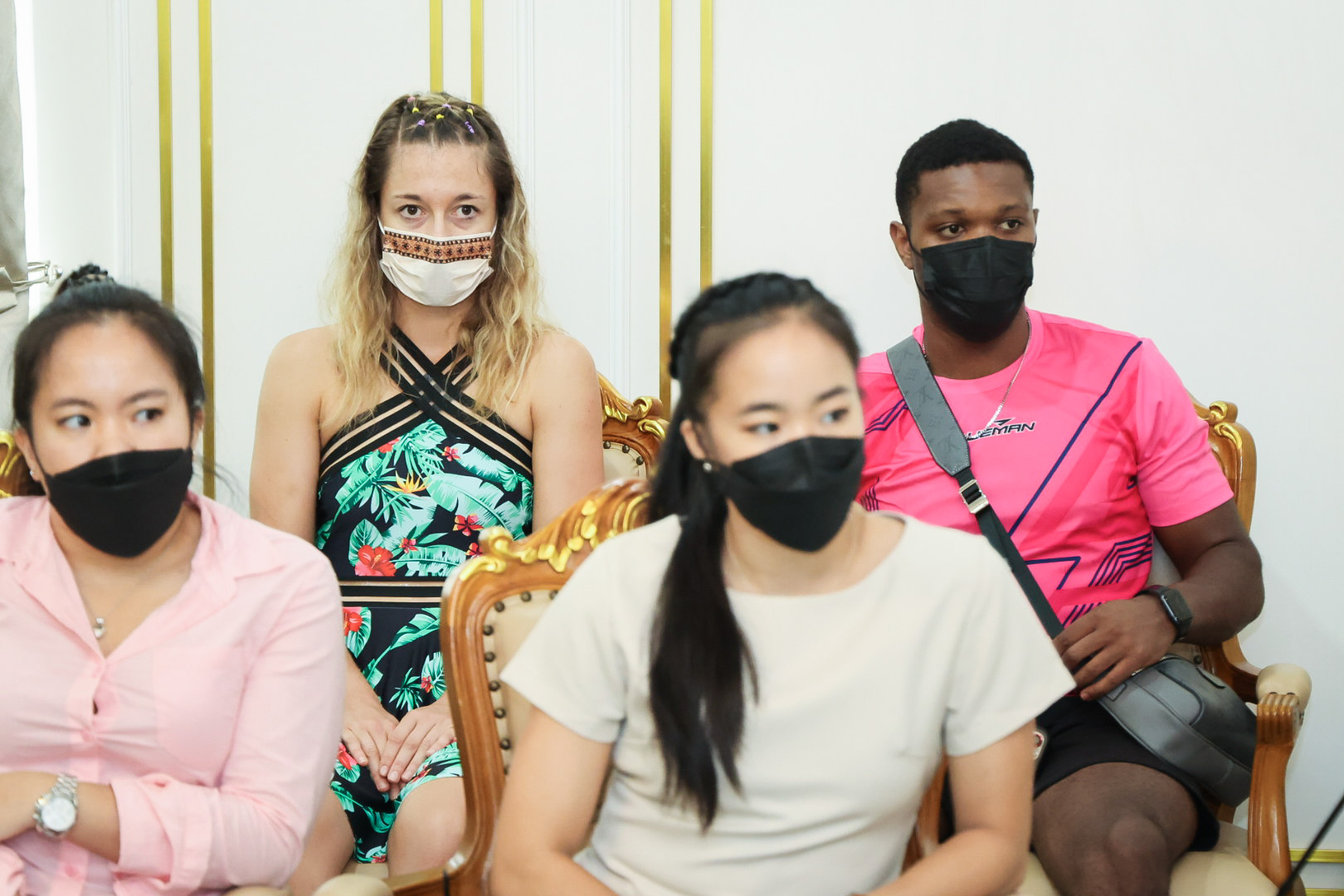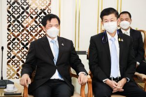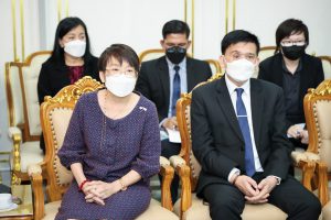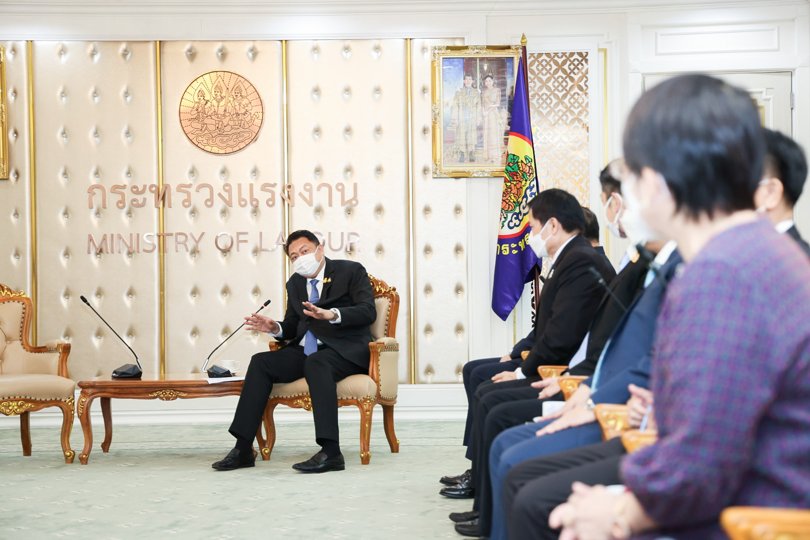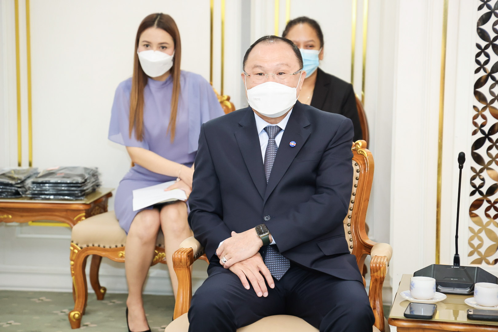 On August 10, 2022, Labour Minister Mr. Suchart Chomklin welcomed Ms. Mary Filippoux, owner of Chiang Mai Muay Thai Boxing Camp in Geneva, Switzerland, and daughters Ms. Supitcha and Ms. Supitchaya Filippoux, along with foreign boxers, on a courtesy call to meet the Labour Minister and discuss the support of the Muay Thai art exhibition and upgrading of skill standards in the field of Muay Thai trainers. The Ministry of Labour’s senior executives also joined the occasion at the Chatumongkol Room, 6th floor, Ministry of Labour.