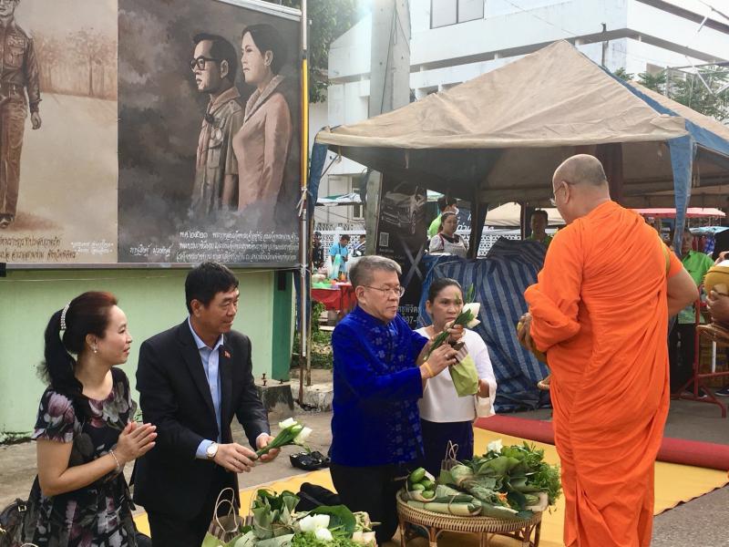 Saturday, September 1, 2018 at 7:00 pm Mr. Weerasak Wichitsangsri, Phichit Governor along with Mrs. Chutiporn Wichitangsri, The Prime Minister of Phichit Province welcomed His Excellency Nguyen Van Phong, Ambassador of Vietnam to Thailand with his wife and Lieutenant-General Woravit Tejasupakul, Secretary to the Minister of Tourism and Sports joined to make merit at dawn in front of the wall of loyalty and visited the market. Mr.Suchai Chanvitkan, The Labor Department of Phichit Province and the head of government agency under the Ministry of Labor joined the event.