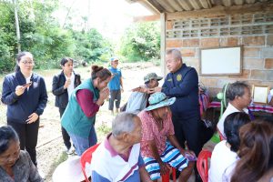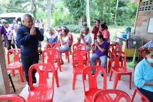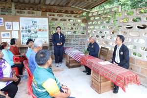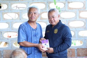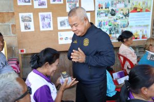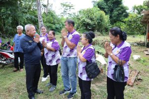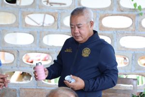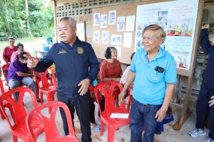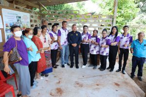 Mr. Boonsong stated that it was a pleasure to meet the members of the community farming group, which is composed of labour volunteers and insured members under Section 40 of the Social Security Office. The group was founded in 2017 with 10 members and has since grown to 30. They are now formally registered as the “Khanthuli Black Chicken and Organic Livestock Farming Group.” Their goal is to improve the breeding of native chickens by selecting standout traits, such as fast growth and tender meat, for breeding. This helps boost income as agricultural product prices fall, and it allows farmers to make better use of their rubber and palm plantations by raising chickens and other livestock. The group’s products include black chicken breeds, native chickens, chicken feed, herbal remedies for disease prevention, cost-saving organic chicken feed, fresh chicken meat, and processed chicken products.