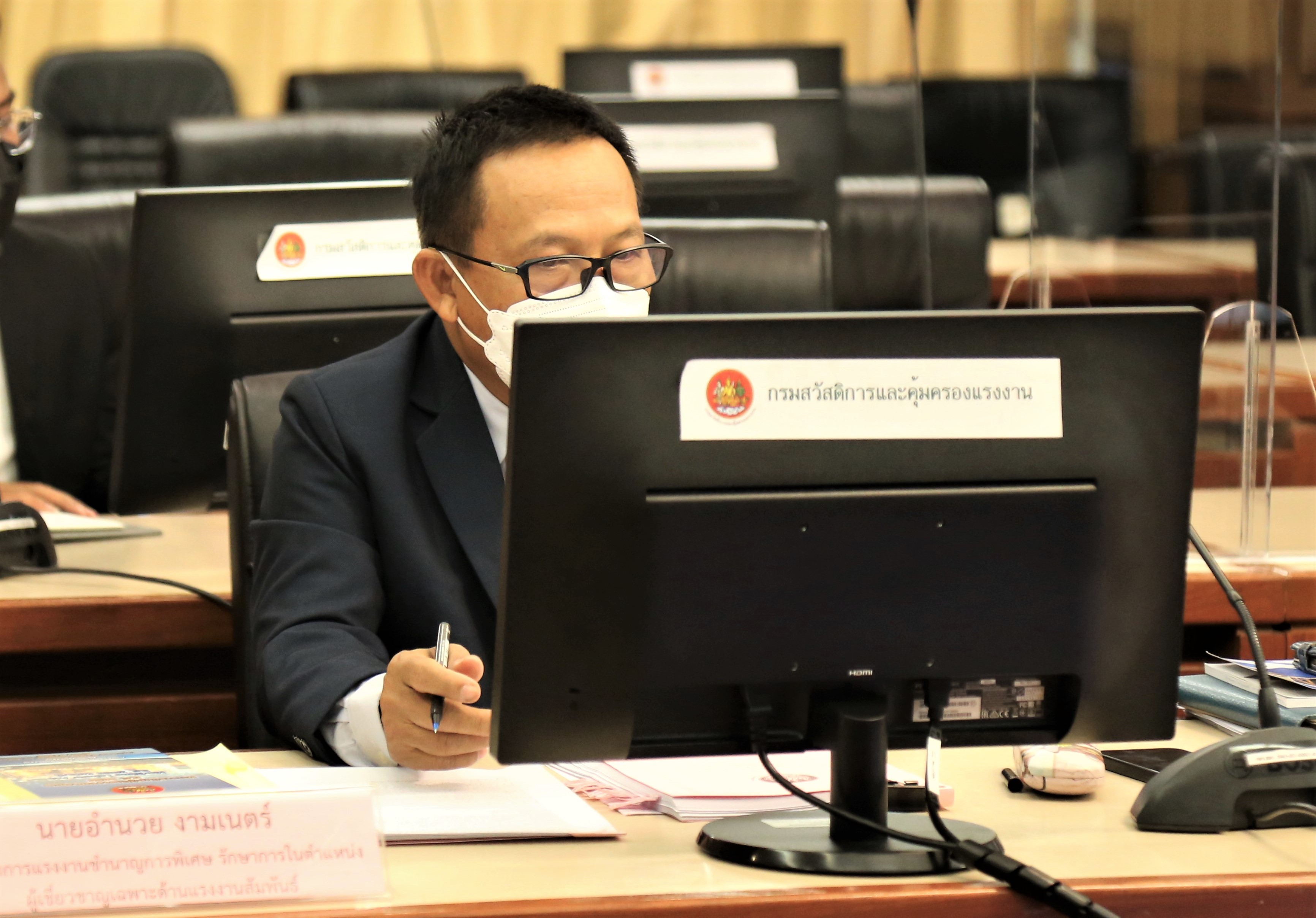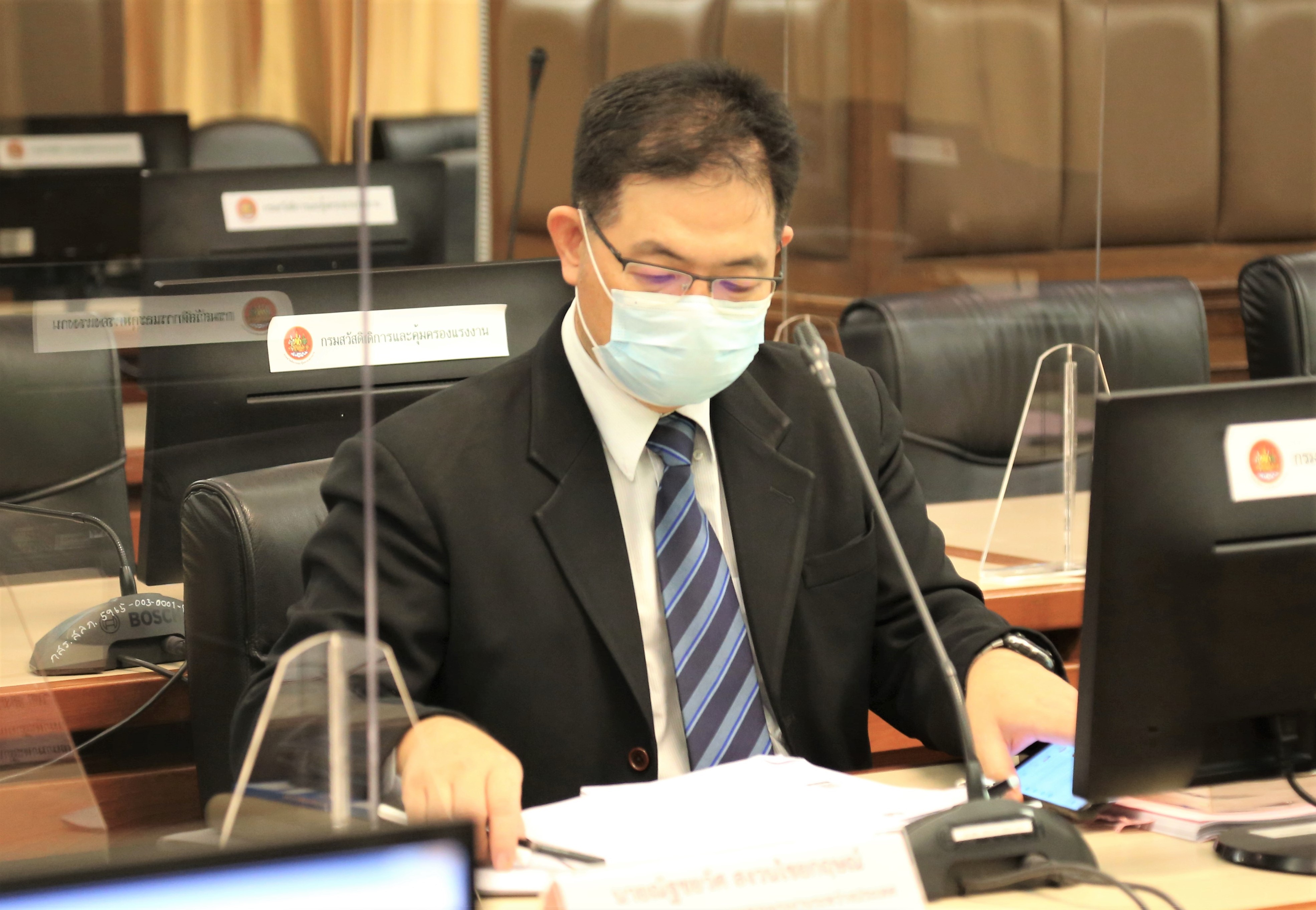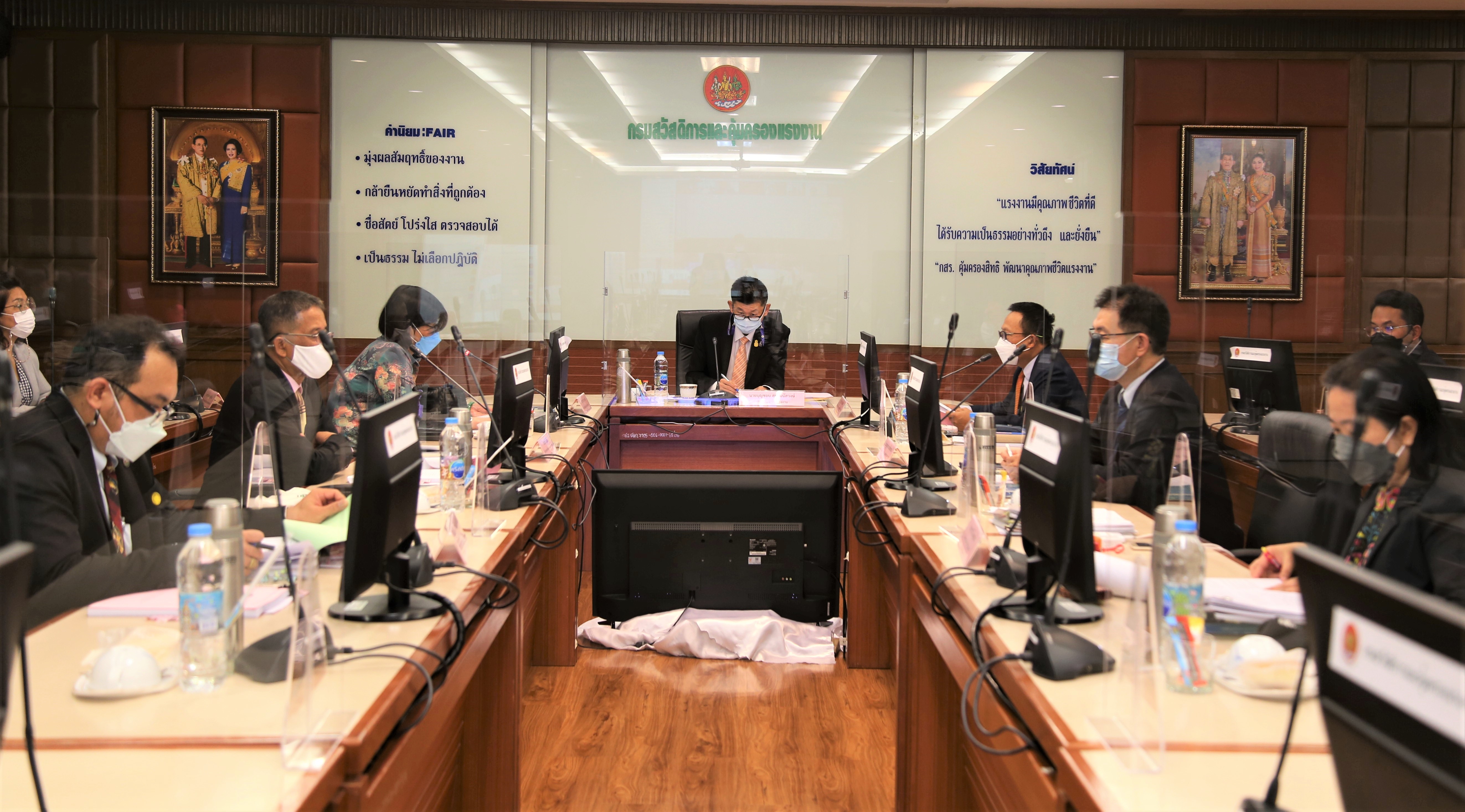 On February 3, 2022, at 09.30 hours, Permanent Secretary of Labour, Mr. Boonchob Suttamanaswong, presided over the Marine Labour Committee Meeting No. 1/2022. The meeting considered the meeting of the Special Area Trilateral Committee under the Maritime Labour Convention Marine insurance under Section 81(2)(c), stipulating the minimum wage rate under Section 46 and the rules, procedures, and conditions for social security protection and seafarers compensation. The meeting took place at the Prof. Nikom Chandravithu meeting room, 5th floor, Department of Labour Protection and Welfare.