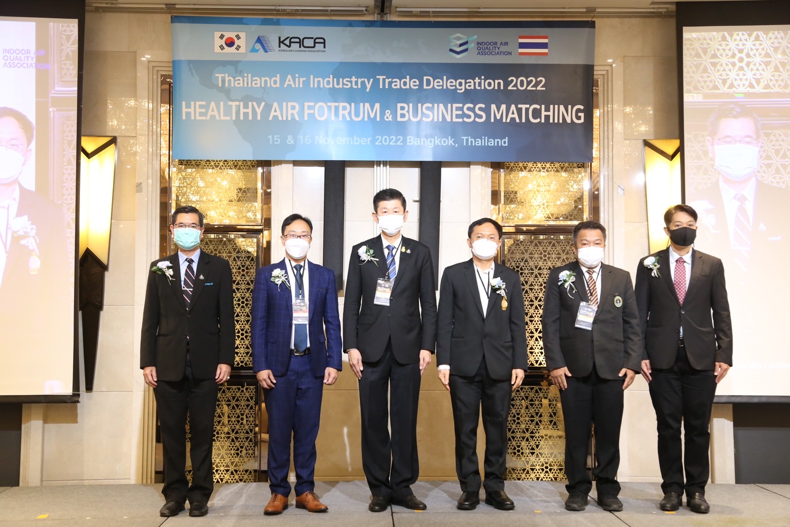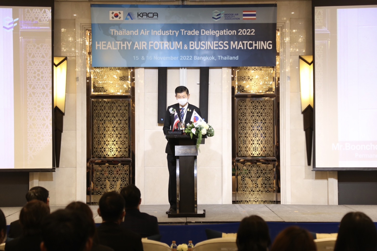 On the morning of the event, there was a discussion on “Indoor Air Quality: Things Thai People Need to Know” and the direction of driving indoor air quality in Thailand. The Department of Health’s Deputy Director-General, Dr. Atthaphon Kaewsamrit, representatives from the Department of Environmental Quality Promotion, and representatives from the Bangkok Administration participated in the discussion. The Permanent Secretary of Labour also participated in the discussion. In the afternoon, there was a lecture on “Healthy Air Forum 2022” from both Thailand and the Republic of Korea, and a forum was opened for discussion and exchange of comments and suggestions. The “Healthy Air Forum 2022” will be held between November 15 – 16, 2022. The second day is a business matching session and an MOU signing ceremony between the Indoor Air Quality Promotion Association of Thailand ( IAQ) and the Korean Air Cleaning Association (KACA) from the Republic of Korea.