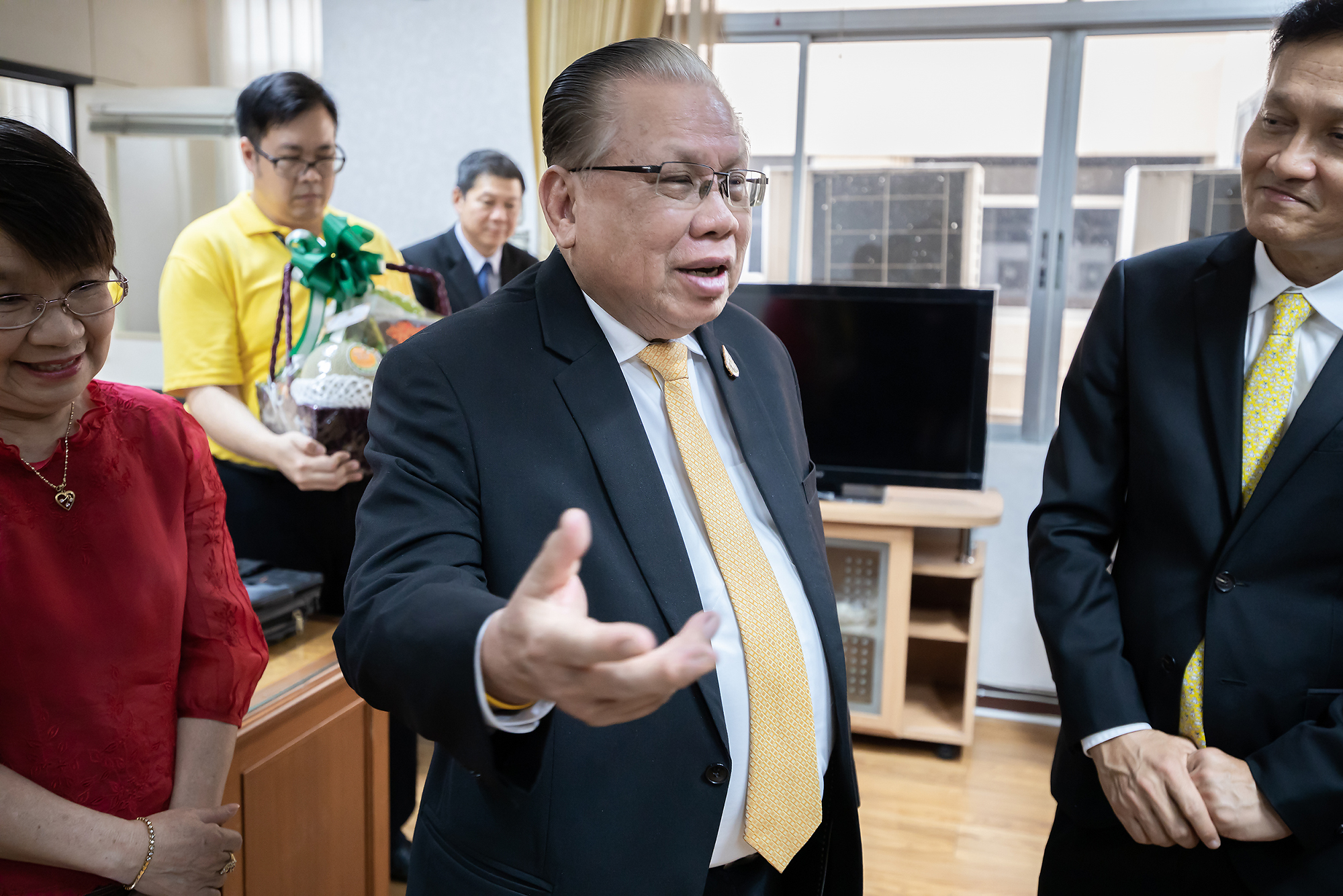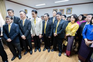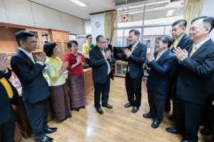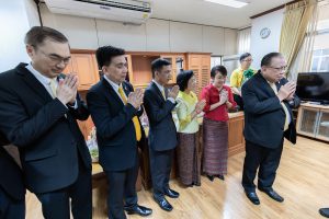Today (December 27, 2019) at 09.00 hours, Permanent Secretary of Labour Mr. Suthi Sukosol led the Ministry of Labour’s executives, officials, and staff, to give a gift basket to Secretariat to the Labour Minister Lt. Gen. Nuntadech Meksawat, on the occasion of the New Year 2020. The event took place at the office of the Secretariat to the Labour Minister, 6th floor, Ministry of Labour.