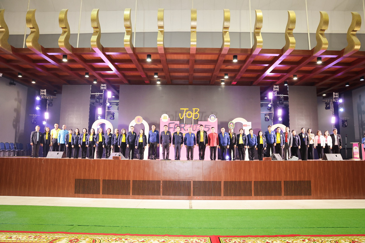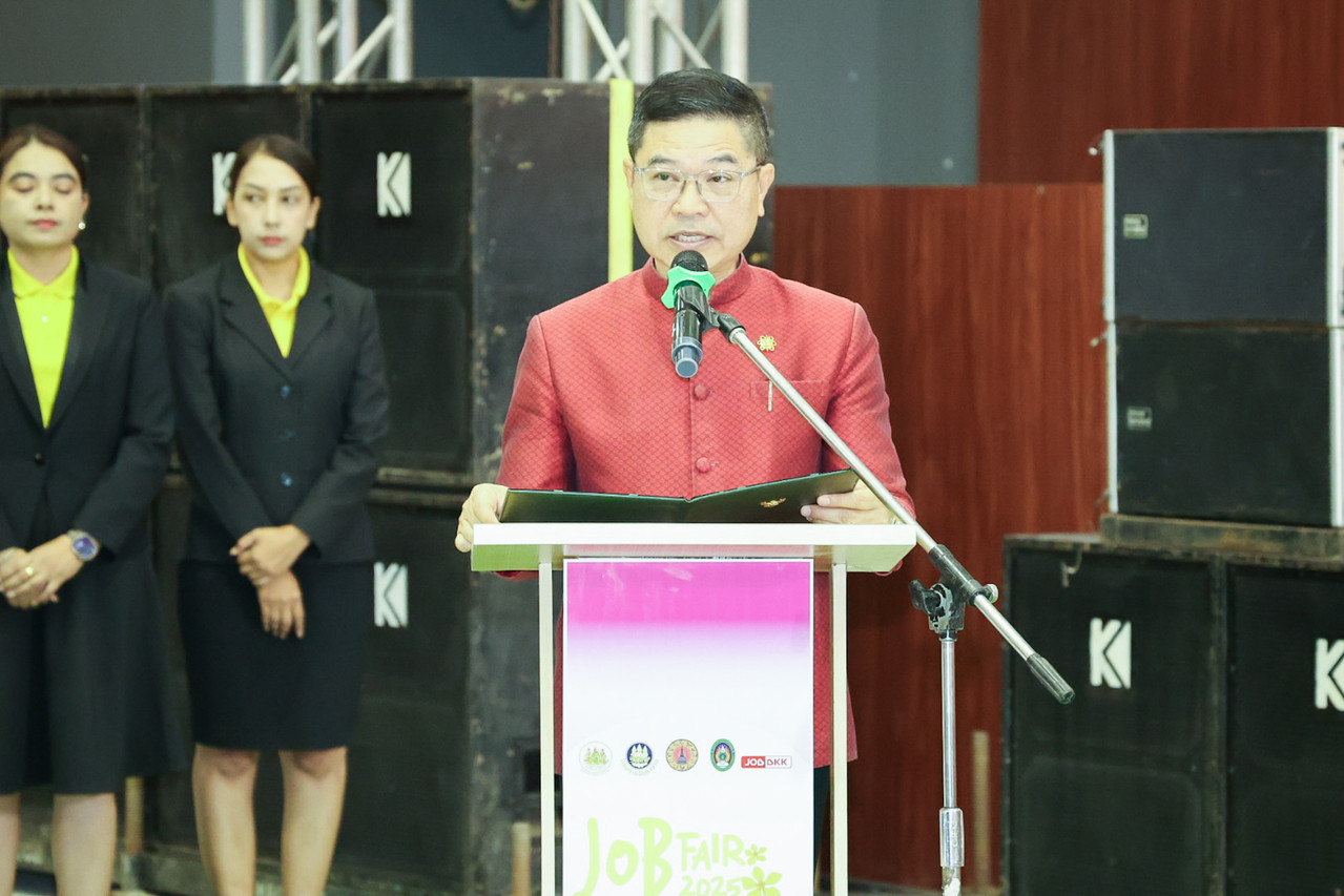 June 27, 2025 – Mr. Boonsong Tapchaiyut, Permanent Secretary of Labour, presided over the opening ceremony of Job Fair 2025 @ Nakhon Si Thammarat, held at the main auditorium of Nakhon Si Thammarat Rajabhat University in Mueang District, Nakhon Si Thammarat Province. Mr. Suwat Chansuk, Deputy Governor of Nakhon Si Thammarat Province, welcomed Dr. Sompong Raksatham, Acting President of Nakhon Si Thammarat Rajabhat University, to give a welcome speech. Mr. Sibmuenchai Phothisin, Deputy Director-General of the Department of Employment, presented the objectives of the event. Attendees also included Mr. Pichet Thongphan, Inspector-General of the Ministry of Labour, Ms. Niyada Saneeymanomai, Deputy Secretary-General of the Social Security Office, Petty Officer First Class Prayong Boonchuay, Inspector-General of the Department of Skill Development, Mr. Thuwanont Duangjak, Inspector-General of the Department of Labour Protection and Welfare, as well as heads of local labour agencies and business executives from the area.