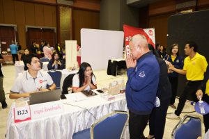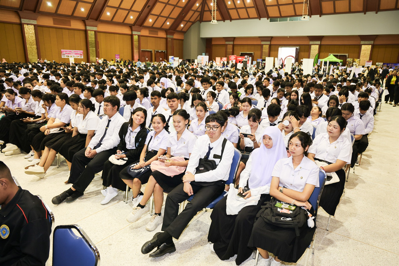 Event highlights included: domestic job recruitment with over 50 companies participating in on-site recruitment, including Honda, CP All, Big C Supercenter, True Corporation, and tutoring schools, offering over 2,000 job vacancies across industries such as hospitality, manufacturing, education, automotive, and healthcare. The top five most sought-after positions were production staff, tele-collection officers, store attendants, trainee assistant managers, and accountants. There were services for job placements abroad, with consultations and registrations for overseas job seekers. Freelance occupation demonstrations included hands-on training in 19 freelance occupations. There was career counseling services with personality assessments for career and educational guidance, and exhibitions on educational and career guidance, hands-on learning experiences, franchise and food truck business models, displays and sales of products made by home-based workers and “One Subdistrict, One Freelance Job” groups, the Ministry of Labour’s service booths, funding advice, and quizzes with prizes. There was also a keynote talk titled “Trends in the Southern Labour Market in the Digital Age and Workforce Shortages in the Service and Tourism Sectors.”